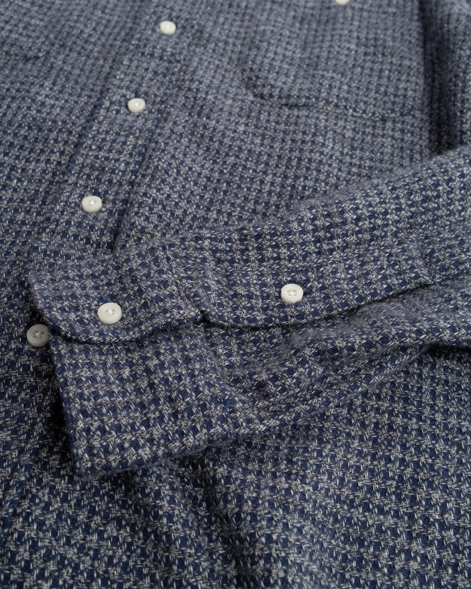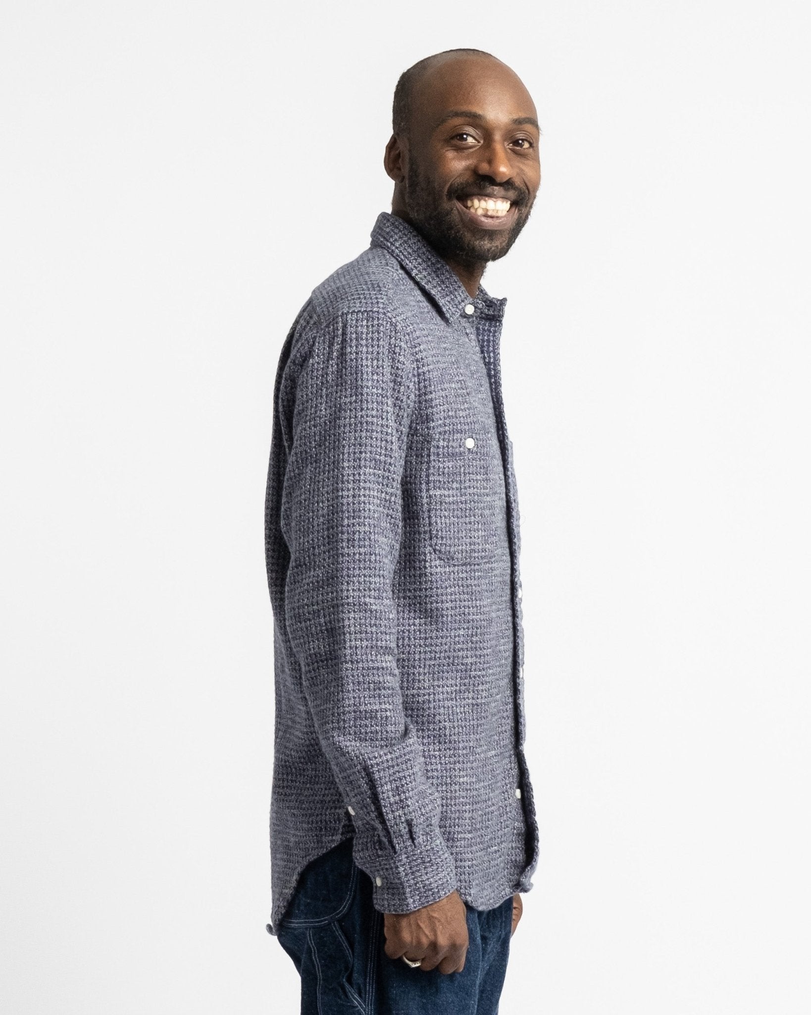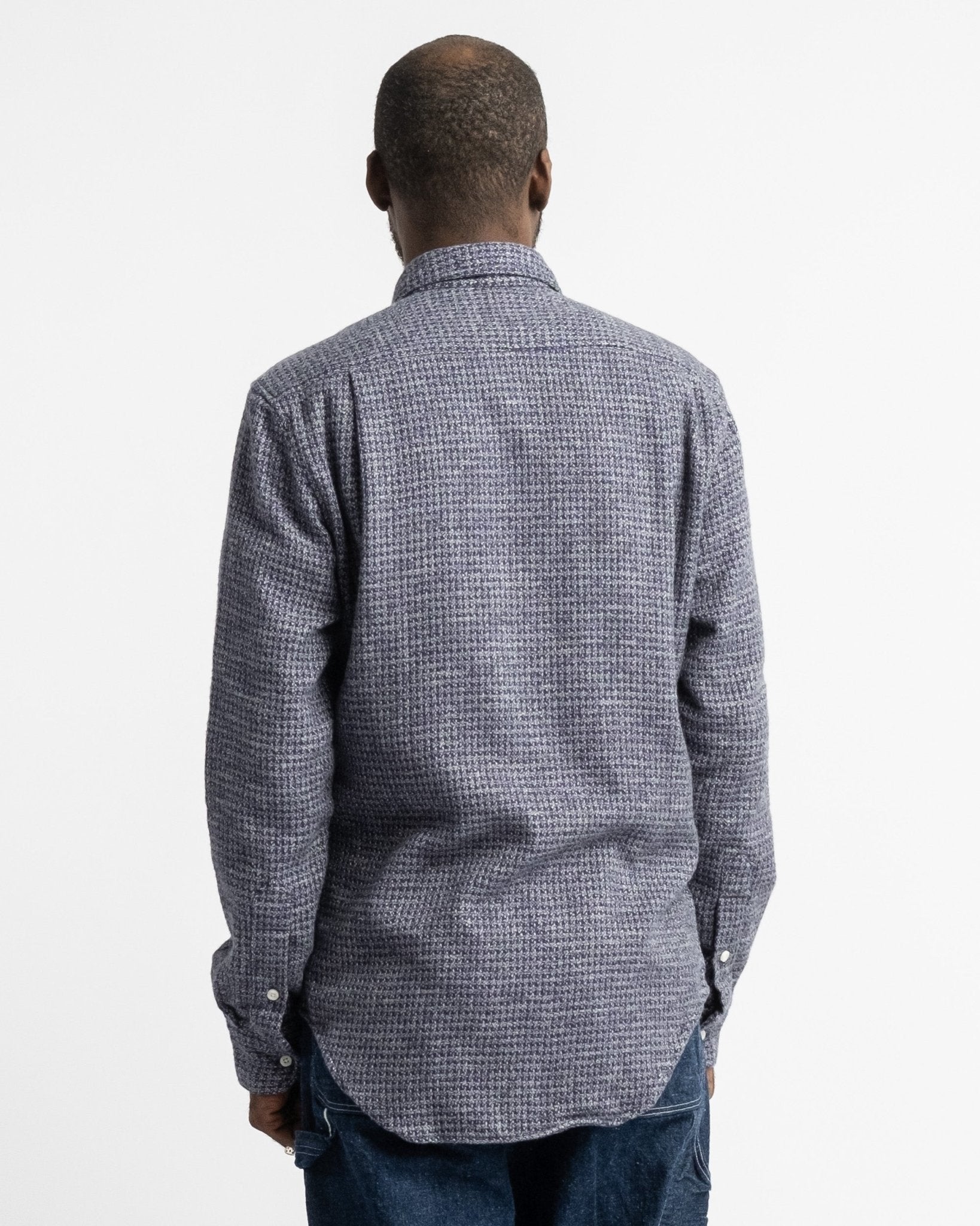 Camicia ultra morbida e mediamente pesante di Gitman Vintage, il Navy Triple Brushed Yarn. Dotata di tasche ispirate all'abbigliamento da lavoro, vestibilità casual rilassata e superficie spazzolata per quella sensazione perfetta durante i mesi più freddi. Realizzata in 100% cotone, prodotta negli USA.