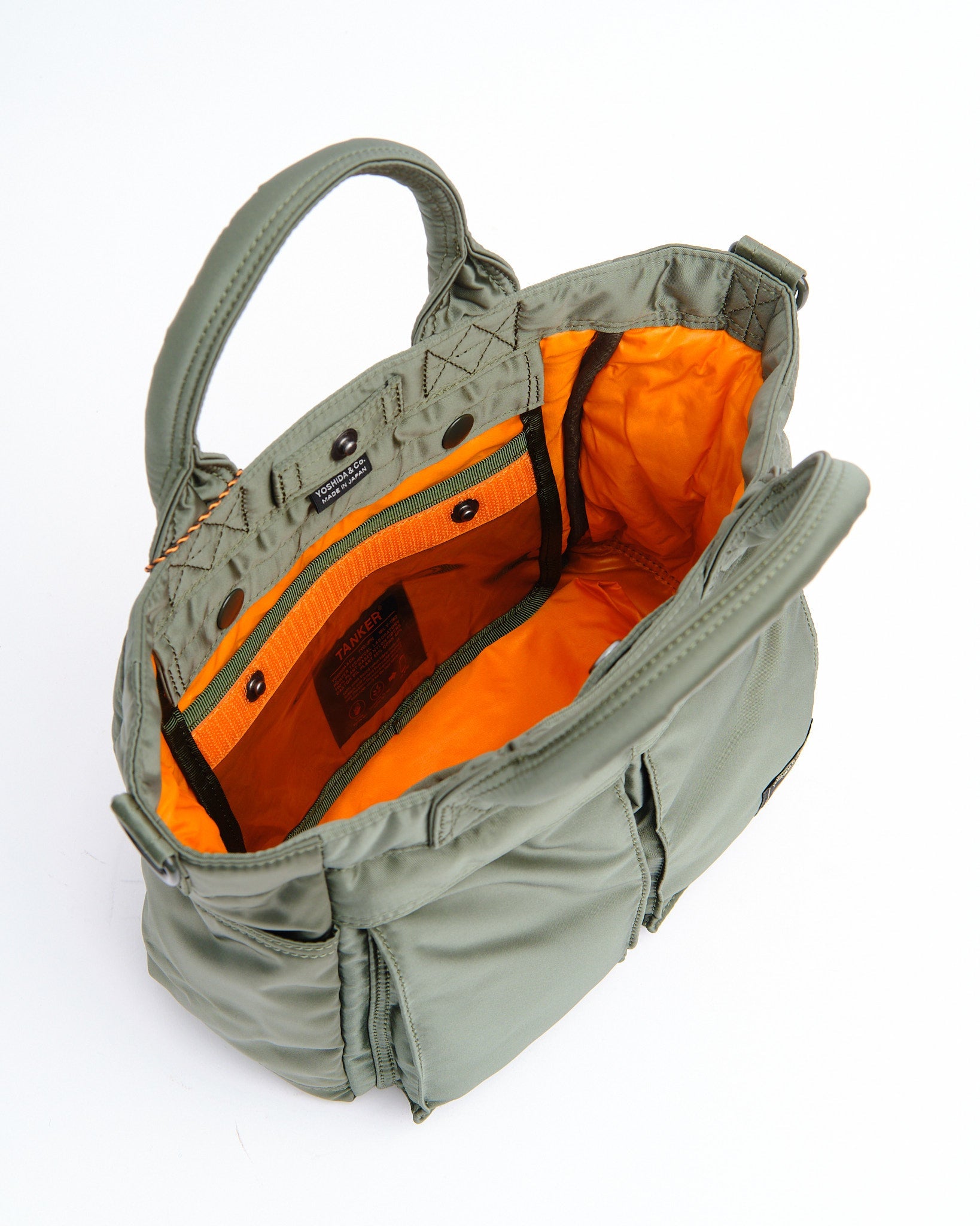 La Borsa Tote PORTER BY YOSHIDA Tanker (622-05487-30) in Verde Salvia è una borsa tote elegante e funzionale della serie New Tanker recentemente aggiornata. Realizzata in nylon derivato al 100% da piante, prodotto da piante di mais e ricino, questa borsa tote incarna la classica durabilità e il design della iconica collezione Tanker, ora arricchita con aggiornamenti moderni. Il tessuto, prodotto da Toray Industries, offre eccellente resistenza, morbidezza e un elegante lustro, il tutto essendo ecocompatibile.
