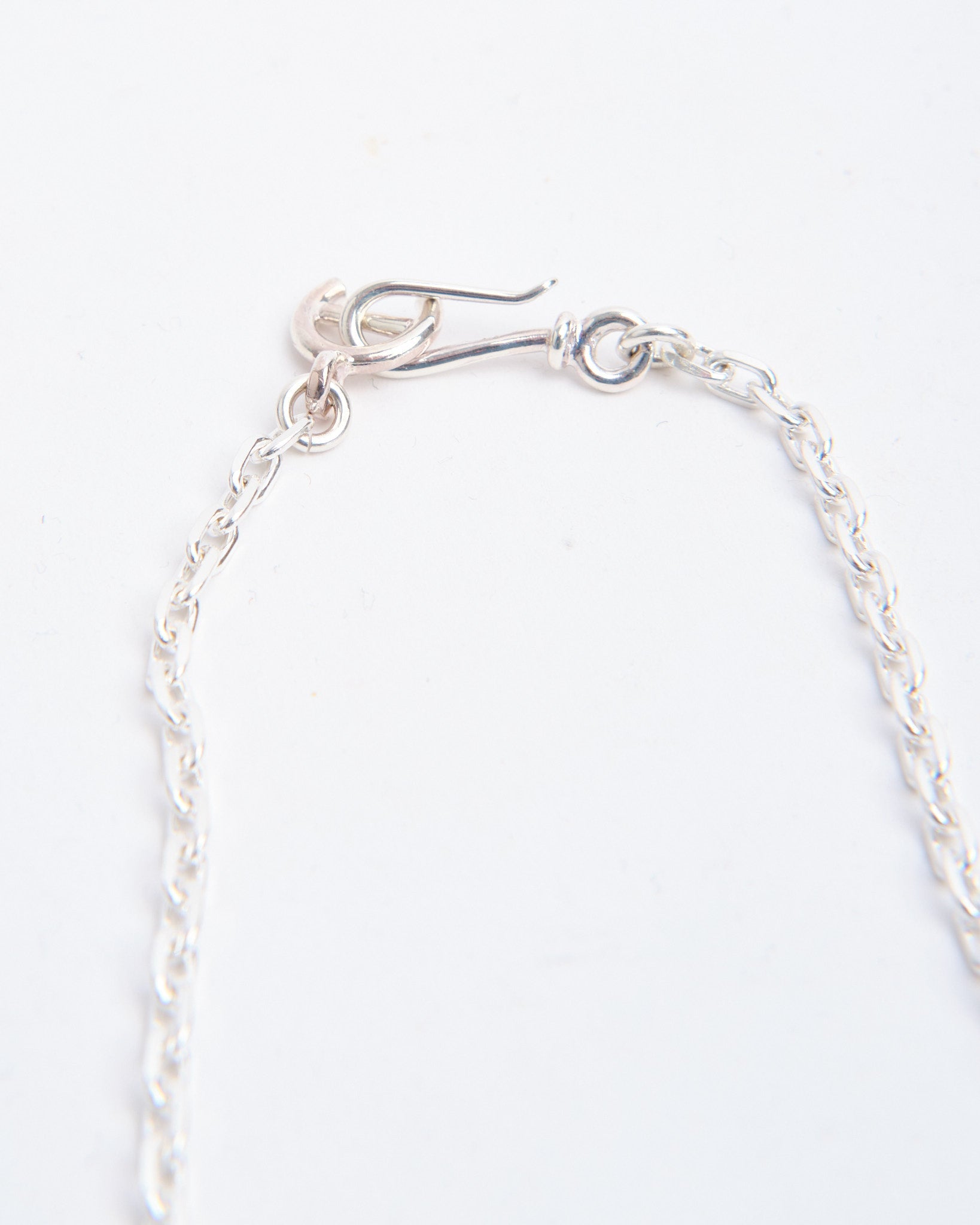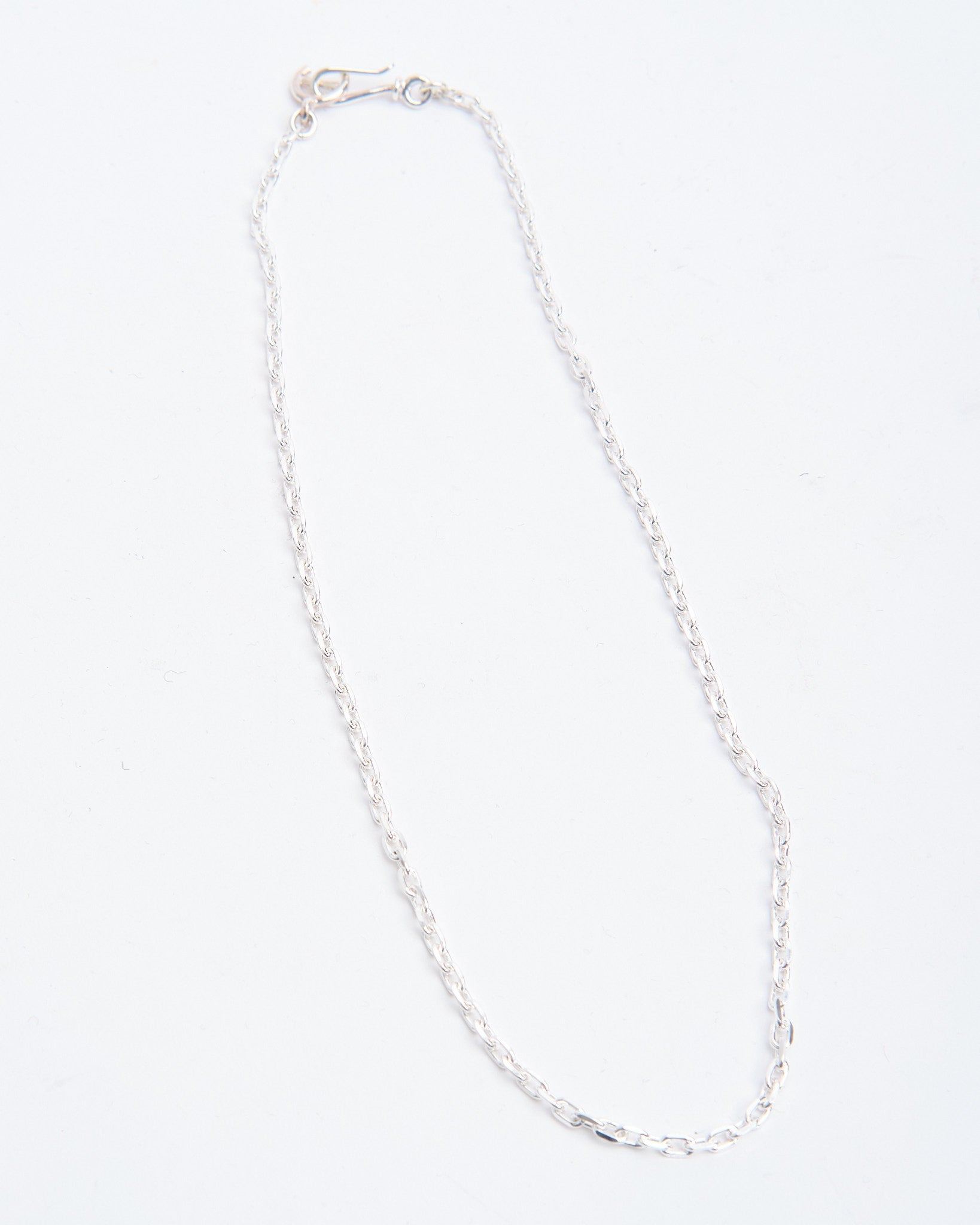The Chain M (55cm) is a versatile silver chain from First Arrows, designed to complement pendants or be worn on its own. Handcrafted in Japan from Britannia Silver 950, it offers more brightness than standard 925 silver while being strengthened with First Arrows’ unique heat-treatment process for durability. The medium weight and 55cm length give it balance and comfort, making it a reliable everyday choice. Whether paired with a feather, medicine wheel, or other symbolic pendant, the Chain M adds a refined foundation to any necklace combination. Over time, the silver will age with a natural patina, giving the chain even more character.
