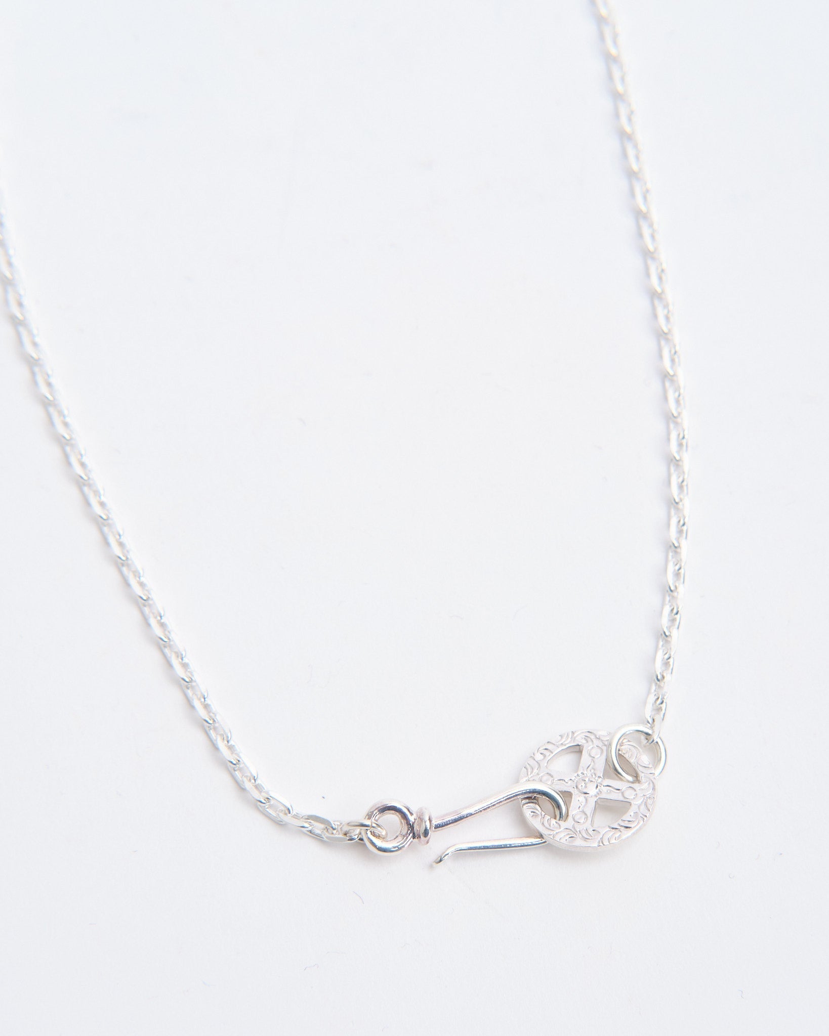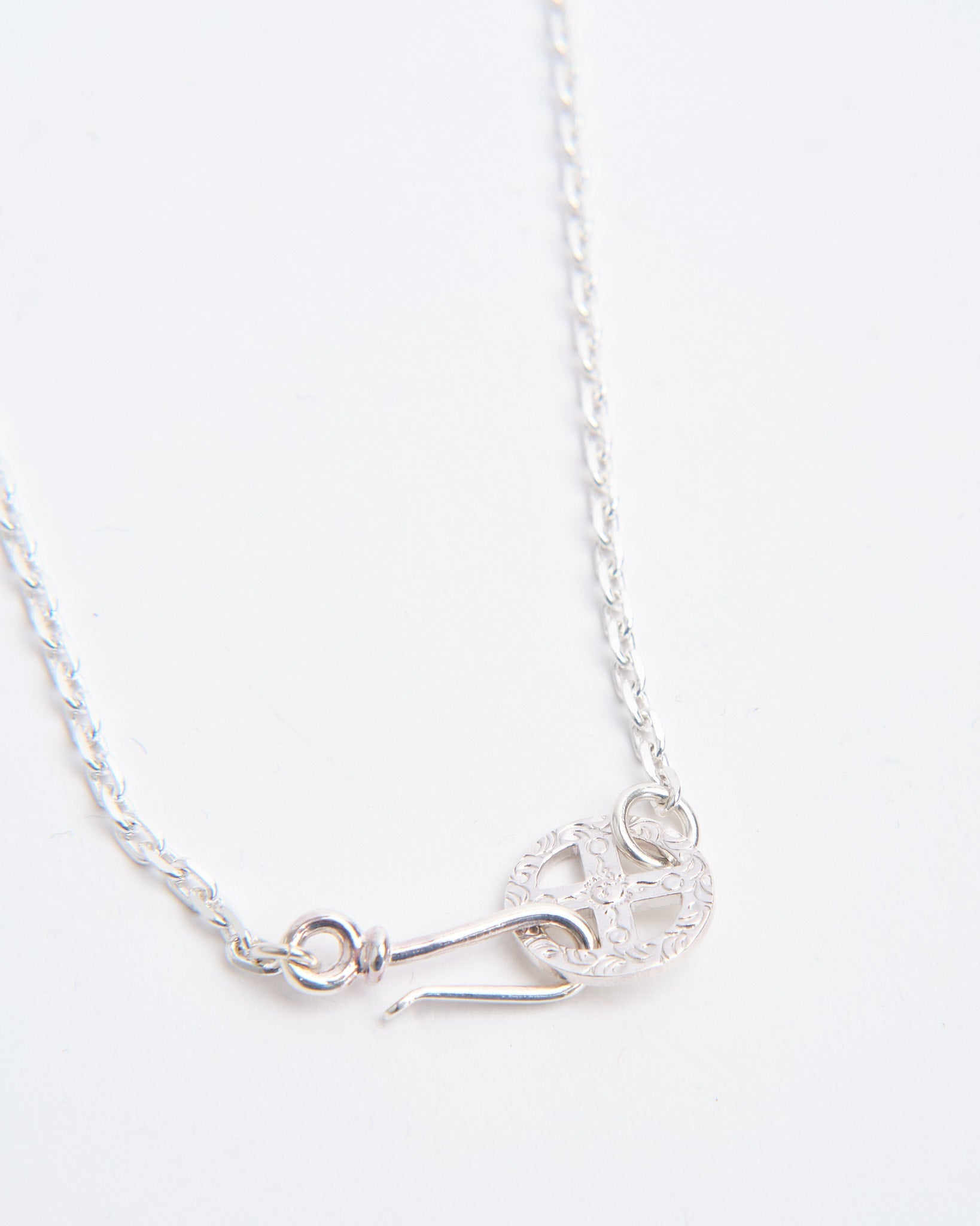 Paired with a 60cm silver chain, this necklace is ready to wear straight out of the box. First Arrows apply their exclusive heat-treatment process to strengthen the silver, improving durability while maintaining a clear, refined surface. Over time, the silver will naturally darken and develop patina, giving the piece greater depth and individuality.