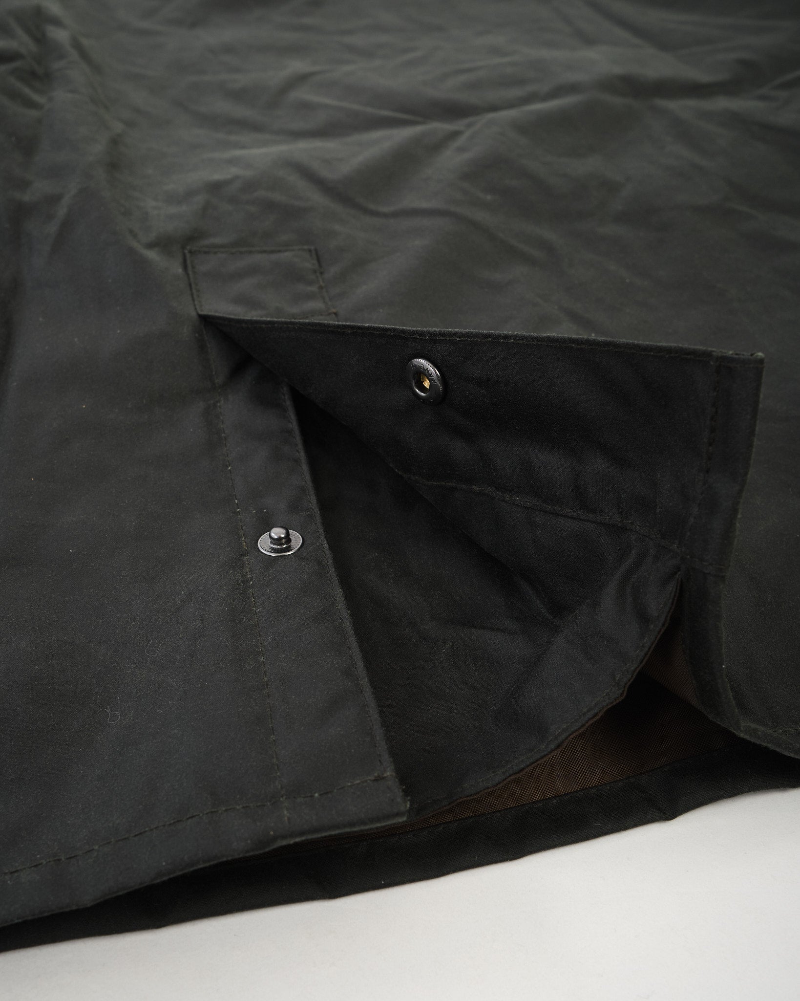 • Zip in ottone a due vie con pattina antipioggia a chiusura a scatto