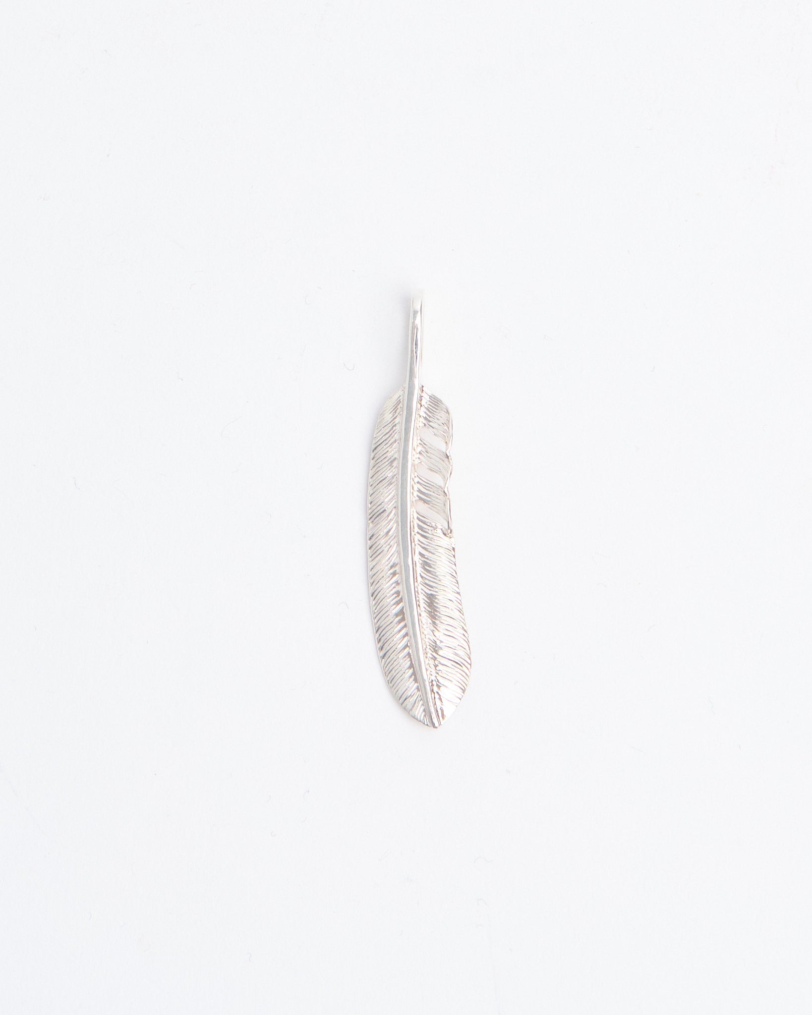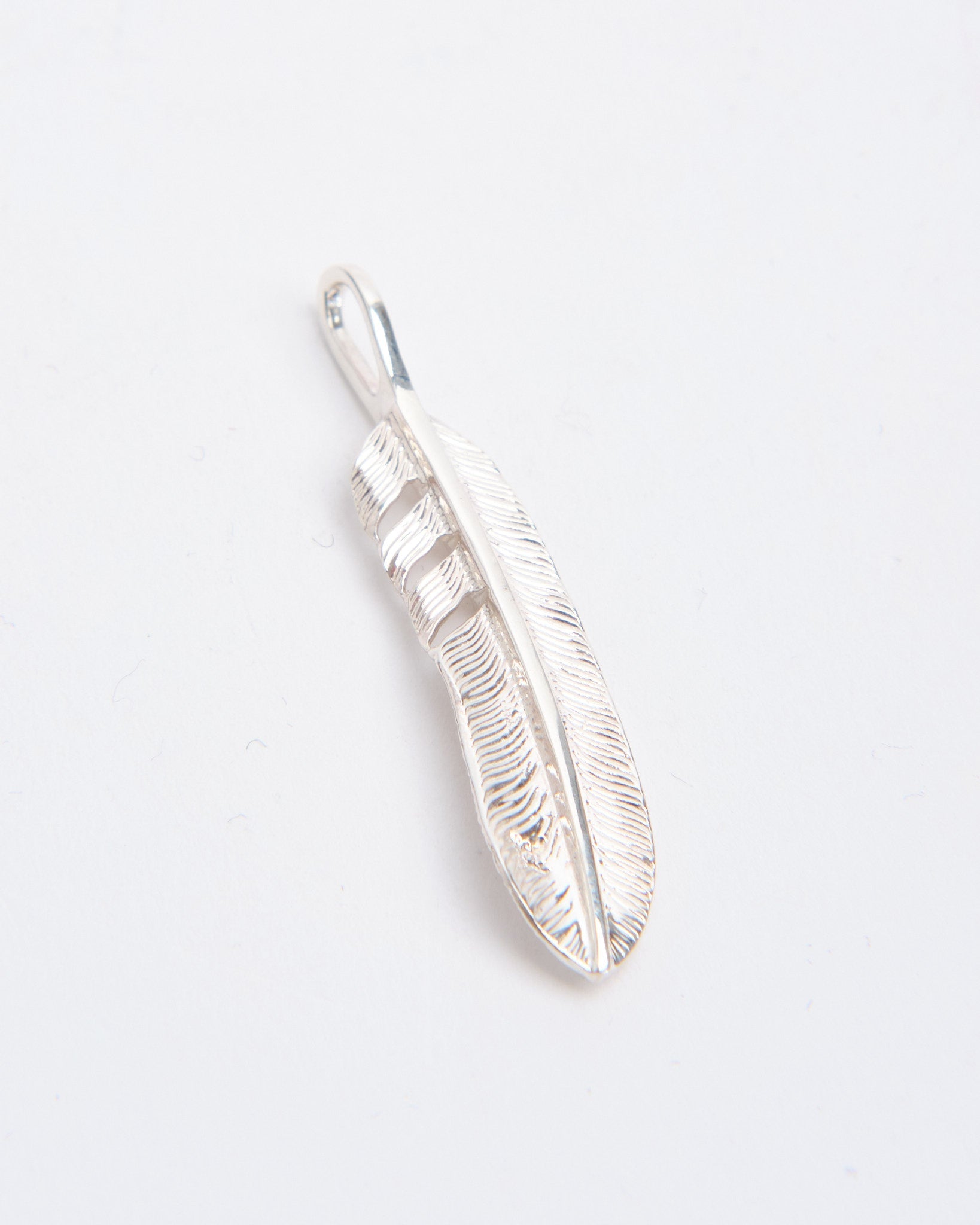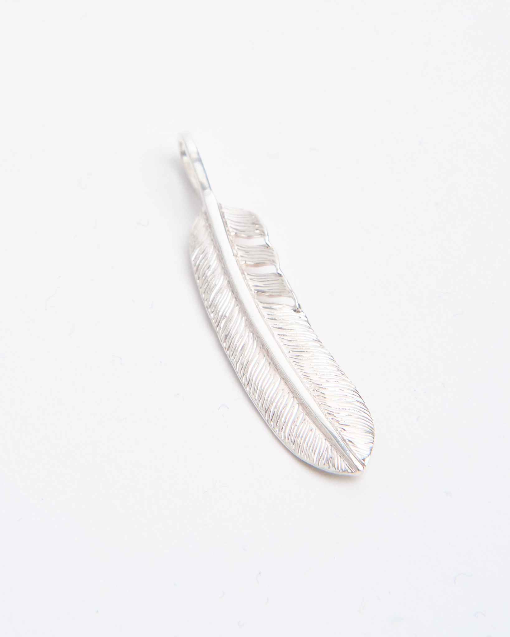 The Feather (M) is a classic pendant from First Arrows, handcrafted in Japan using Britannia Silver 950. Inspired by Native American tradition, the feather motif symbolises freedom, hope, and positive spirit. Its medium size offers a perfect balance, making it noticeable without being overpowering. Strengthened through First Arrows’ exclusive heat-treatment process, the silver maintains its brilliance while gaining durability for everyday wear. Over time, the silver will age gracefully, developing a darker patina that highlights the intricate feather details. Whether worn alone or layered with other pendants, this piece blends heritage symbolism with refined Japanese craftsmanship.