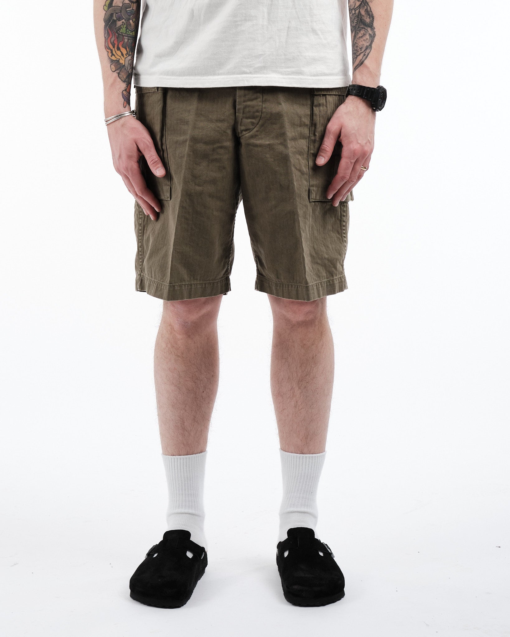 I orSlow U.S. Army 2 Pocket Cargo Shorts in Army Green sono una reinterpretazione moderna dei classici pantaloncini militari, che combinano durabilità e design senza tempo. Realizzati in Giappone in twill di cotone herringbone al 100%, questi pantaloncini sono progettati per resistere all'usura quotidiana offrendo al contempo comfort. La vestibilità rilassata permette una facile mobilità, rendendoli adatti per uscite casual o attività all'aperto. Due grandi tasche cargo sui lati forniscono uno spazio pratico per gli essenziali. Riflettendo la dedizione di orSlow alla maestria artigianale, questi pantaloncini offrono qualità e versatilità.