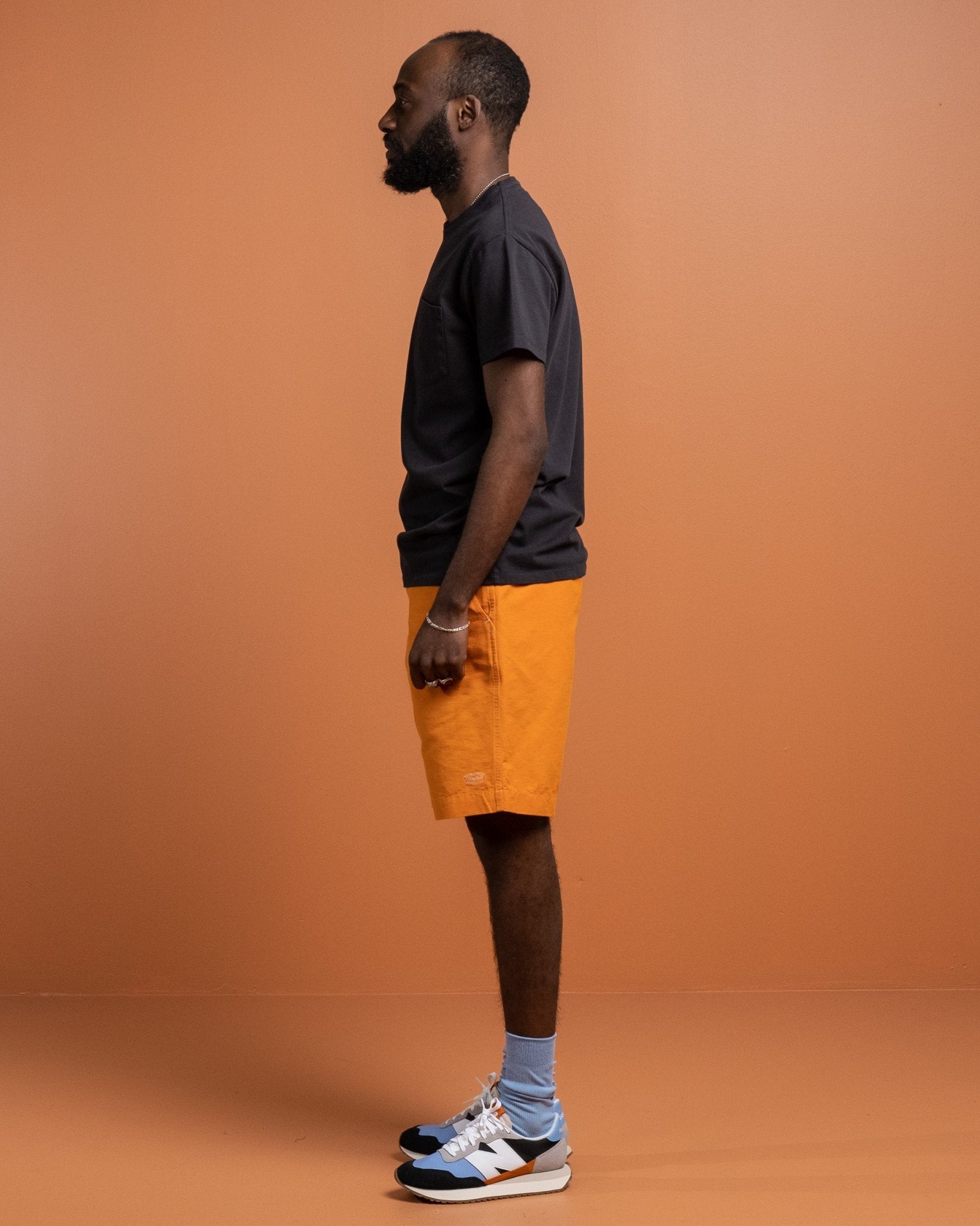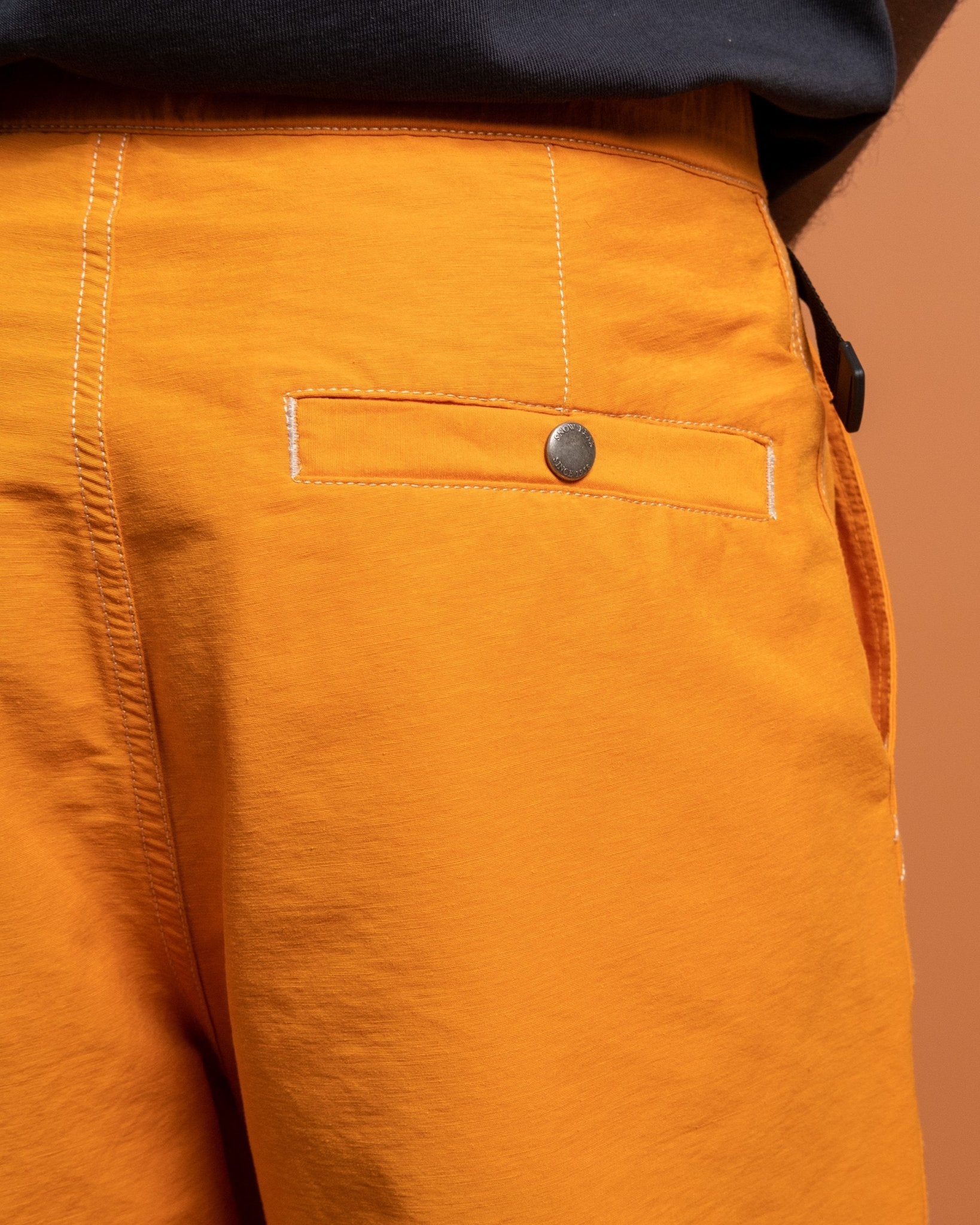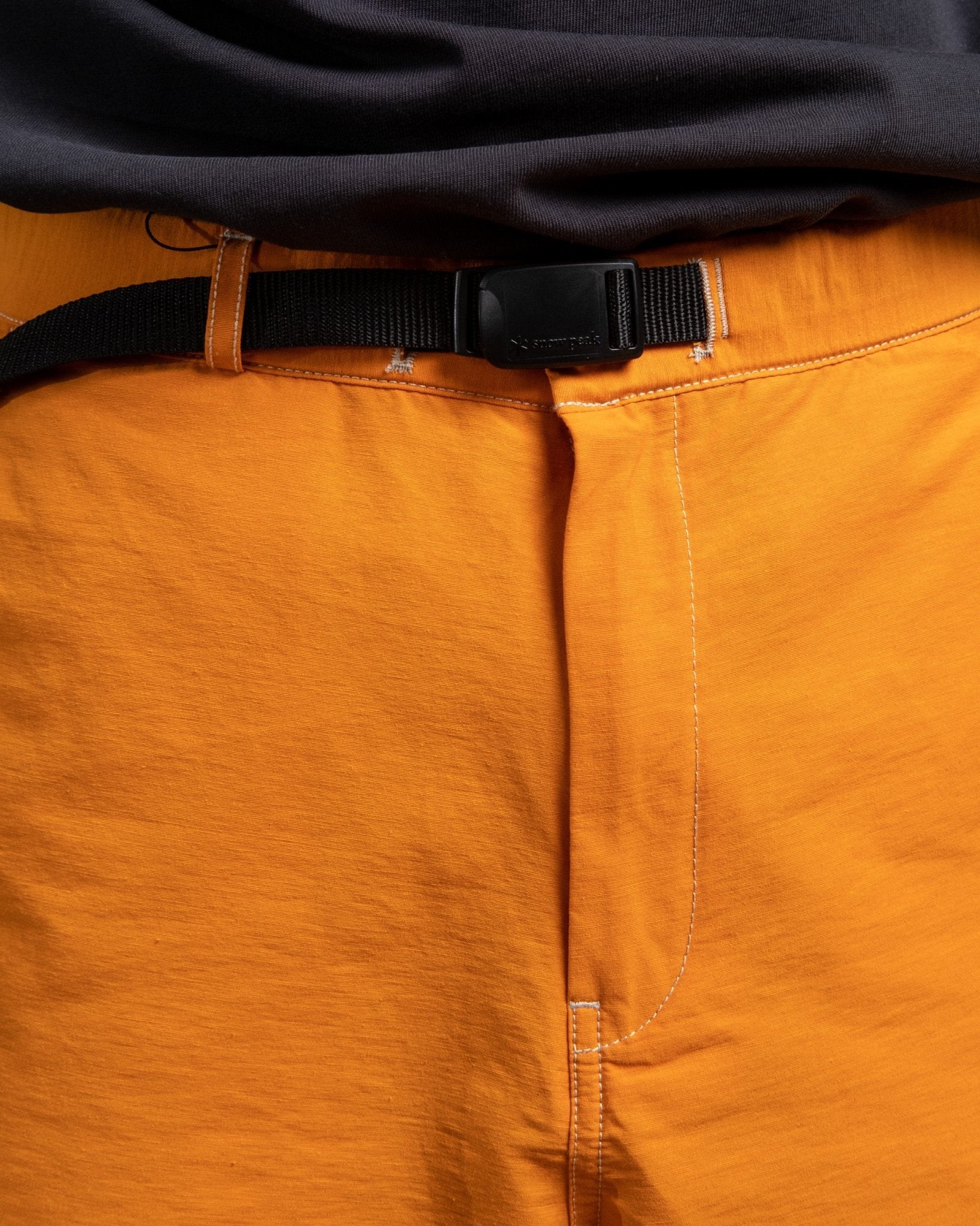 Pantaloncini Light Mountain Cloth arancioni di Snow Peak. Pantaloncini casual leggeri realizzati in una miscela di cotone/nylon. Dotati di cintura fissa, tasche laterali e posteriori doppie. Prodotto in Cina.