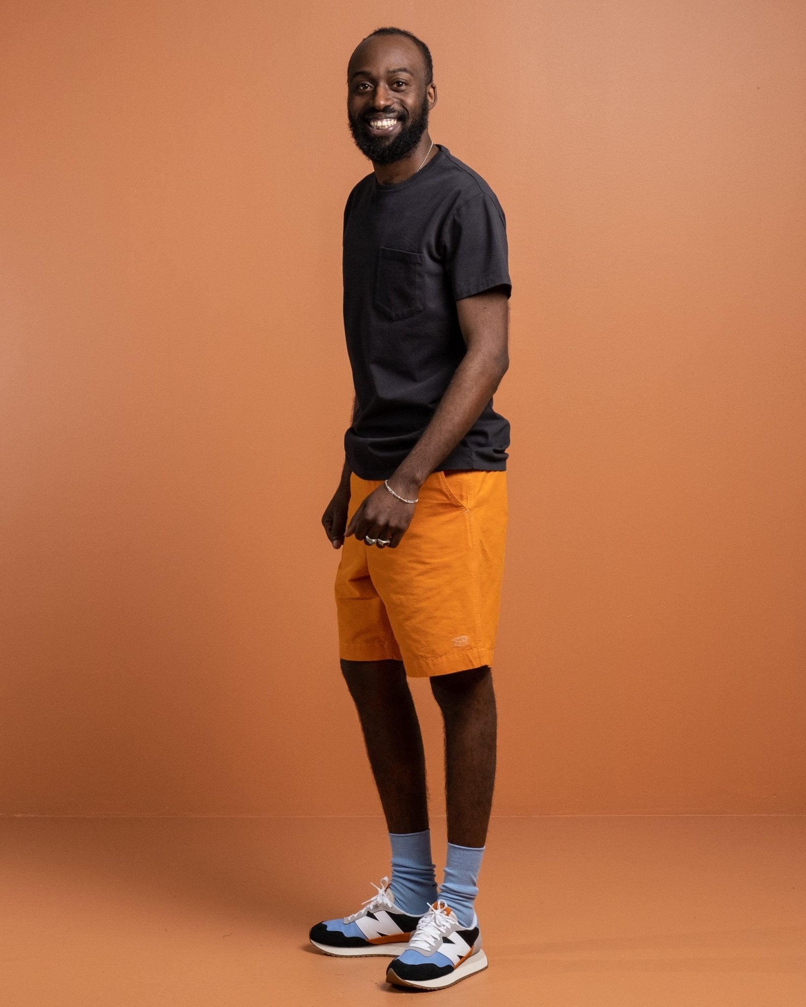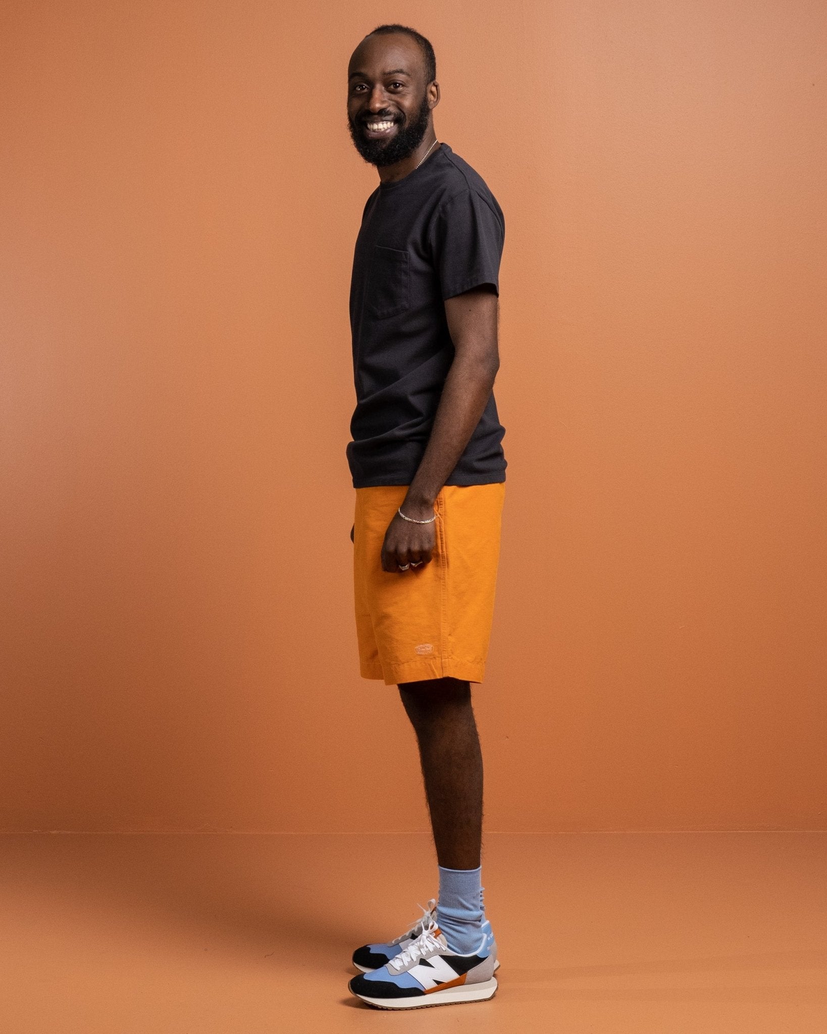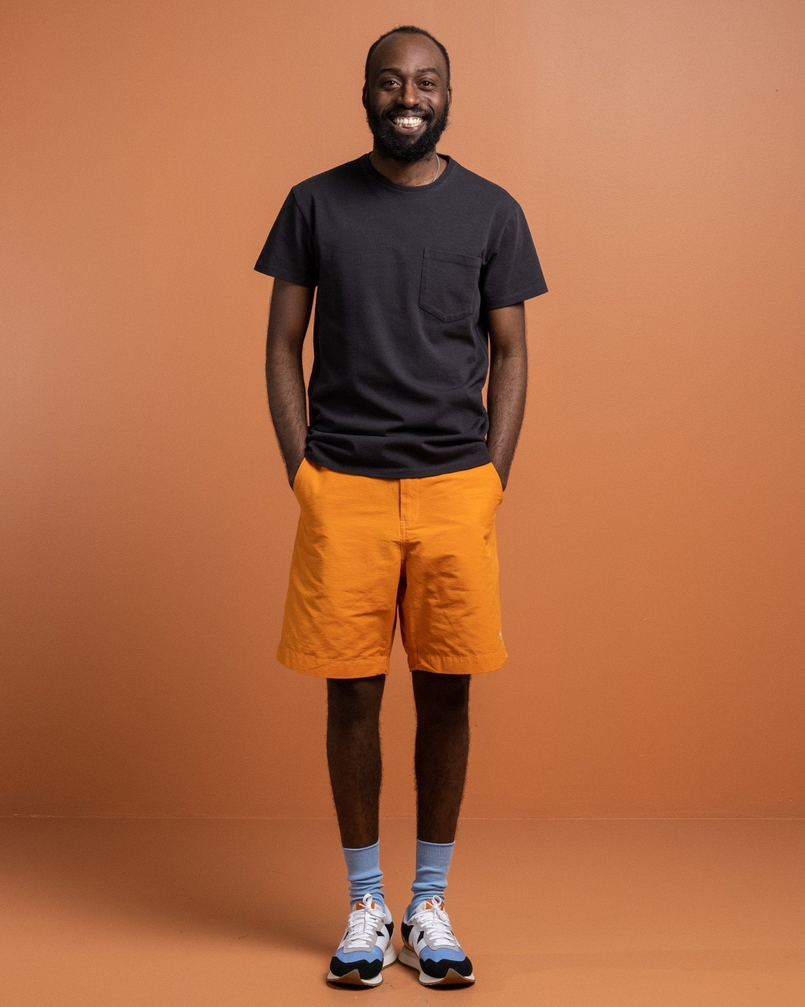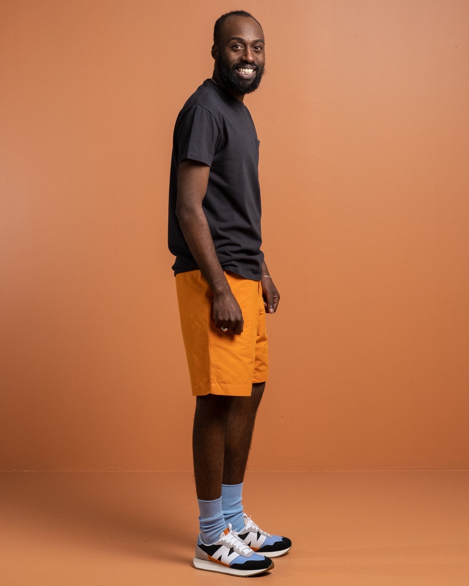 Pantaloncini Light Mountain Cloth arancioni di Snow Peak. Pantaloncini casual leggeri realizzati in una miscela di cotone/nylon. Dotati di cintura fissa, tasche laterali e posteriori doppie. Prodotto in Cina.