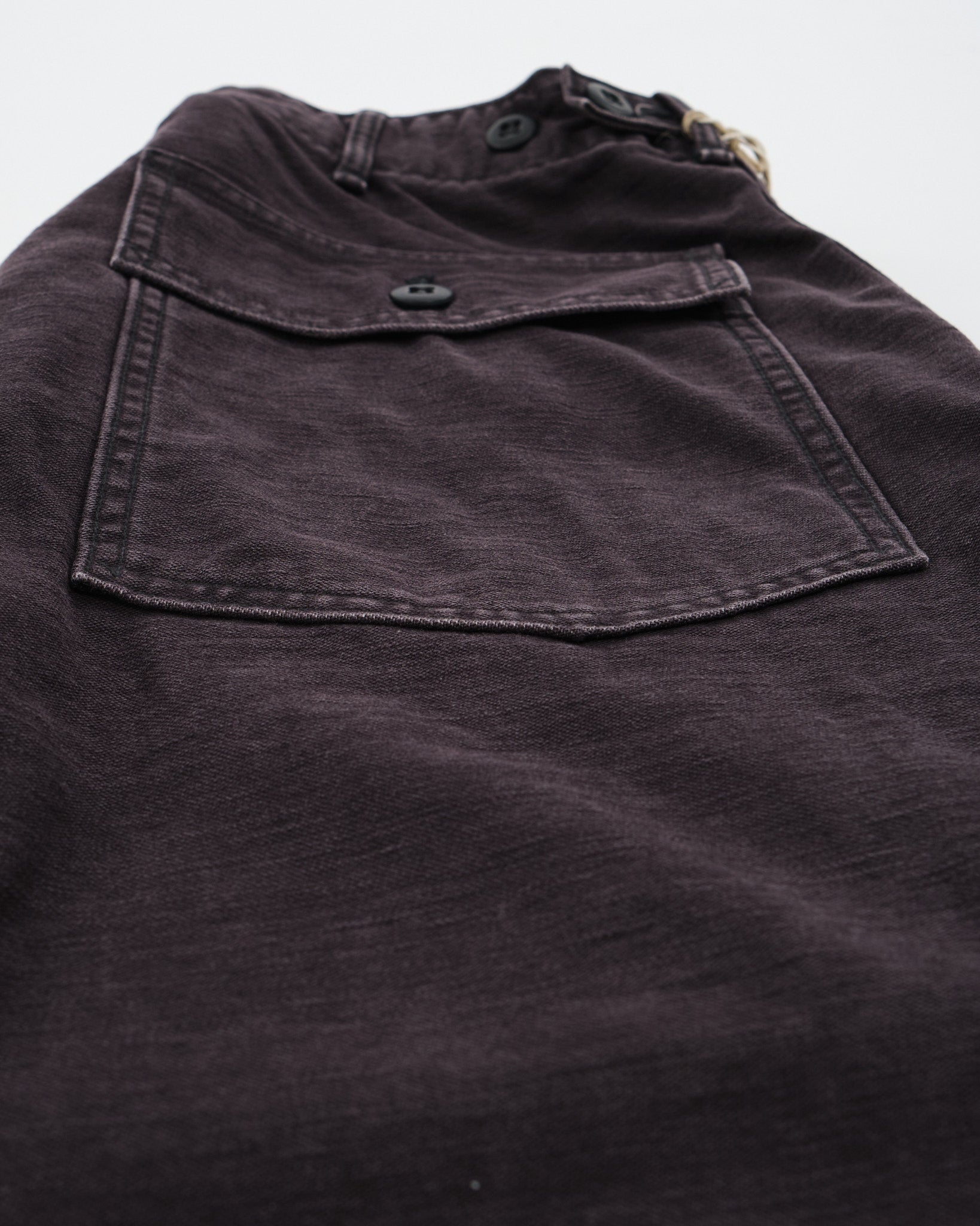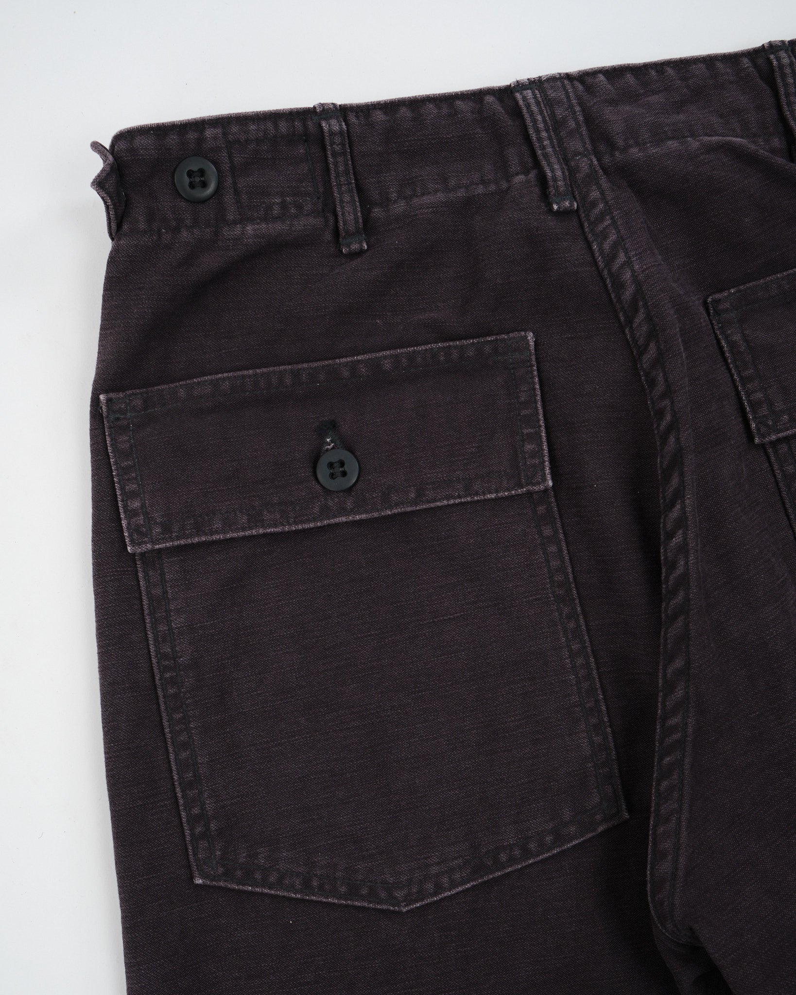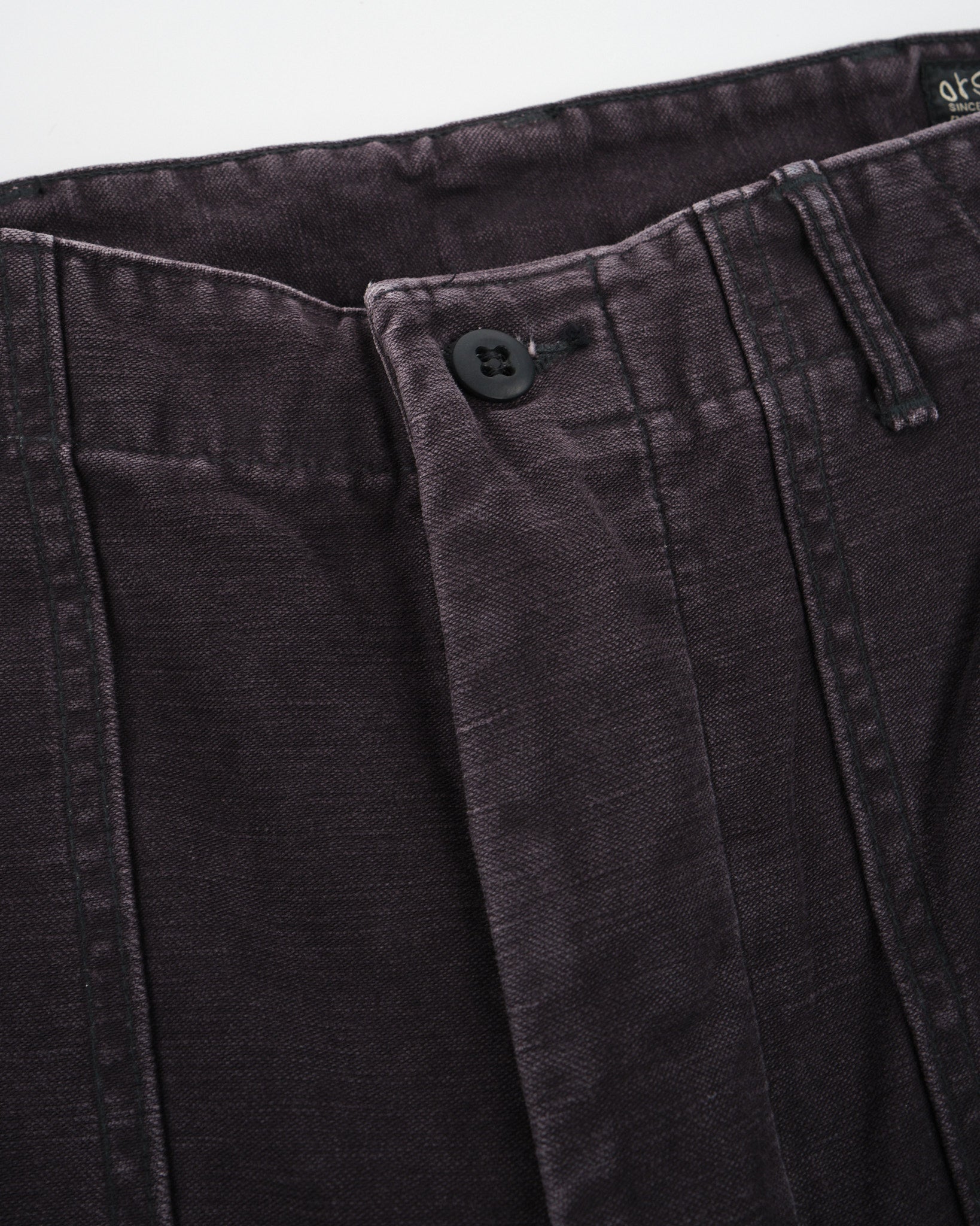 I orSlow US Army Fatigue Pants Regular Fit in Black Stone sono un omaggio contemporaneo al classico abbigliamento da lavoro militare, combinando durabilità con uno stile senza tempo. Realizzati in tessuto di sateen di cotone al 100% invertito, questi pantaloni offrono una texture unica e una costruzione robusta. Il taglio regolare garantisce comfort e facilità di movimento, mentre le linguette regolabili in vita permettono una vestibilità personalizzabile. Dotati di due ampie tasche laterali applicate e tasche posteriori con chiusura a patta, offrono pratiche soluzioni di stoccaggio. Il colore nero lavato a pietra aggiunge un fascino vintage, rendendoli versatili per vari outfit. Realizzati in Giappone, questi pantaloni riflettono l'impegno di orSlow nella qualità artigianale.