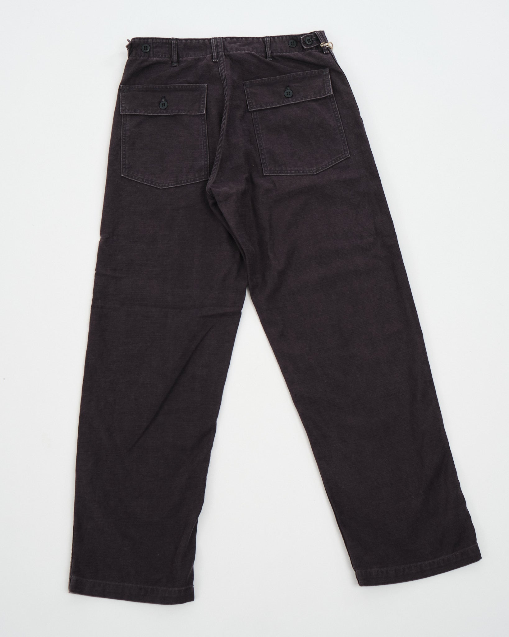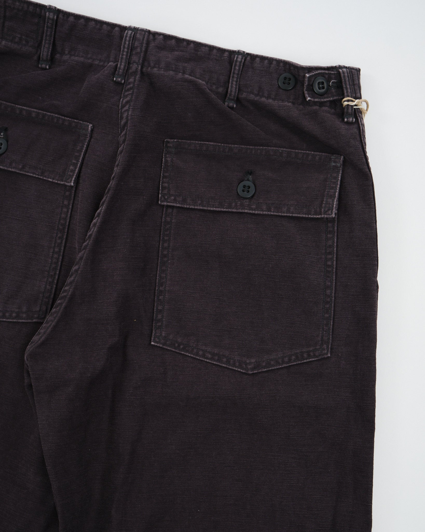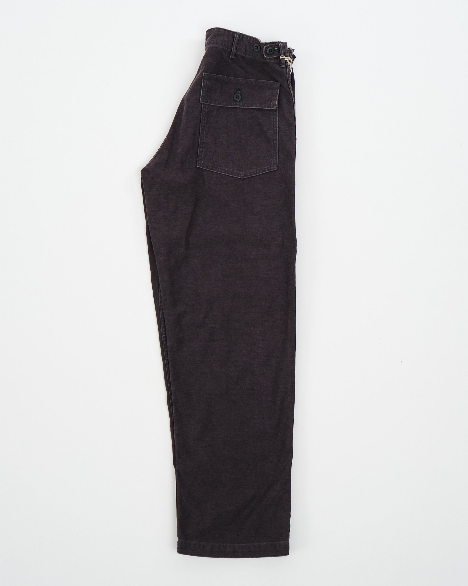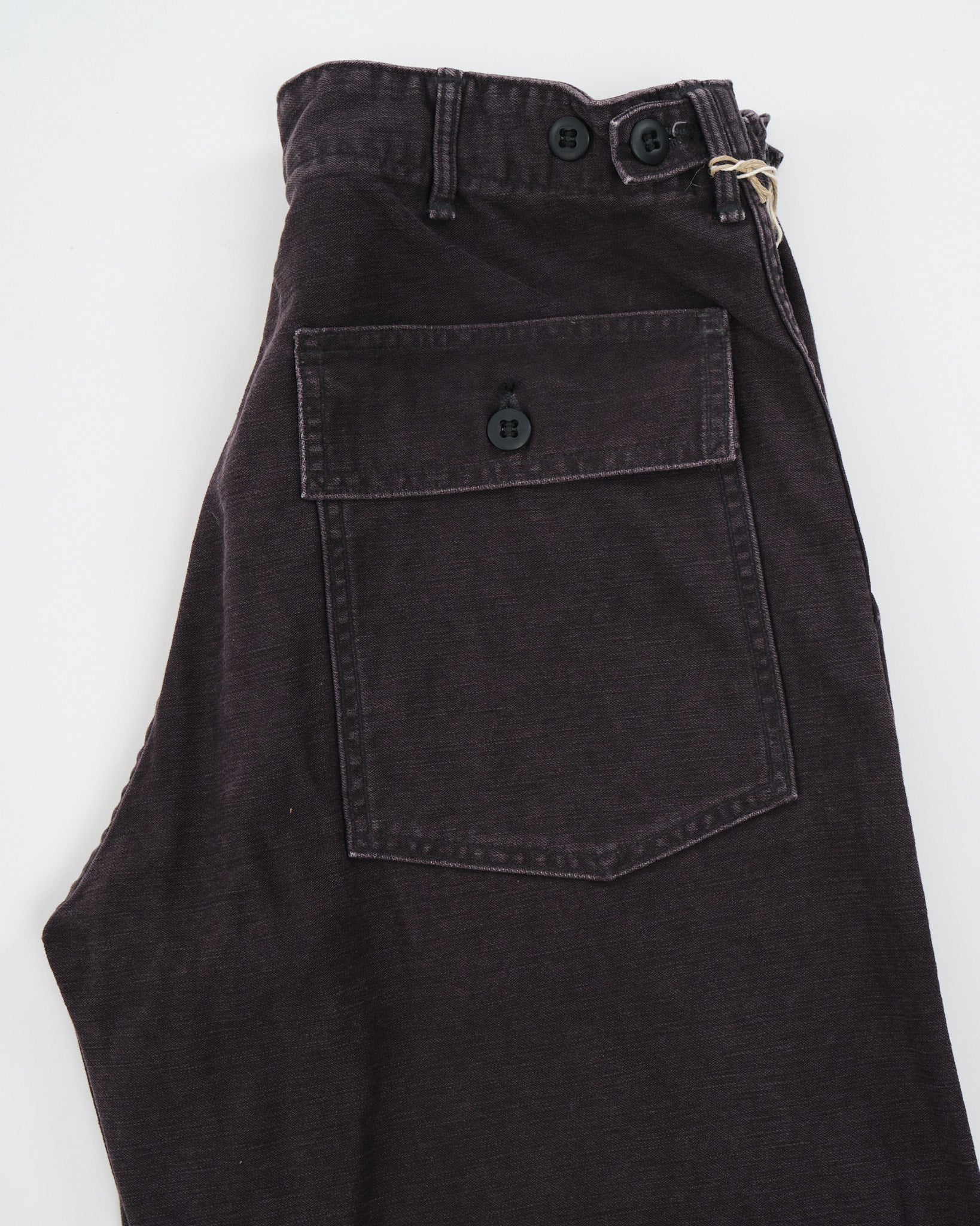 I orSlow US Army Fatigue Pants Regular Fit in Black Stone sono un omaggio contemporaneo al classico abbigliamento da lavoro militare, combinando durabilità con uno stile senza tempo. Realizzati in tessuto di sateen di cotone al 100% invertito, questi pantaloni offrono una texture unica e una costruzione robusta. Il taglio regolare garantisce comfort e facilità di movimento, mentre le linguette regolabili in vita permettono una vestibilità personalizzabile. Dotati di due ampie tasche laterali applicate e tasche posteriori con chiusura a patta, offrono pratiche soluzioni di stoccaggio. Il colore nero lavato a pietra aggiunge un fascino vintage, rendendoli versatili per vari outfit. Realizzati in Giappone, questi pantaloni riflettono l'impegno di orSlow nella qualità artigianale.
