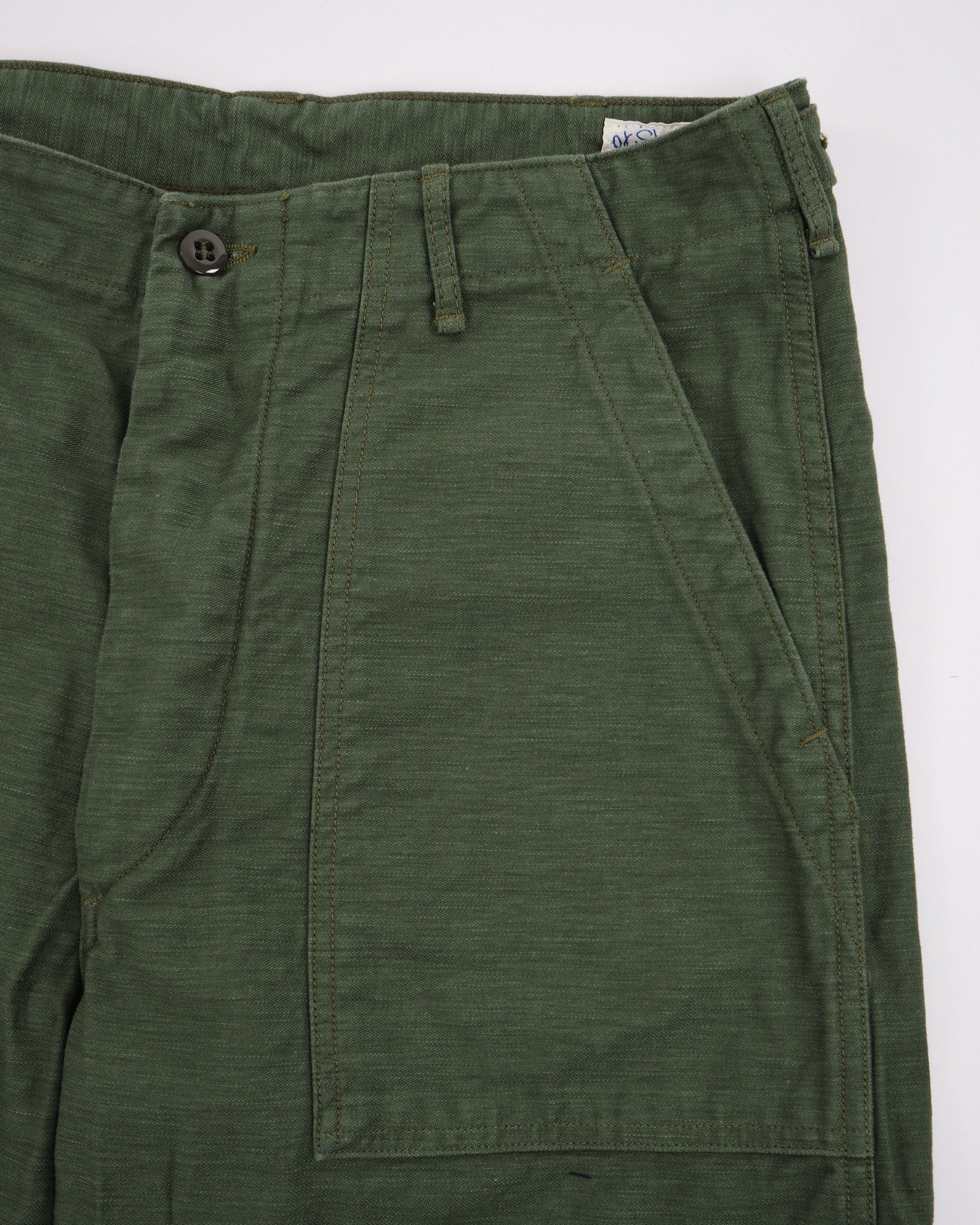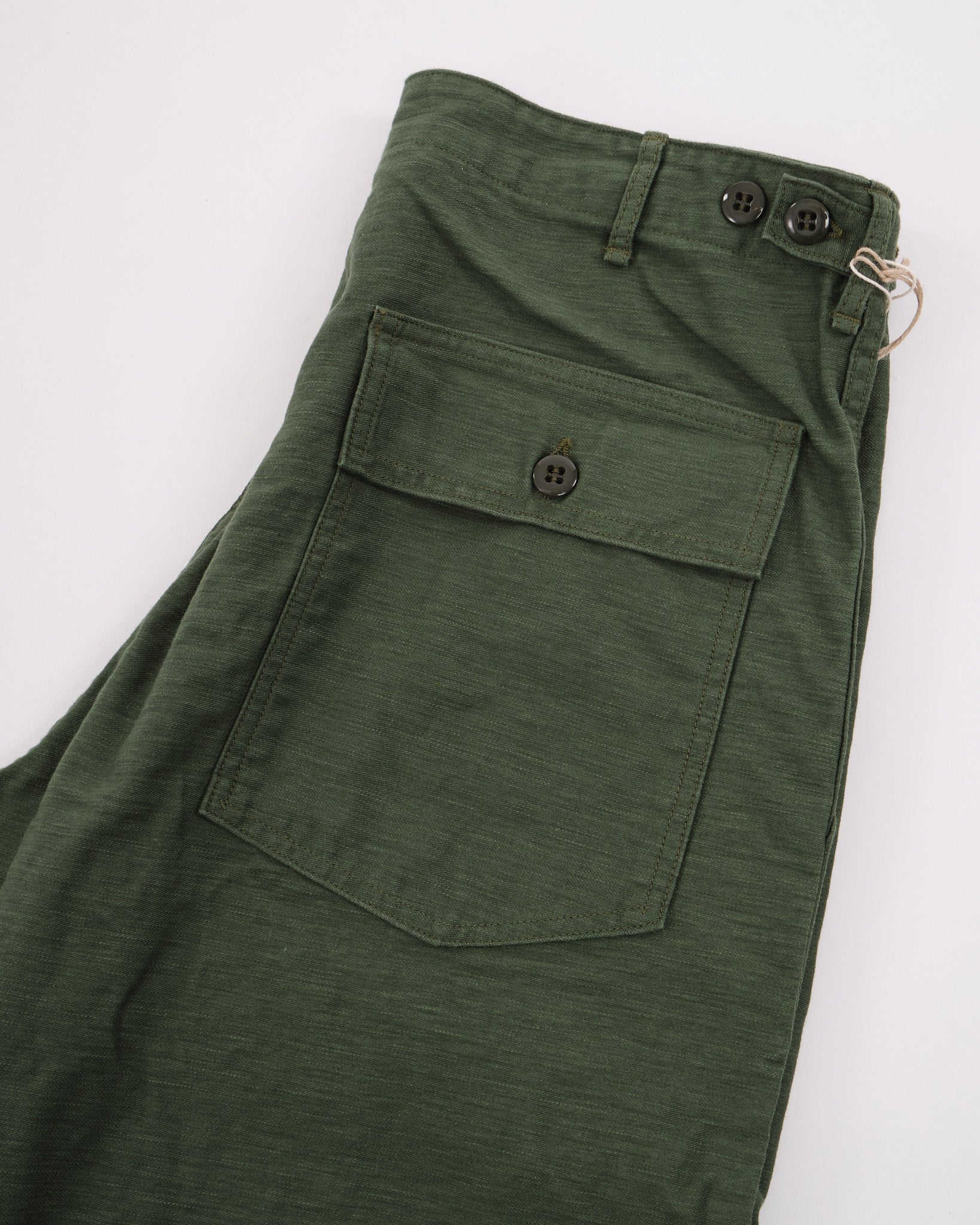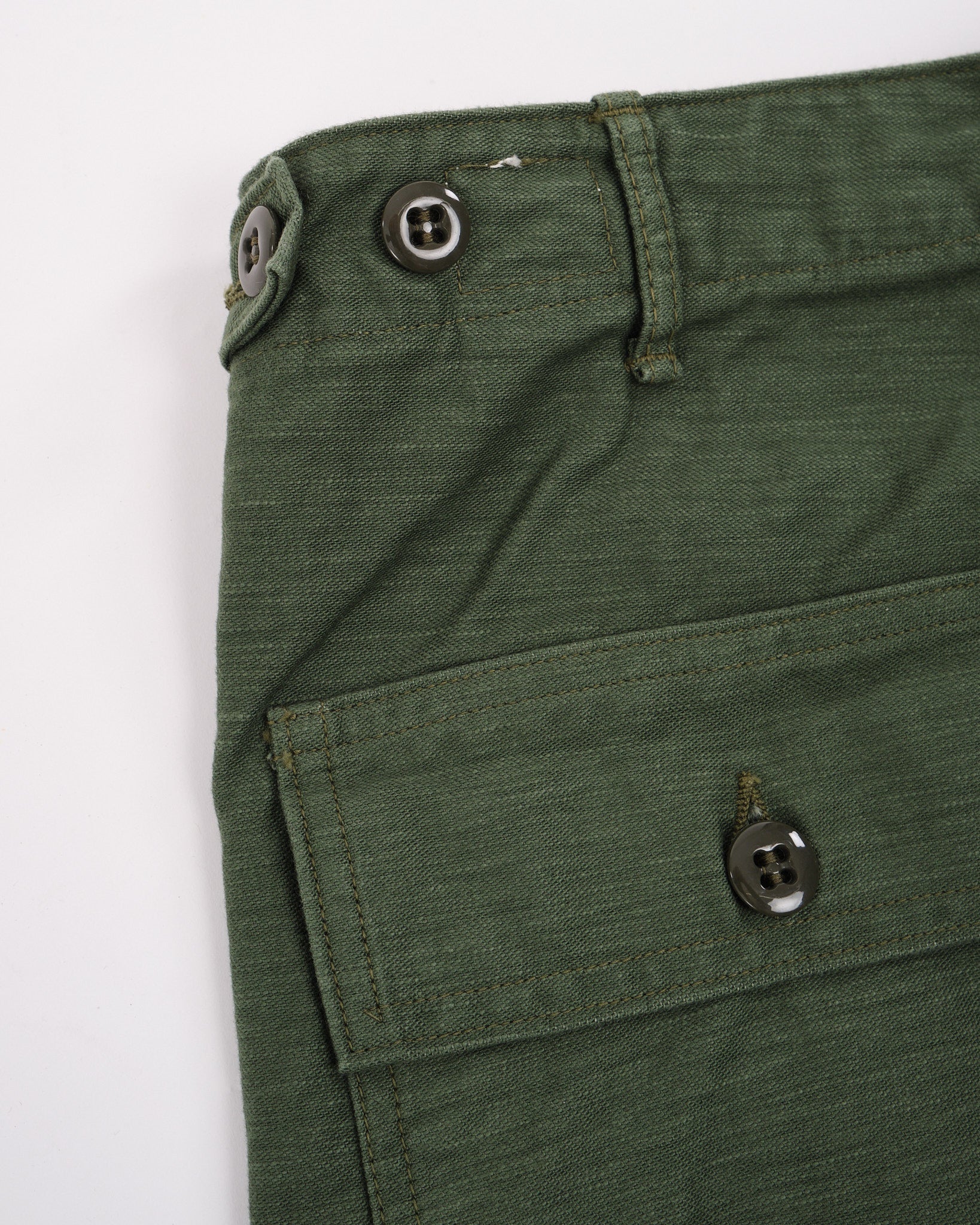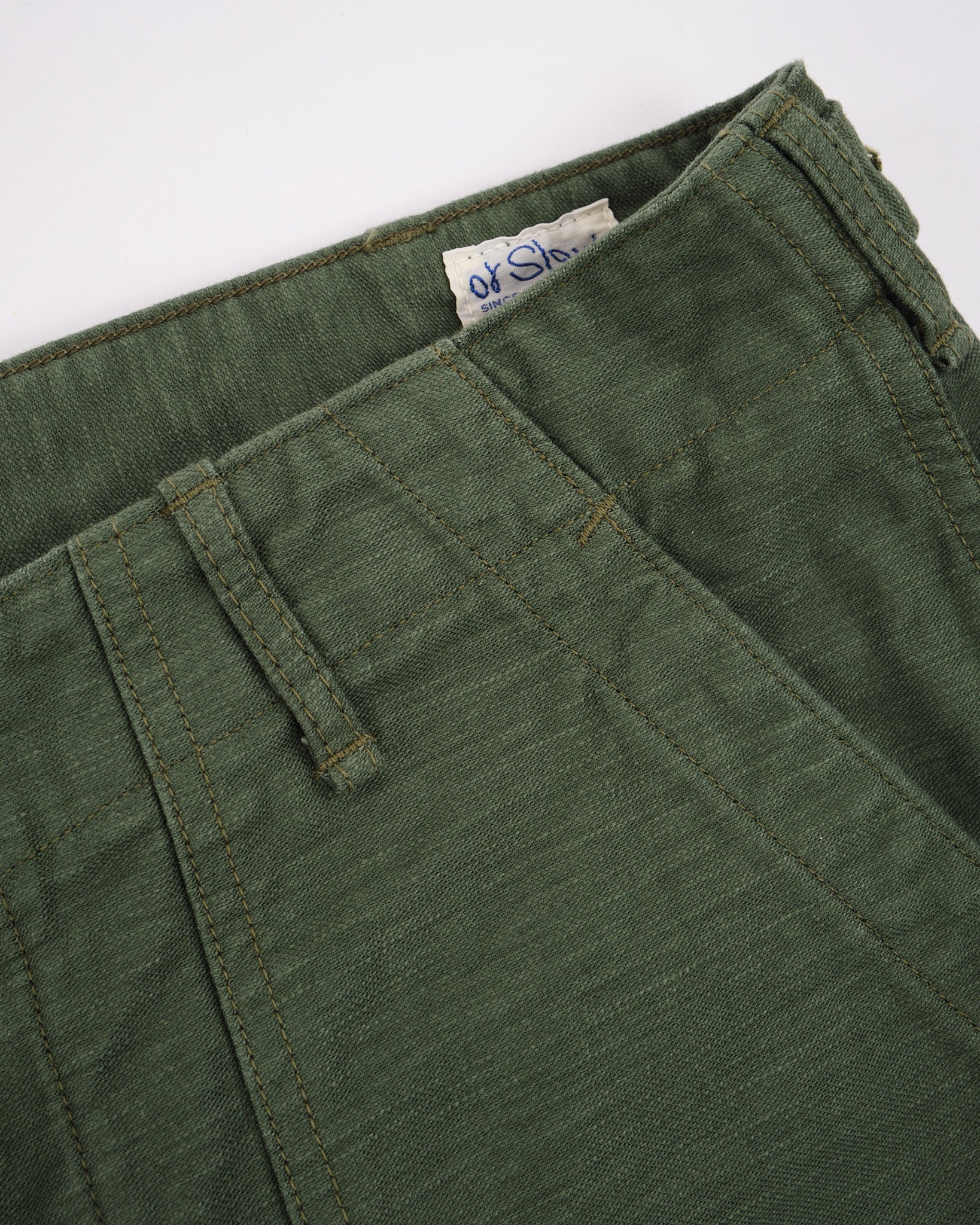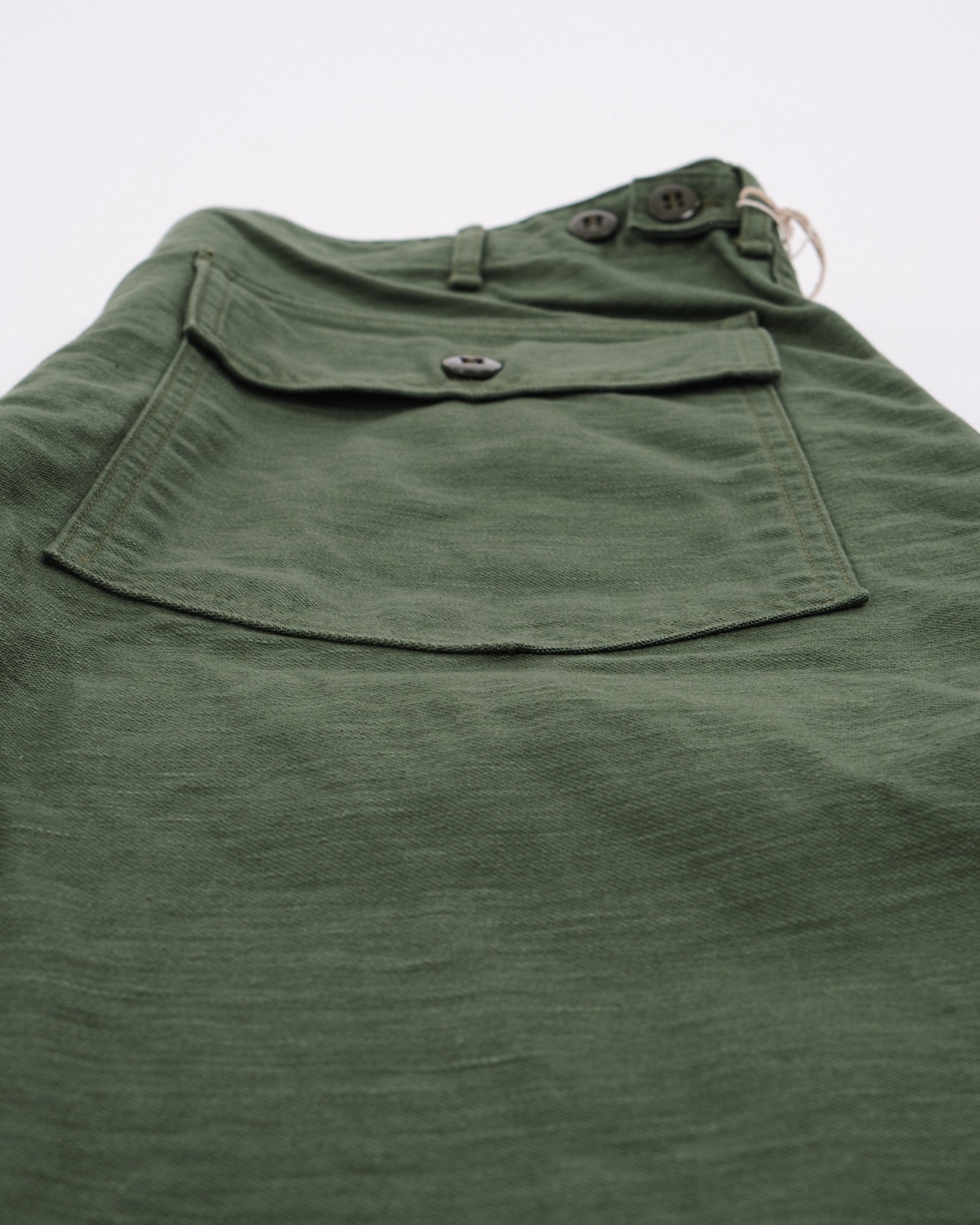 Presentiamo i senza tempo orSlow US ARMY FATIGUE PANTS REGULAR FIT VERDI, un must have nel mondo dell'abbigliamento di alta qualità noti per il loro fascino e comfort ineguagliabile. Creati utilizzando un Tessuto Reverse Sateen, questi pantaloni offrono un tocco morbido e liscio grazie alla loro distinta texture slub che è affascinante da vicino. Nonostante siano classificati come pesanti, sono eccezionalmente delicati sulla pelle rendendoli perfetti per il lusso. Ogni dettaglio intricato, dalla cintura con tab laterale alle tasche patch frontali e le numerose chiusure a bottone, rende omaggio al design originale dell'US Army che ha servito da ispirazione. Questi pantaloni con vestibilità a gamba dritta non sono solo un capo di abbigliamento; incarnano la storia. Sono stati meticolosamente prelavati e adornati con bottoni d'epoca ed etichette tessute personalizzate per garantire autenticità e comfort. Realizzati con cura a Osaka, Giappone questi pantaloni da fatica promettono di diventare un capo stabile nel vostro guardaroba. Se riuscite a mettere le mani su di loro mentre sono ancora, disponibili in magazzino.