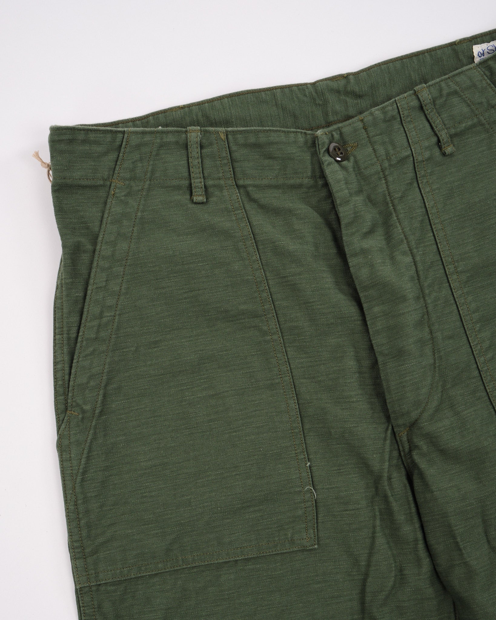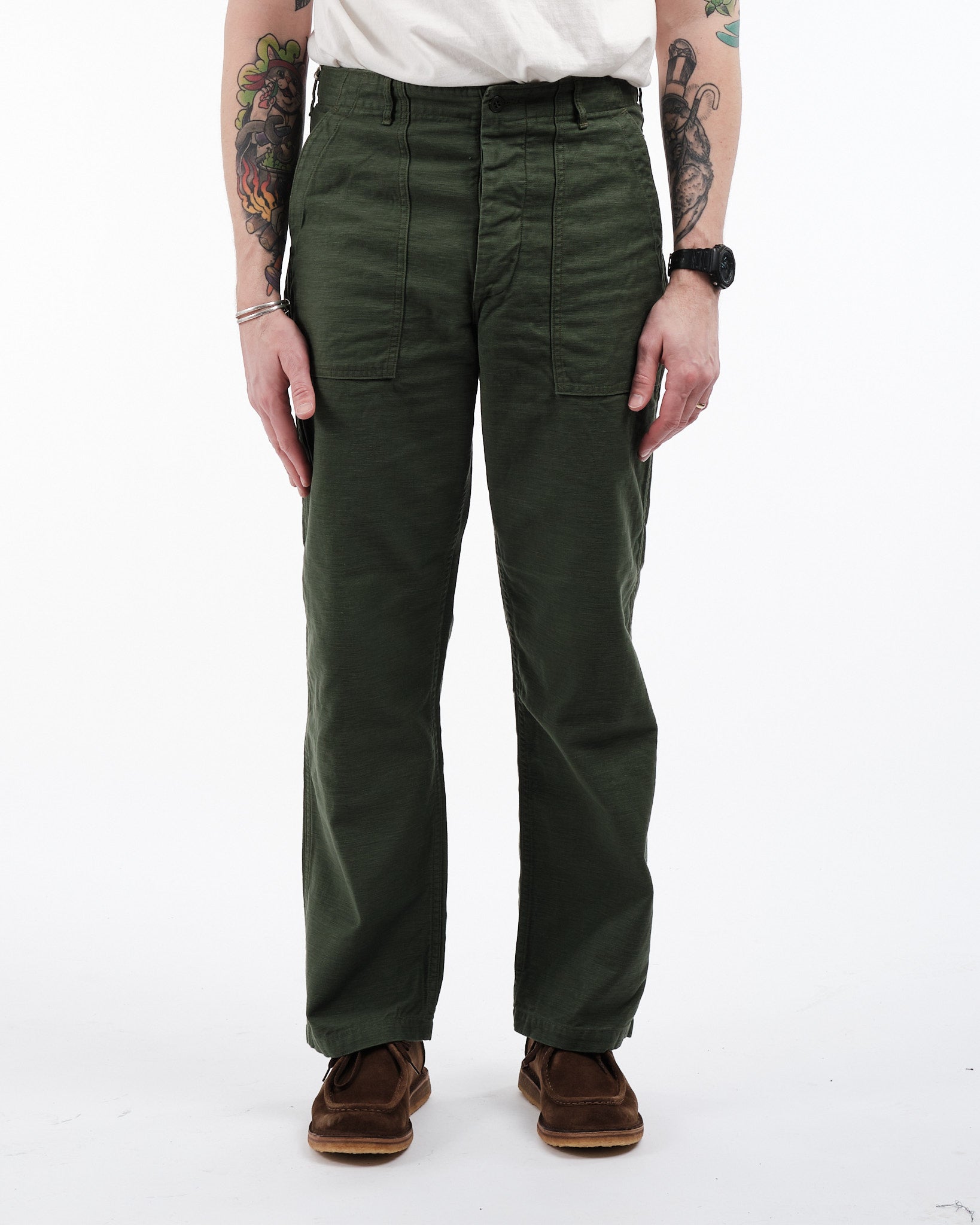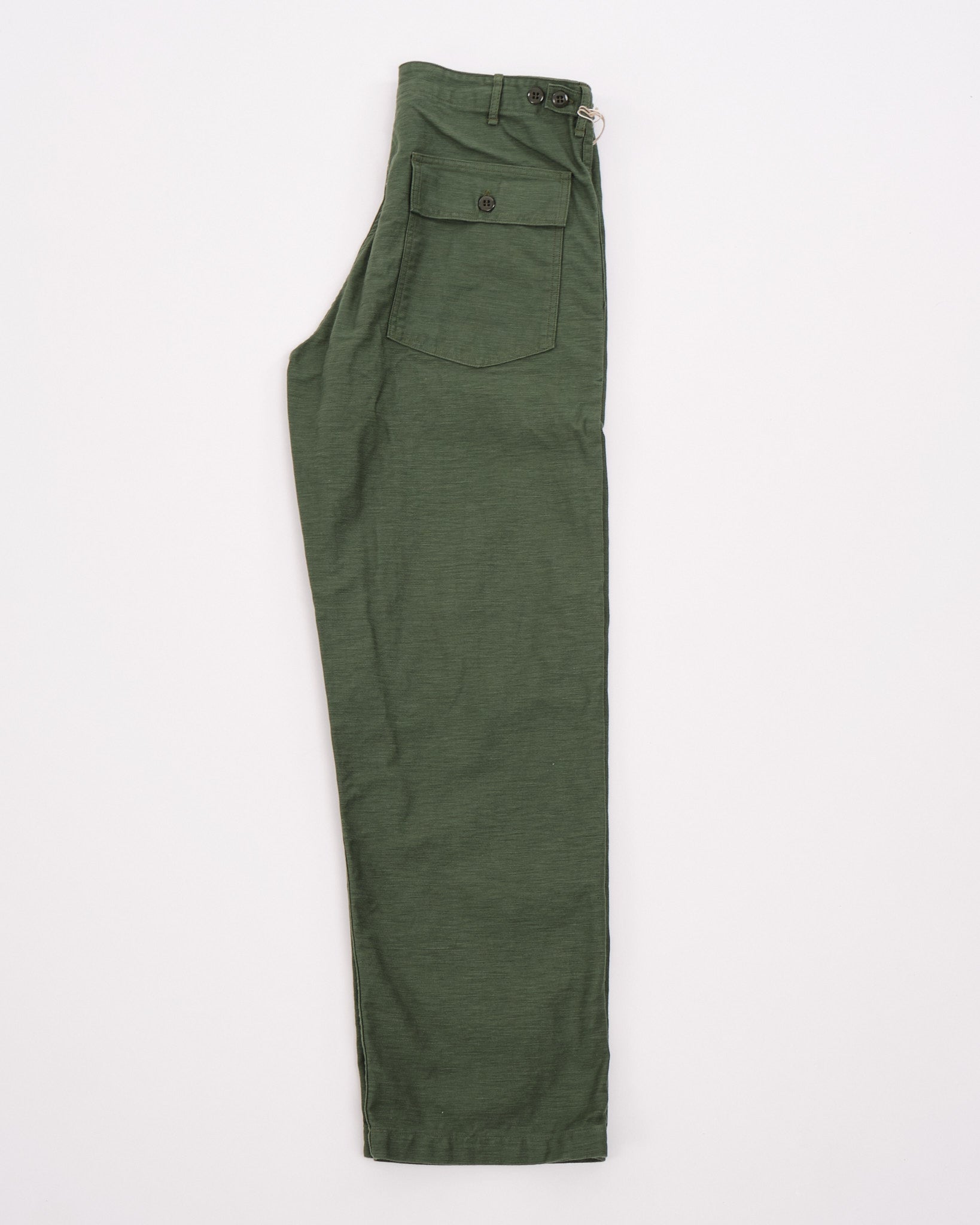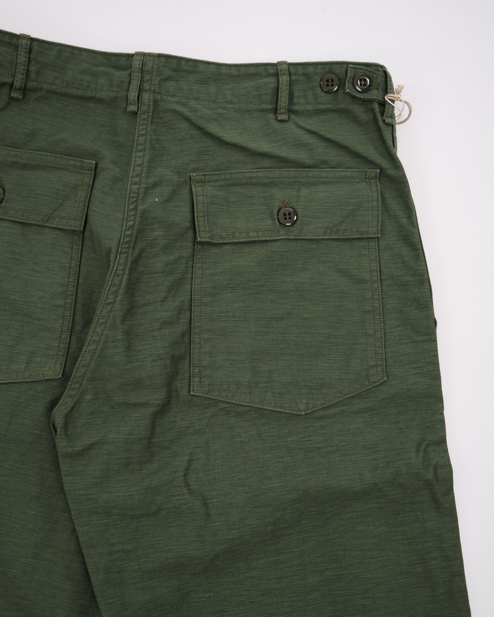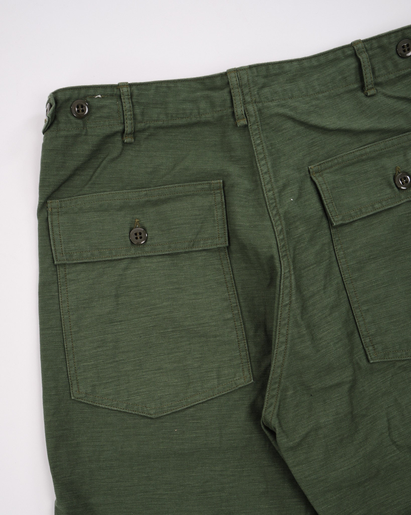 Presentiamo i senza tempo orSlow US ARMY FATIGUE PANTS REGULAR FIT VERDI, un must have nel mondo dell'abbigliamento di alta qualità noti per il loro fascino e comfort ineguagliabile. Creati utilizzando un Tessuto Reverse Sateen, questi pantaloni offrono un tocco morbido e liscio grazie alla loro distinta texture slub che è affascinante da vicino. Nonostante siano classificati come pesanti, sono eccezionalmente delicati sulla pelle rendendoli perfetti per il lusso. Ogni dettaglio intricato, dalla cintura con tab laterale alle tasche patch frontali e le numerose chiusure a bottone, rende omaggio al design originale dell'US Army che ha servito da ispirazione. Questi pantaloni con vestibilità a gamba dritta non sono solo un capo di abbigliamento; incarnano la storia. Sono stati meticolosamente prelavati e adornati con bottoni d'epoca ed etichette tessute personalizzate per garantire autenticità e comfort. Realizzati con cura a Osaka, Giappone questi pantaloni da fatica promettono di diventare un capo stabile nel vostro guardaroba. Se riuscite a mettere le mani su di loro mentre sono ancora, disponibili in magazzino.