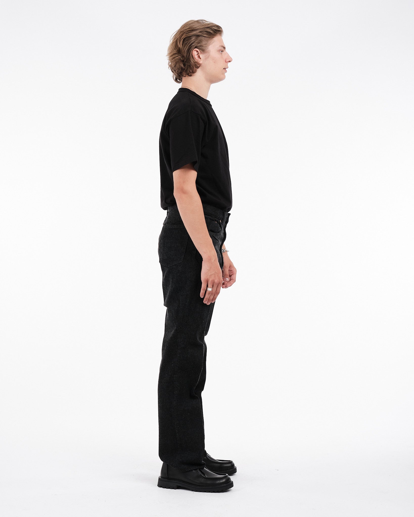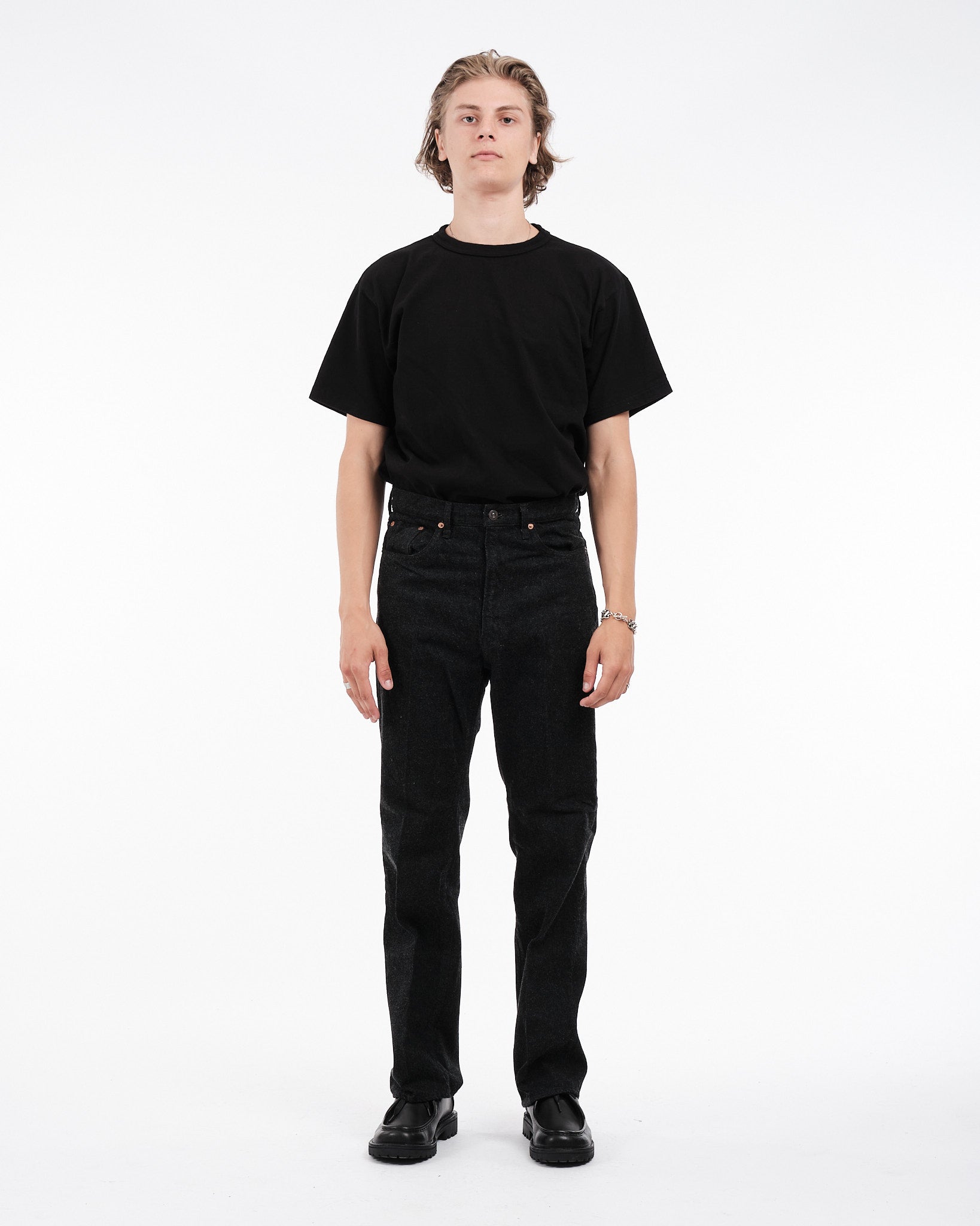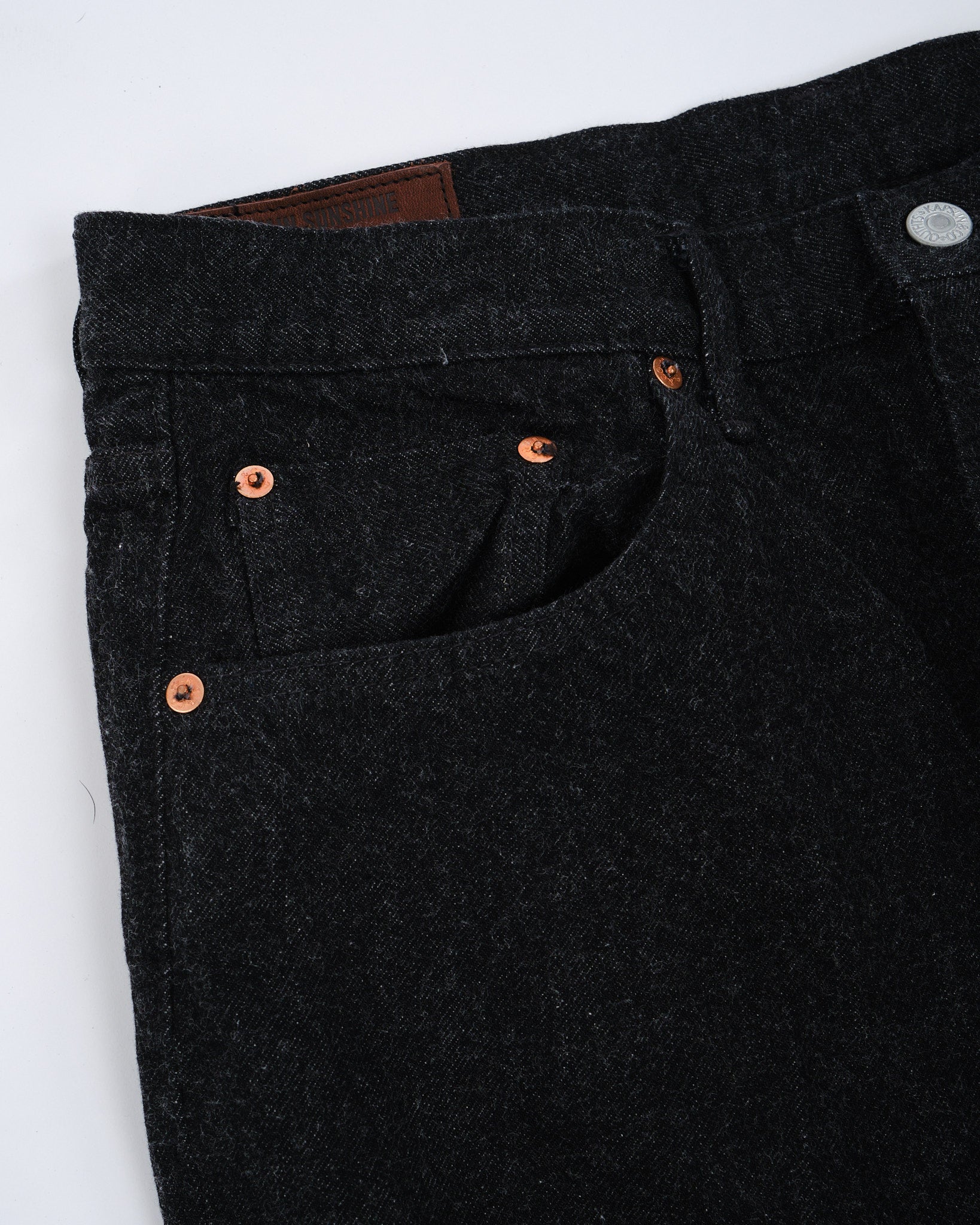 Presentazione dell'aggiunta alla collezione di Kaptain Sunshine, i pantaloni in denim Skate Shoecut nel sorprendente BLACK ONE WASH (codice di stile; KSBS105DZ). Questi pantaloni incarnano perfettamente la filosofia del marchio di fondere design senza tempo con artigianalità. Realizzati in cotone sanforizzato di qualità premium come i loro omologhi in indaco, questi pantaloni in denim nero offrono sia stile che praticità. Ottenere l'effetto BLACK ONE WASH implica un processo di miscelazione che conferisce al denim giapponese di alta qualità un aspetto testurizzato e tridimensionale. Il tessuto è tessuto su telai utilizzando una bassa tensione, risultando in una profondità distintiva che distingue questi jeans. Ispirandosi ai Levis 517, questi pantaloni sono stati reimmaginati in una silhouette shoecut sottile, rendendoli un'aggiunta incredibilmente versatile a qualsiasi guardaroba.