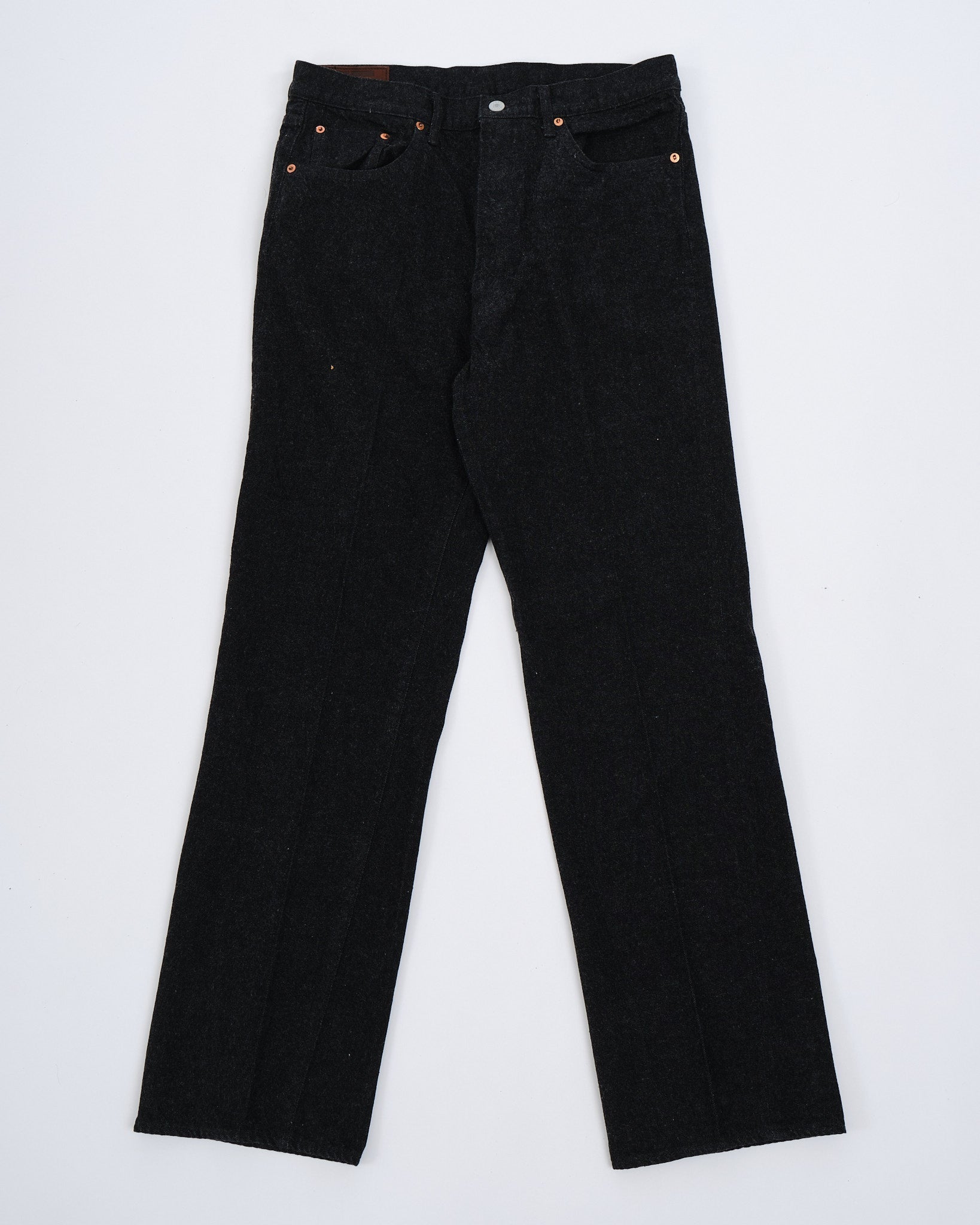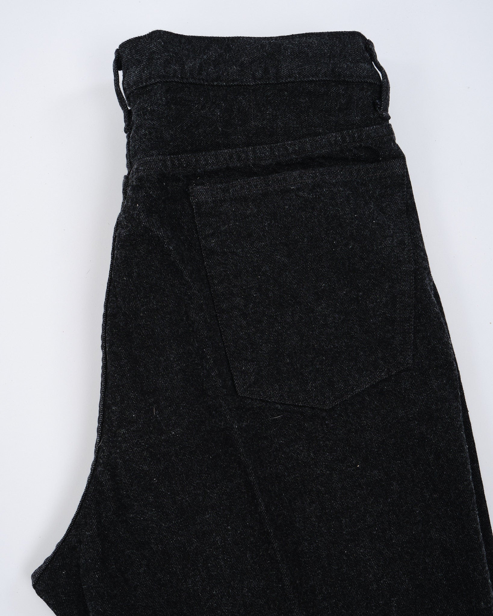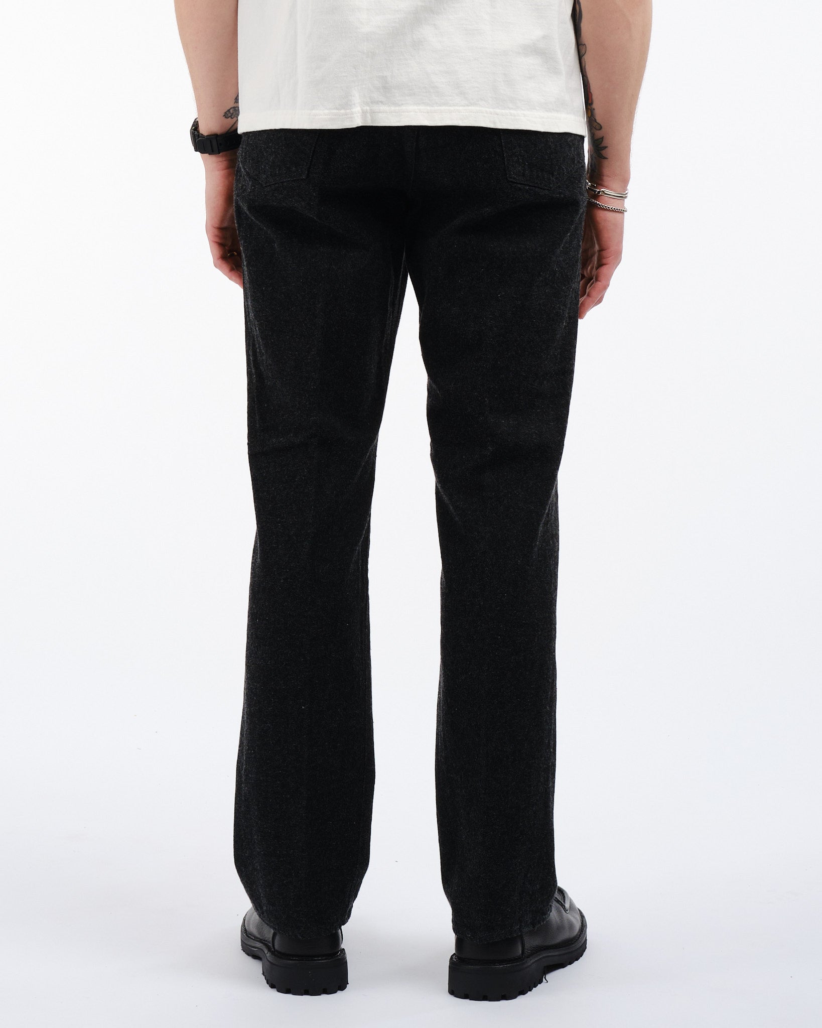 Presentazione dell'aggiunta alla collezione di Kaptain Sunshine, i pantaloni in denim Skate Shoecut nel sorprendente BLACK ONE WASH (codice di stile; KSBS105DZ). Questi pantaloni incarnano perfettamente la filosofia del marchio di fondere design senza tempo con artigianalità. Realizzati in cotone sanforizzato di qualità premium come i loro omologhi in indaco, questi pantaloni in denim nero offrono sia stile che praticità. Ottenere l'effetto BLACK ONE WASH implica un processo di miscelazione che conferisce al denim giapponese di alta qualità un aspetto testurizzato e tridimensionale. Il tessuto è tessuto su telai utilizzando una bassa tensione, risultando in una profondità distintiva che distingue questi jeans. Ispirandosi ai Levis 517, questi pantaloni sono stati reimmaginati in una silhouette shoecut sottile, rendendoli un'aggiunta incredibilmente versatile a qualsiasi guardaroba.