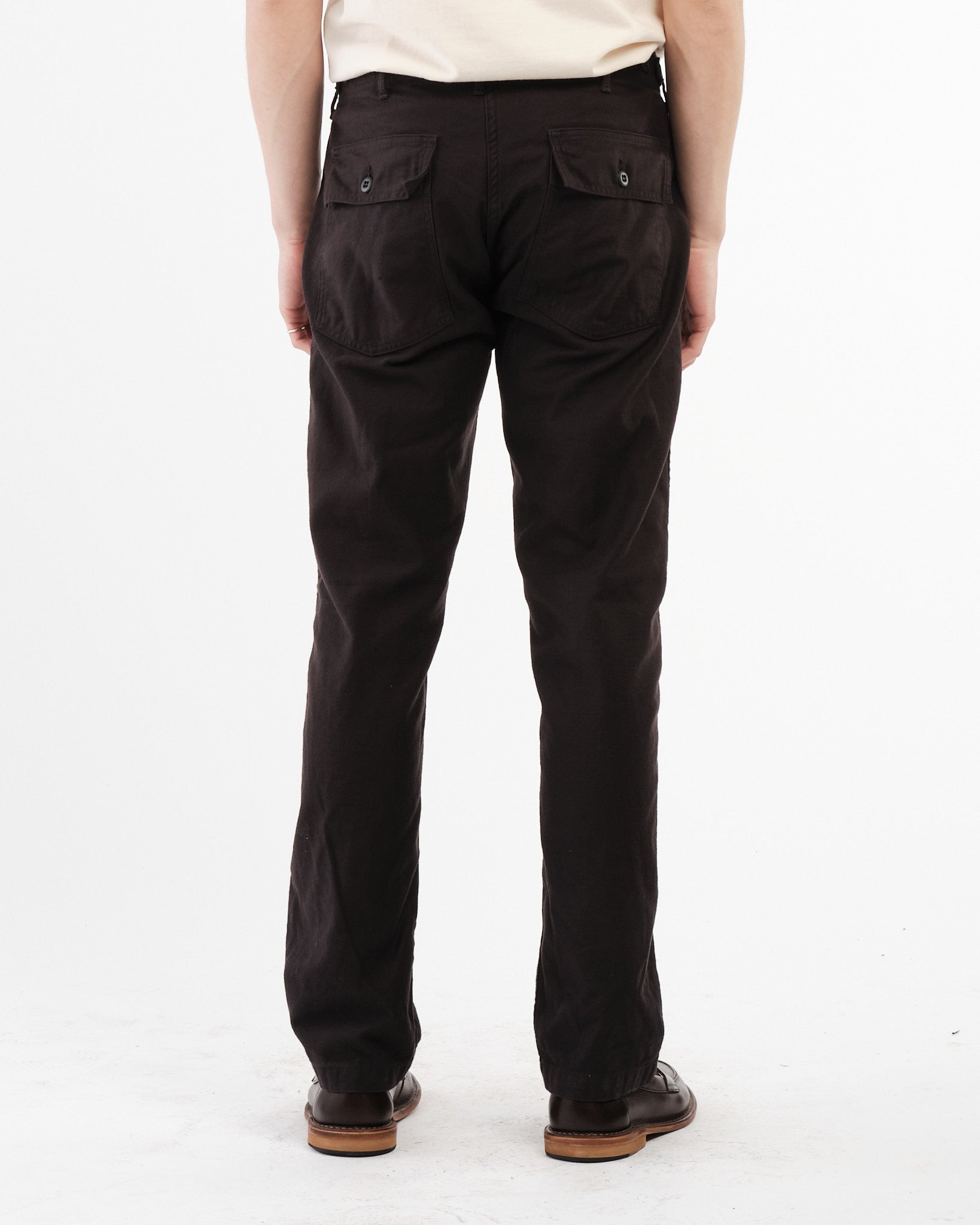 I pantaloni da stanchezza orSlow Slim Fit in Nero (Codice Stile 01-5032-61) introducono una novità nella moda militare senza tempo e sono realizzati con cura in Giappone utilizzando un robusto tessuto sateen invertito per benefici sia in termini di texture che di durabilità. La vestibilità slim offre un aspetto aggiornato che rimane comodo da indossare. Questi pantaloni mantengono elementi classici dei pantaloni da stanchezza con dettagli come due ampie tasche laterali applicate e tasche posteriori con pattina. Col passare del tempo, il tessuto perde naturalmente il suo colore. Sviluppa un fascino distintivo e una patina individuale su ogni paio di pantaloni. Questi pantaloni da stanchezza mostrano l'impegno di orSlow per la qualità superiore e lo stile classico.