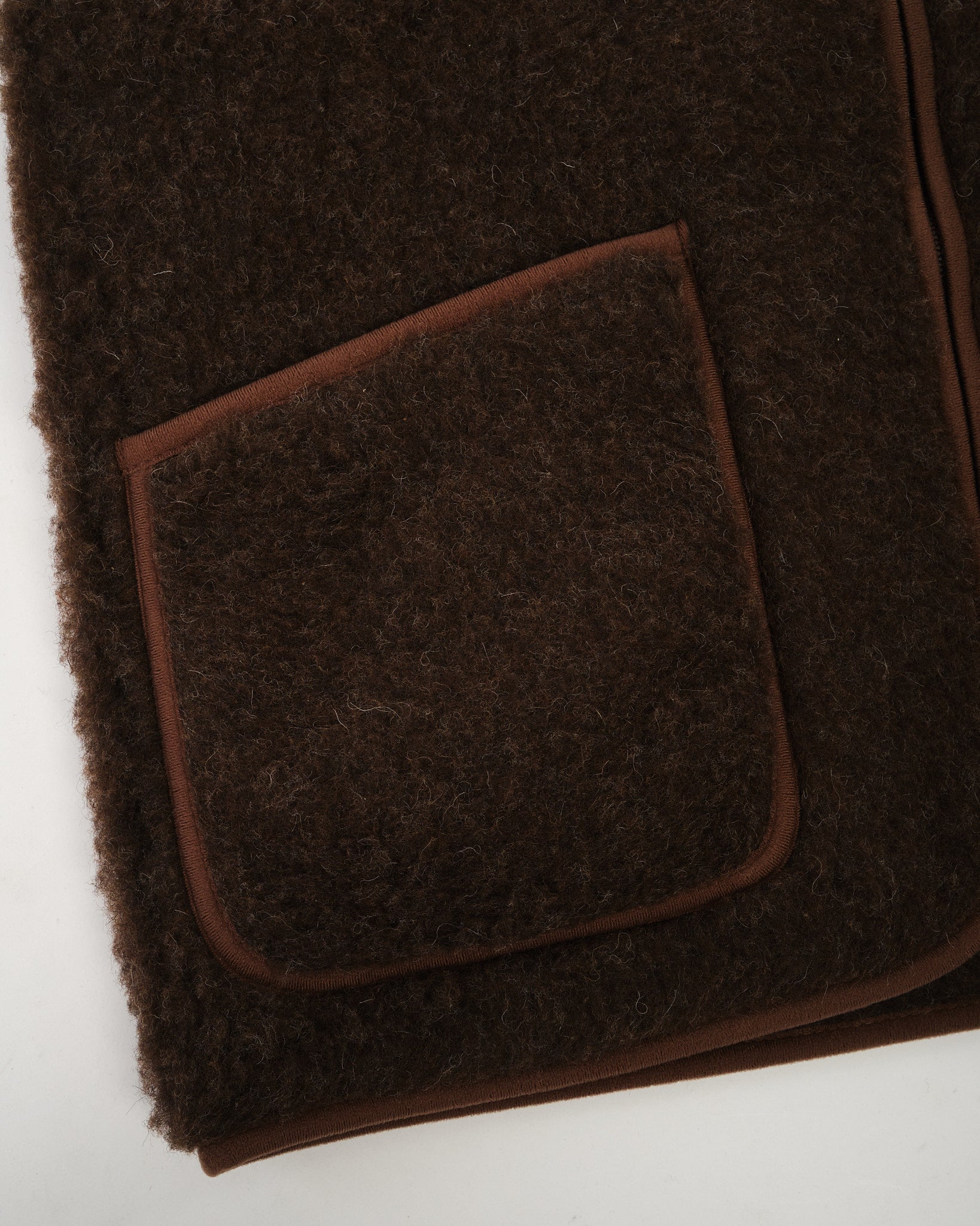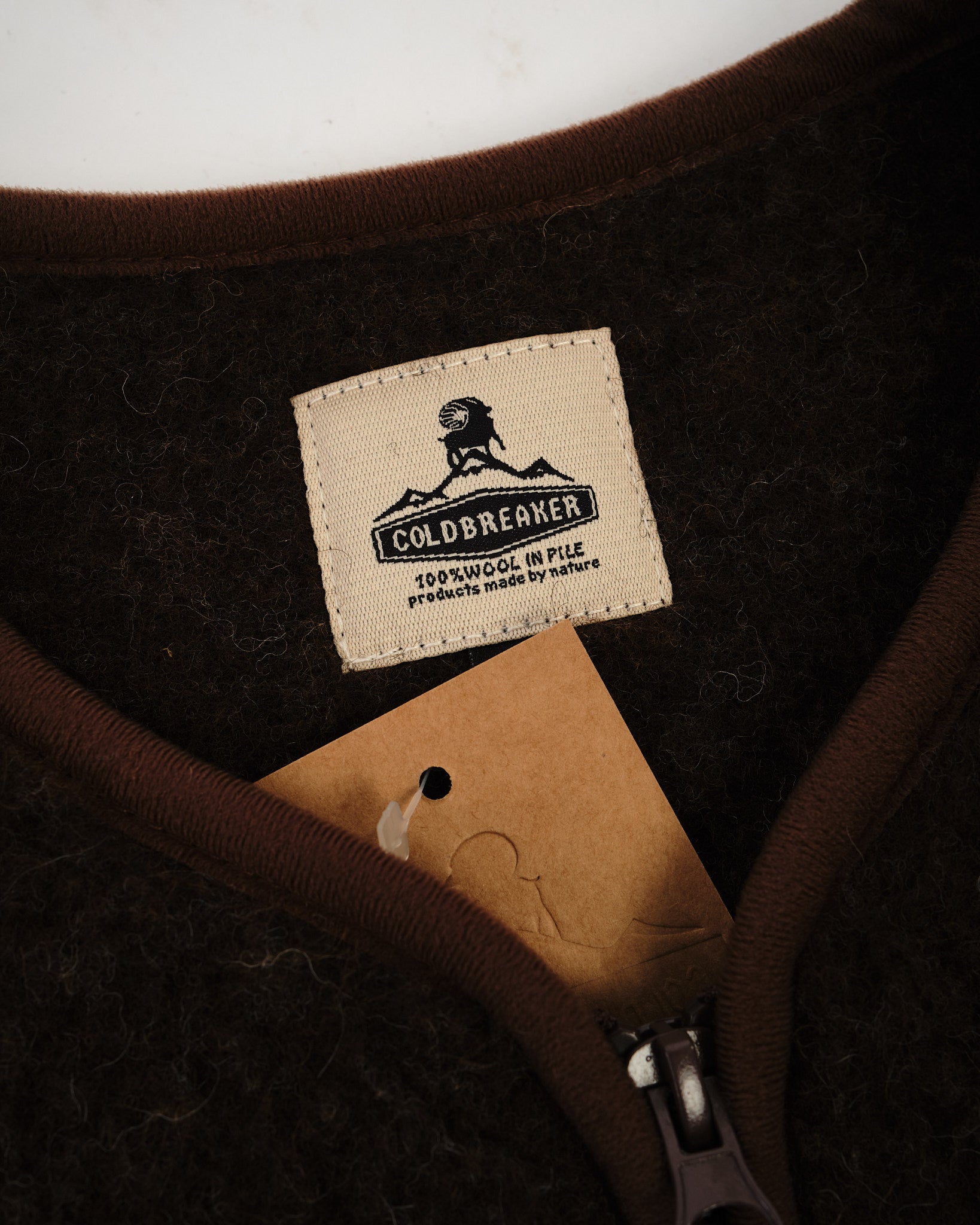 Il Gilet di Lana Pepitko in Marrone Scuro di Coldbreaker è uno strato senza fronzoli costruito per il calore e la praticità. Realizzato in Polonia da un denso pile di lana, offre un'isolamento naturale senza ingombro, perfetto per il meteo di transizione o lo strato invernale. La silhouette pulita, la chiusura frontale con zip e il collo alto offrono utilità quotidiana, mentre il tono marrone scuro apporta una versatilità sobria. Indossato sopra a una flanella o sotto a un cappotto, questo gilet è progettato per mantenere il nucleo caldo e il tuo stile ancorato alla funzionalità.