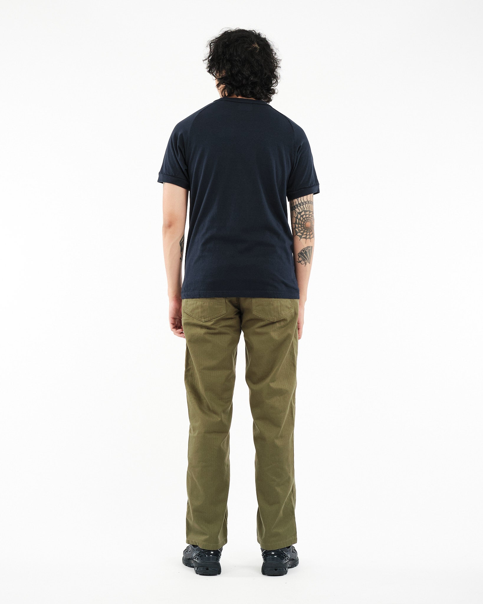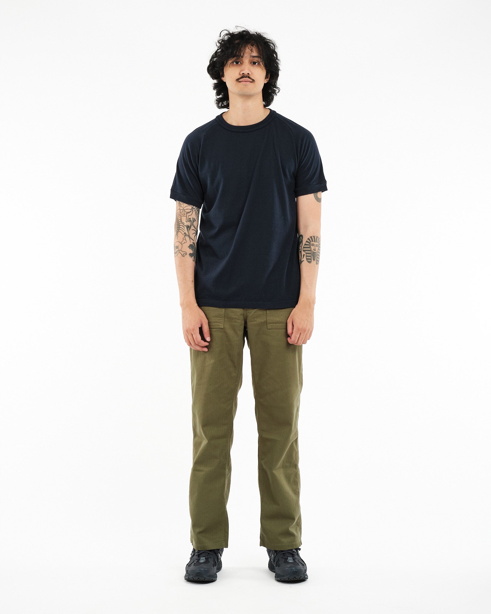 Pua'ena SS T-Shirt Dark Navy di Sunray Sportswear. Le T-shirt Sunray hanno una vestibilità tradizionale ispirata alla sensazione degli anni '50. Rilassate e leggermente più lunghe di una vestibilità moderna. Anche il colletto, il design a costine e i tessuti sono tradizionali. 260 g. Made in Japan.