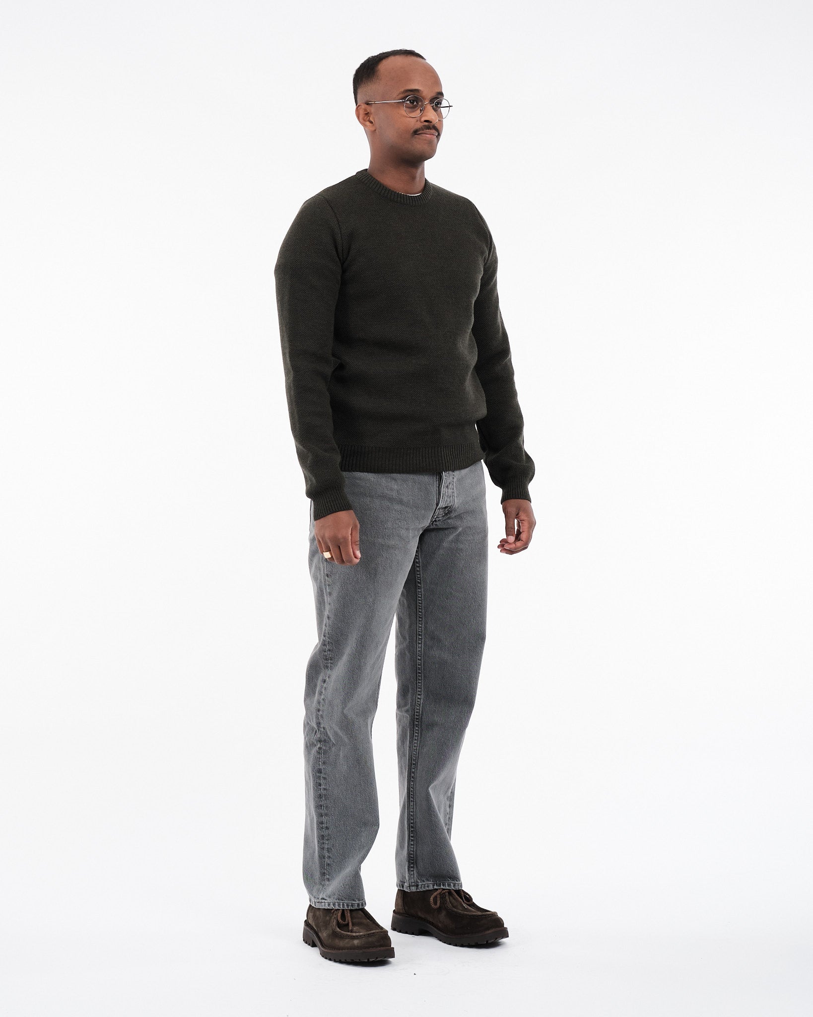 Il maglione Youri Khaki di Nitto Knitwear esemplifica l'artigianalità e l'eleganza classica francese, splendidamente realizzato in Francia utilizzando 100% lana merino extra fine per durabilità e comfort garantiti dal suo design a maglia piqué meticolosamente lavorato che mantiene caldo ma traspirante, per un'usabilità in tutte le stagioni con la sua tonalità di khaki versatile che si abbina senza sforzo sia al denim casual che agli ensemble stratificati sofisticati.