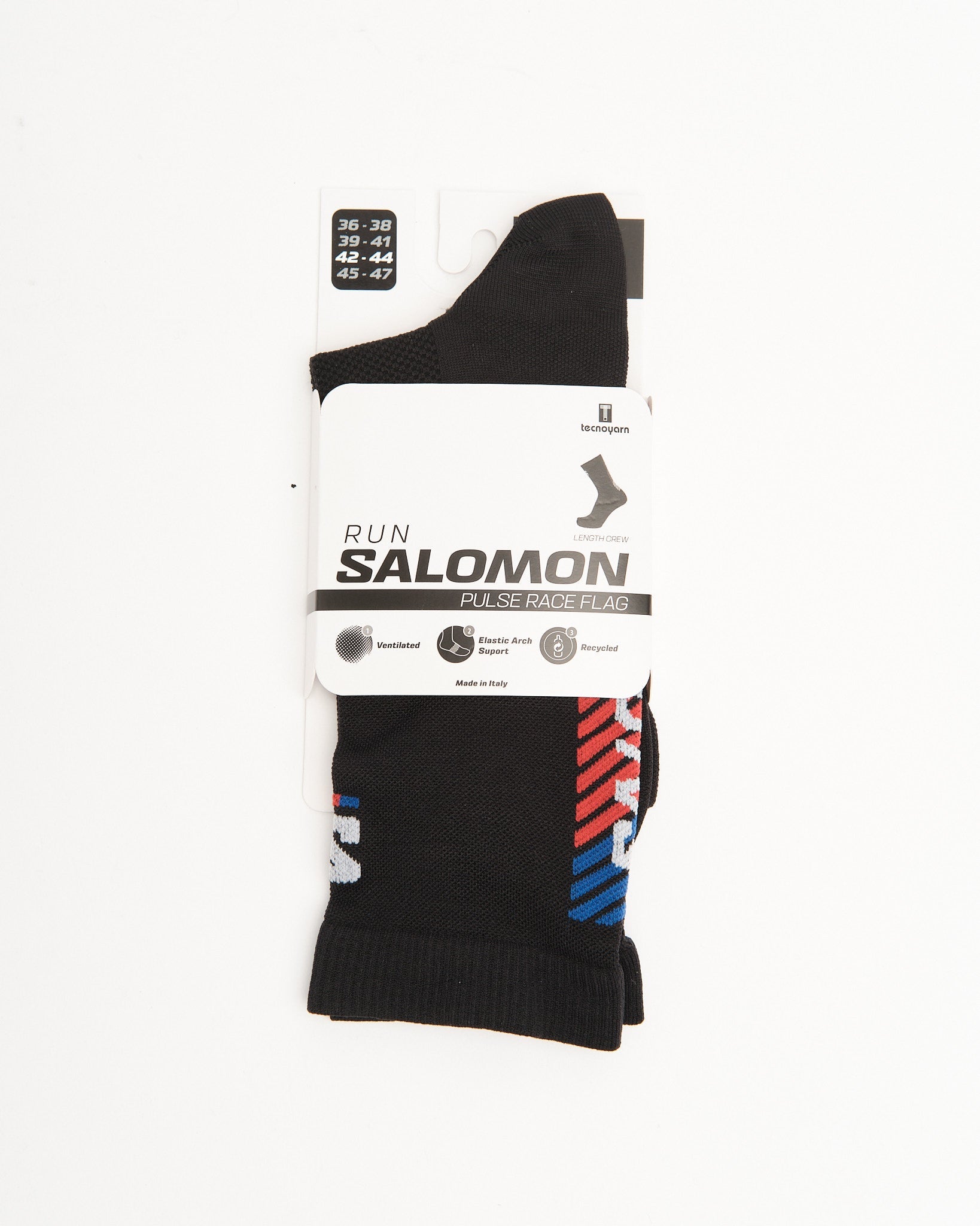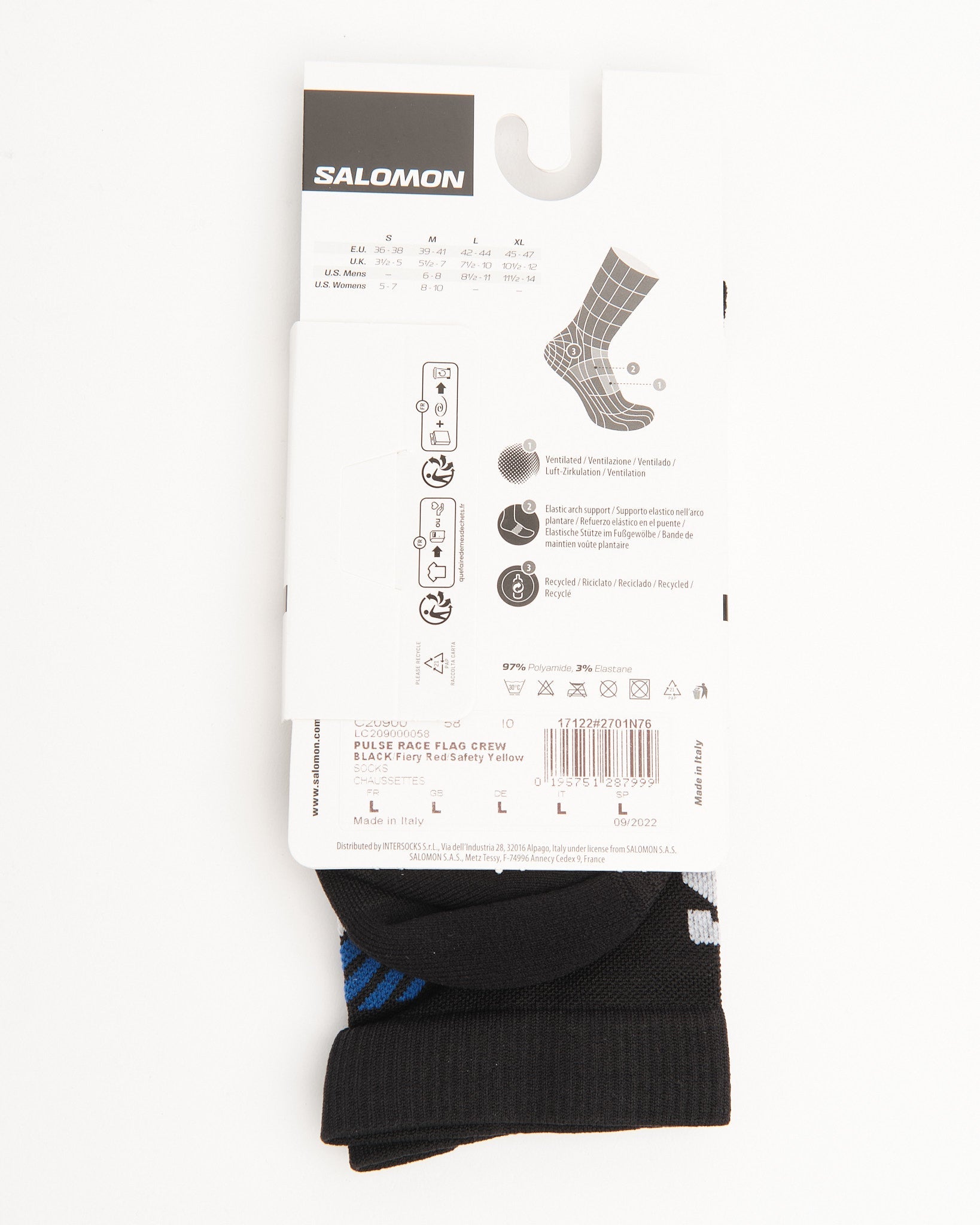 Calza da Corsa Pulse Race Flag Nero/Rosso Fuoco/Giallo Sicurezza di Salomon.