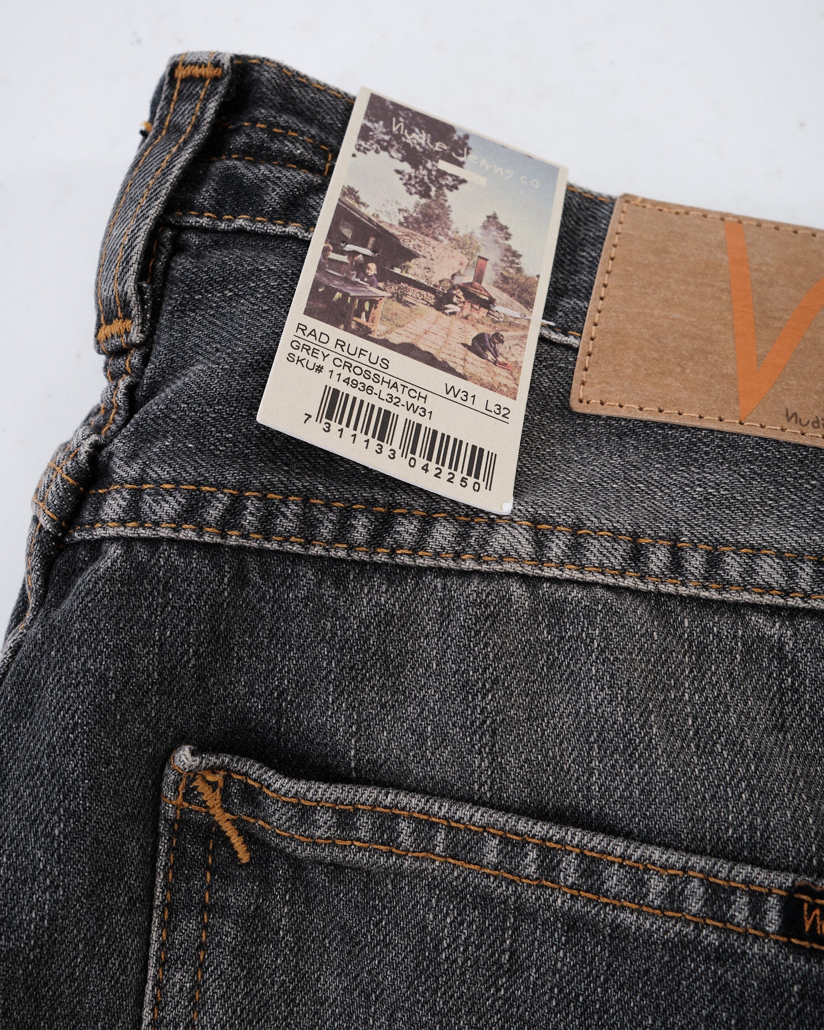 Entra nello stile audace del denim con NUDIE JEANS CO. RAD RUFUS GREY CROSSHATCH. Questi jeans a vita alta, regular-fit con gamba dritta presentano un sorprendente lavaggio grigio con forti contrasti. Realizzati in denim nero, il tessuto mostra una robusta texture a incrocio, creando altezze e profondità ricche con un aspetto dinamico e slavato.