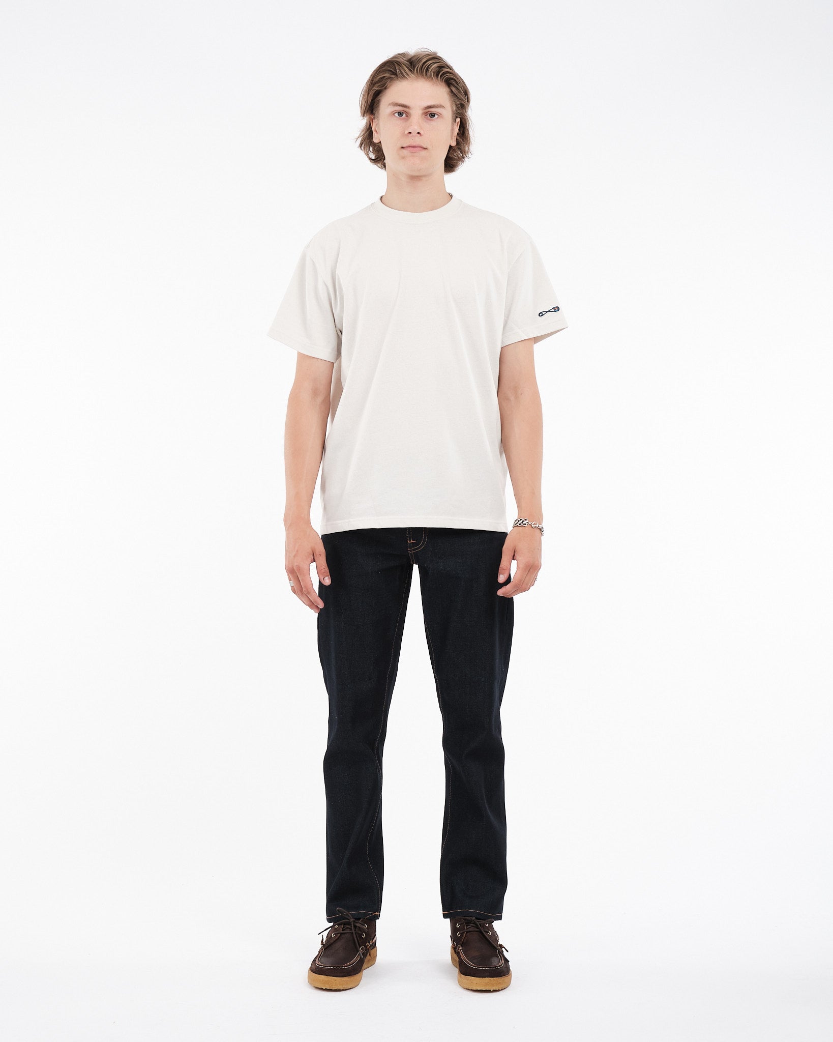 Abbraccia la sostenibilità con la maglietta Rebirth di NUDIE JEANS in Offwhite. Questa maglietta con collo a girocollo è realizzata con materiali 100% che mescolano cotone inutilizzato e poliestere riciclato. Il risultato è un tessuto jersey elegante con un aspetto testurizzato distintivo. Decorata con una toppa ricamata a forma di spilla da balia sulla manica e un'etichetta unica per la rinascita, questa maglietta dalla vestibilità ampia promuove uno stile consapevole dell'ambiente. Invece di scartare i tuoi vecchi vestiti, dà loro una nuova vita per aiutare a creare un domani più verde. Progettata in PT, questa maglietta offre sia appeal moda che etico.
