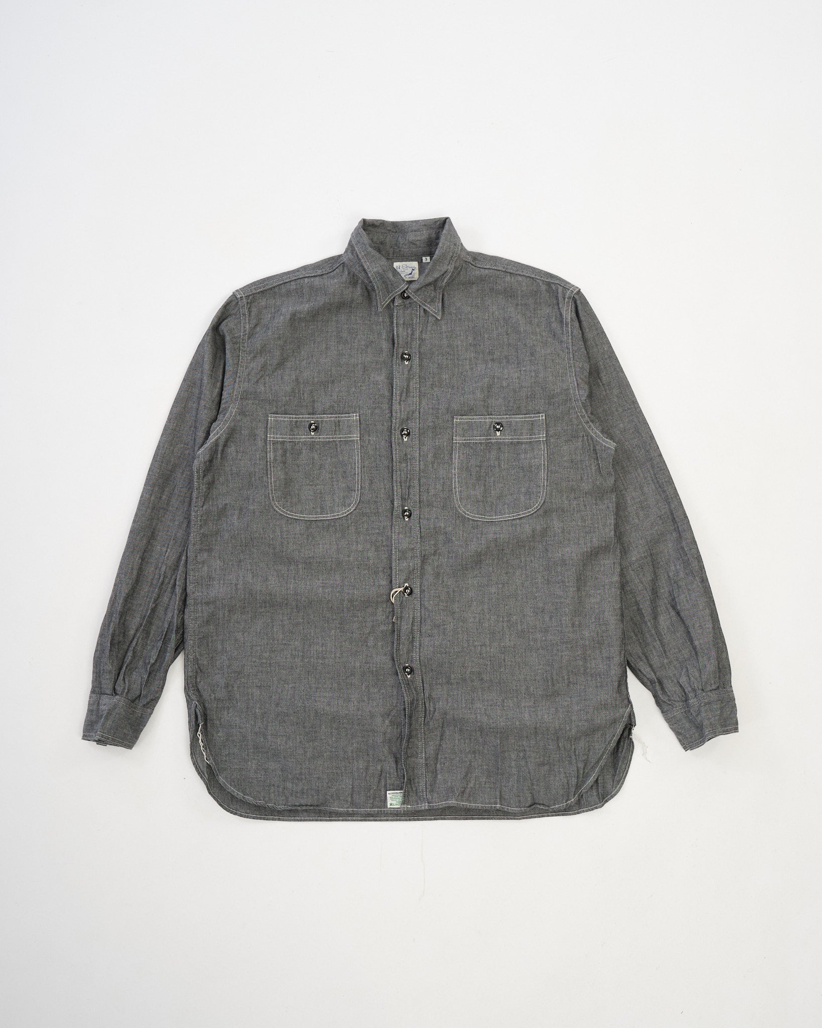 La Camicia da Lavoro Chambray Relax Fit di orSlow in Nero apporta un bordo audace e utilitario a un classico dell'abbigliamento da lavoro. Tessuta in Giappone da cotone chambray tinto con corda, offre una texture sottile e una tonalità di nero profondo che si ammorbidisce nel tempo.