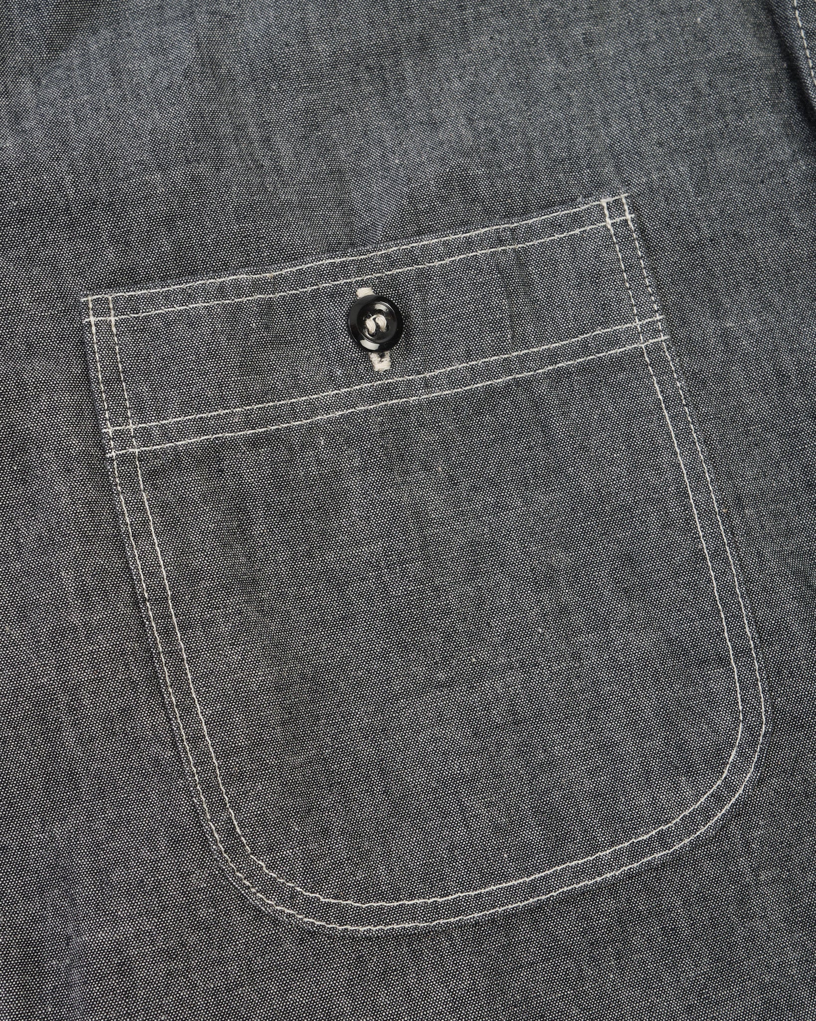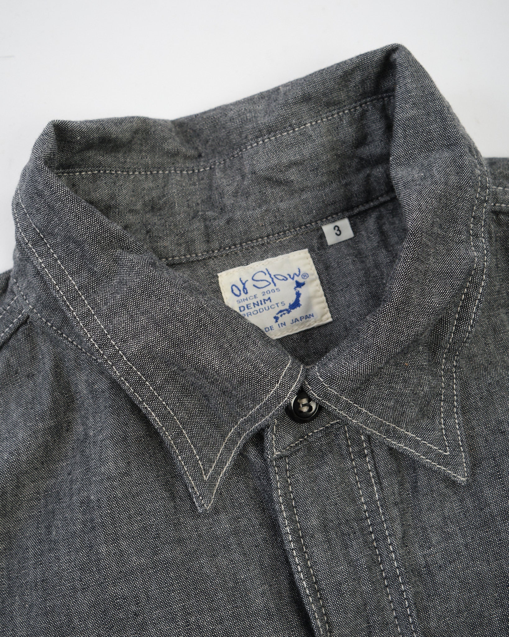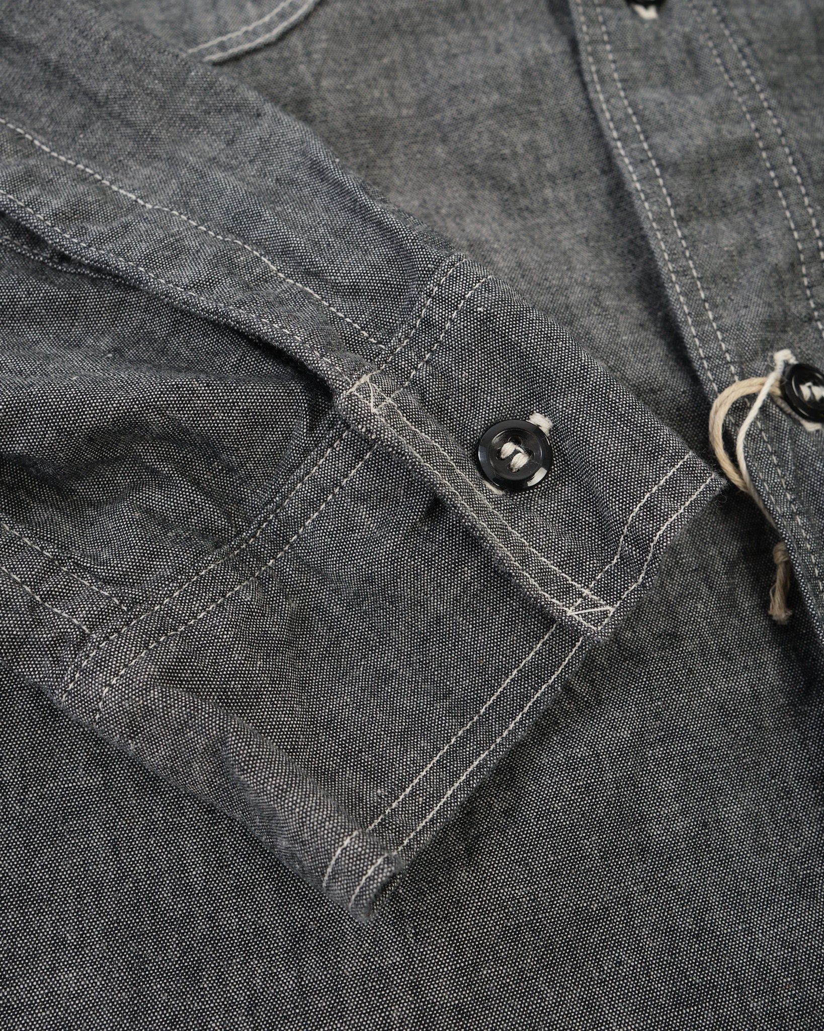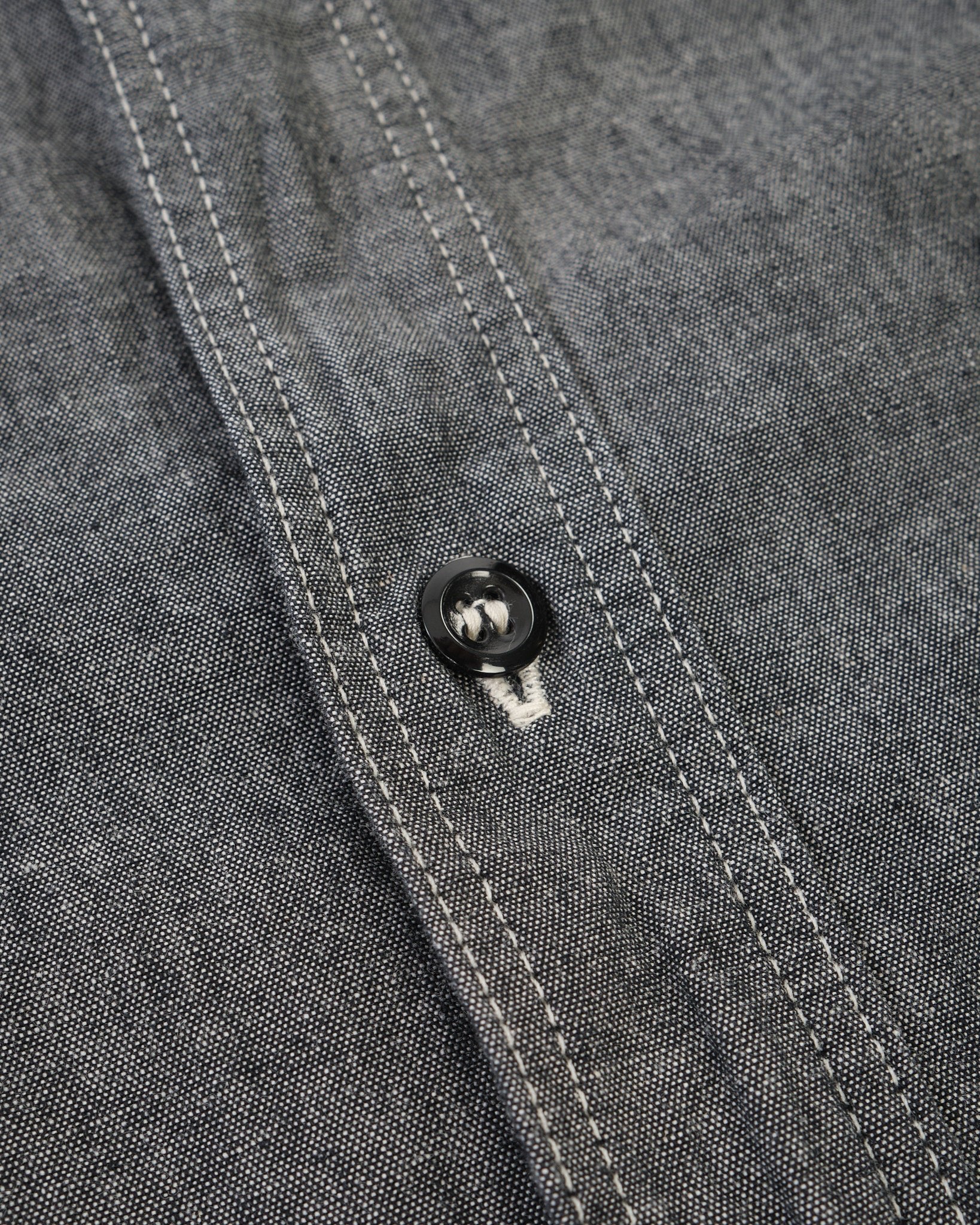 La vestibilità rilassata offre spazio attraverso le spalle e il petto, mentre i dettagli tradizionali—come tasche sul petto simmetriche, soffietti laterali, e un orlo rinforzato—radicano il design nelle ispirazioni archivistiche di orSlow. È una camicia fatta per essere indossata intensamente, ammorbidita solo dall'esperienza.
