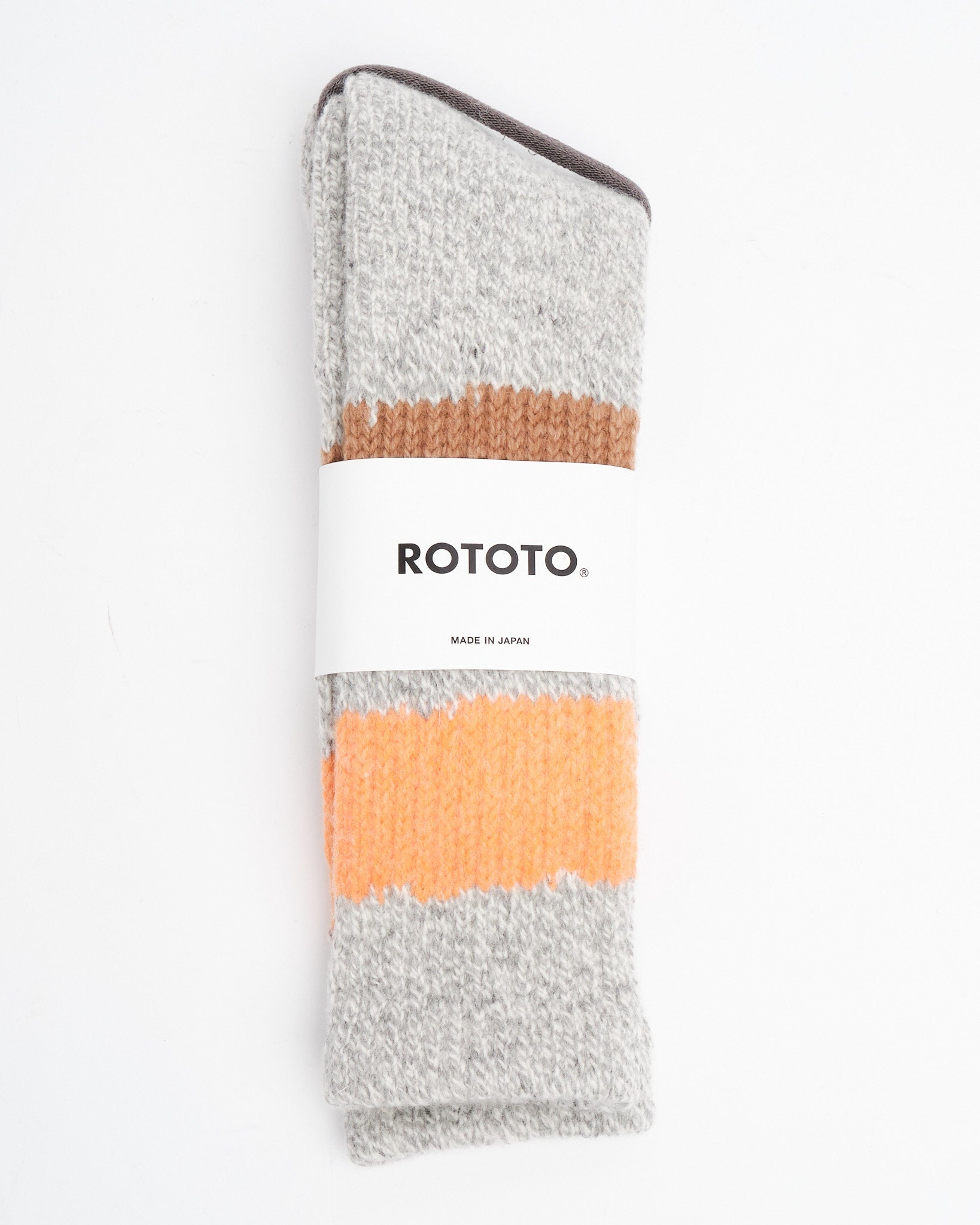 RoToTo unisce l'antica maestria e la sostenibilità con i loro calzini Retro Winter Outdoor, ispirati agli iconici stili invernali all'aperto. Perfettamente su misura per avventure sciistiche e di camminata in collina, promettono calore durante i periodi freddi. Realizzati in Giappone con un filato morbido di lana mista, questi calzini grigi e bianchi sono un omaggio all'estetica vintage. Il loro design a righe non solo aggiunge un fascino retrò ma ti invita ad abbracciare l'outdoor, indipendentemente dalla stagione. Con solo un pugno di artigiani rimasti che possono gestire la macchina da maglieria vintage usata nella loro costruzione, ogni paio è una testimonianza dell'autentica maestria.