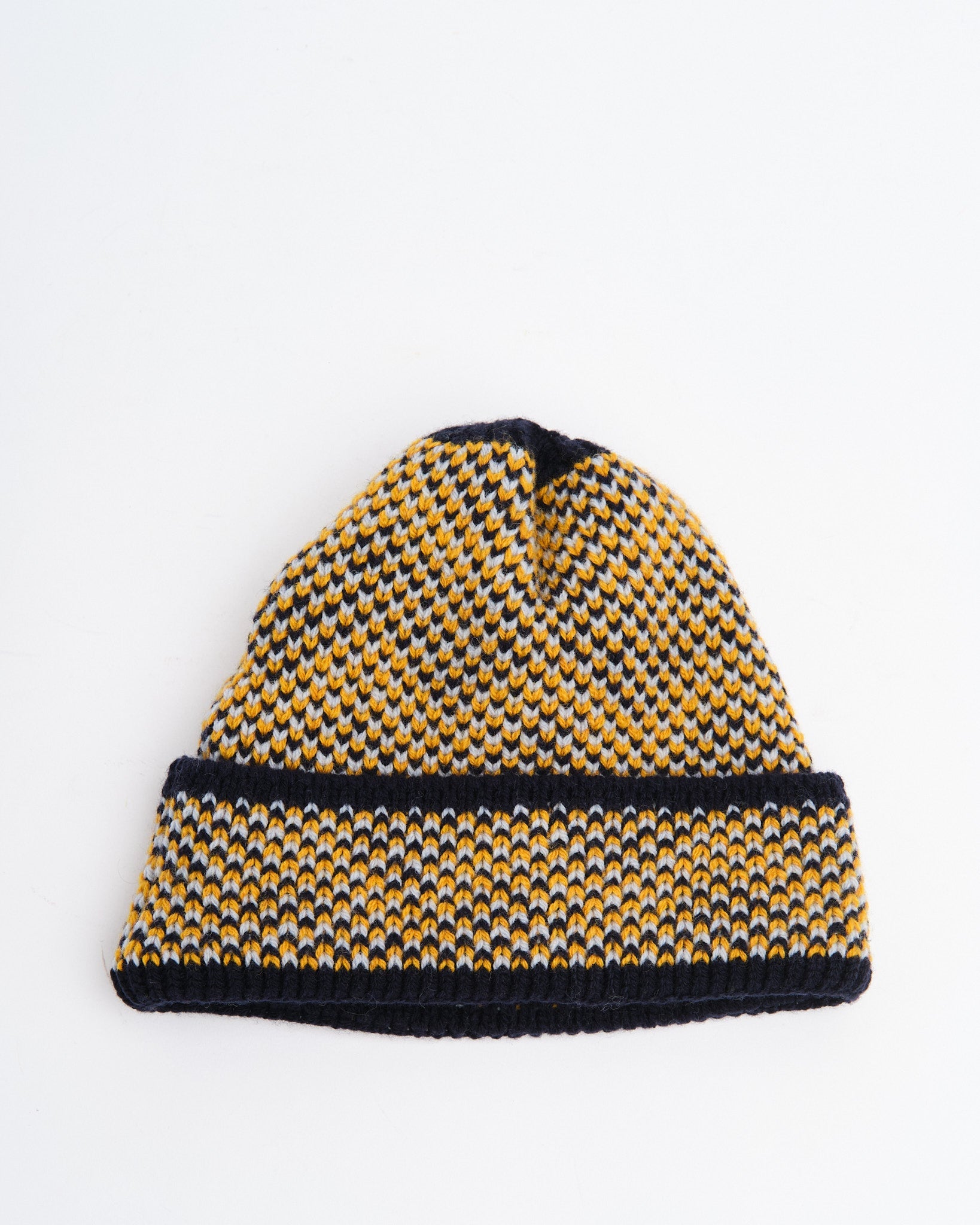 Il Beanie Reverse Geo in Navy di Found Feather unisce struttura grafica e texture elevata in un unico pacchetto compatto. Realizzato in Giappone con lana Donegal italiana lavabile, presenta un audace motivo a maglia jacquard invertito che aggiunge dimensione senza eccessivo ingombro. Un filo elastico morbido e una costruzione a pannello unico offrono una vestibilità liscia e sicura, mentre il bordo regolare di 7 cm gli conferisce un tocco classico. Rifinito con un'etichetta tessuta e un'etichetta per la cura codificata QR, questo beanie mescola design accattivante con comfort per il freddo.