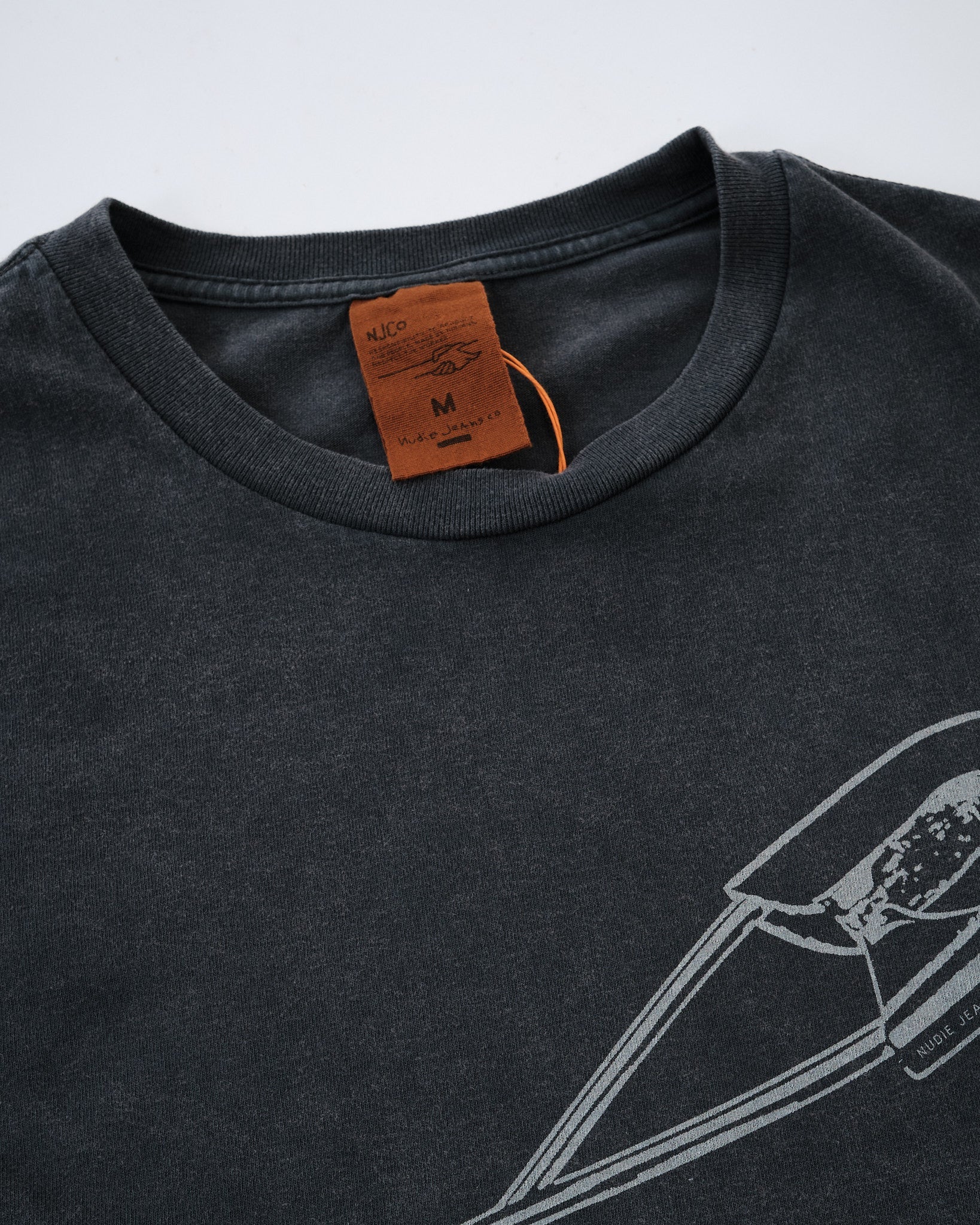 La sfumatura di antracite sbiadita è ottenuta attraverso tintura del capo e un lavaggio per sbiadire, risultando in un unico estetica vissuta che si abbina senza sforzo con il denim. Col tempo, il colore continua a sbiadire, aumentando ulteriormente il fascino vintage. Un dettaglio di stampa sul petto completa il look, rendendo questa maglietta un perfetto mix di stile casual e carattere senza tempo.
