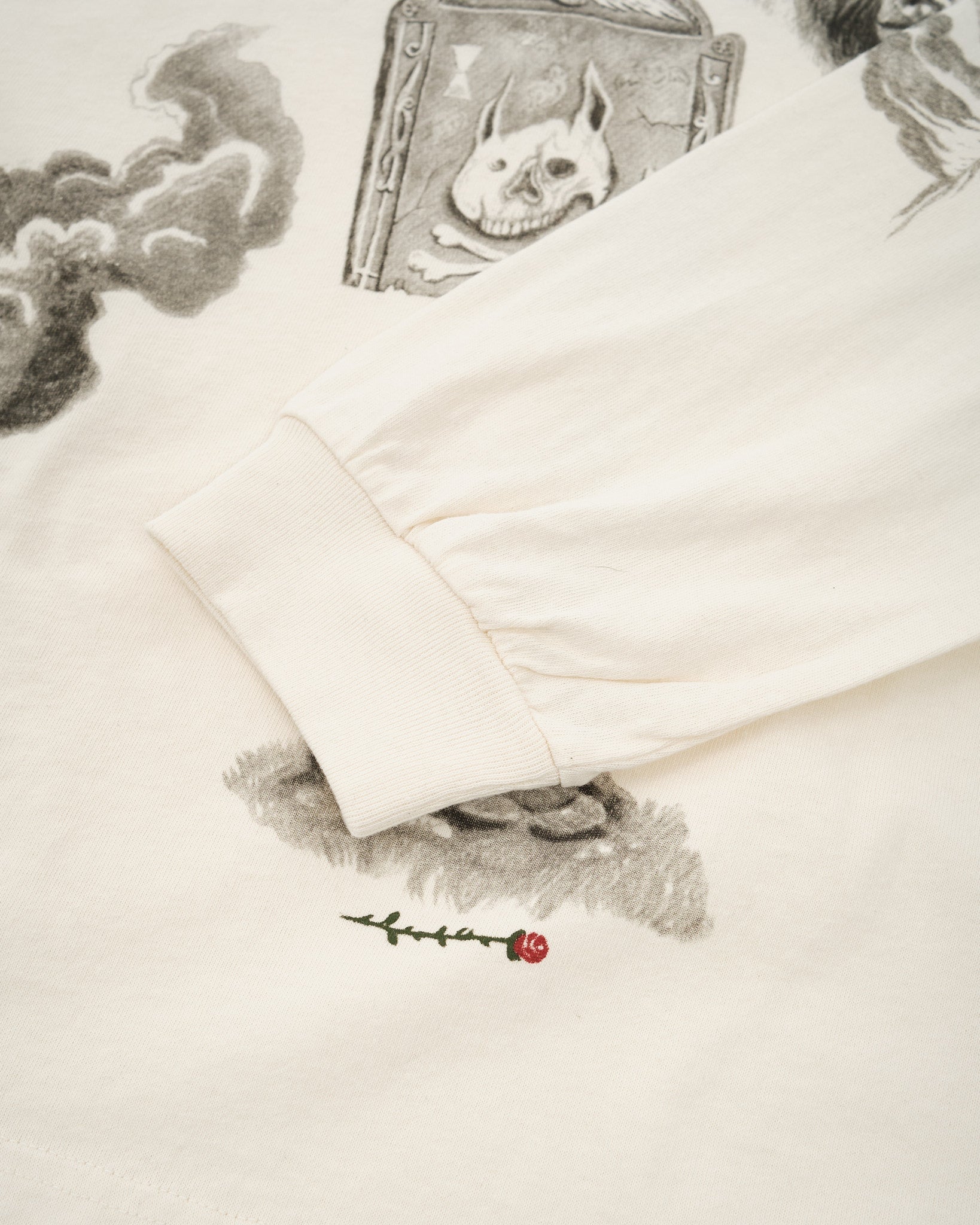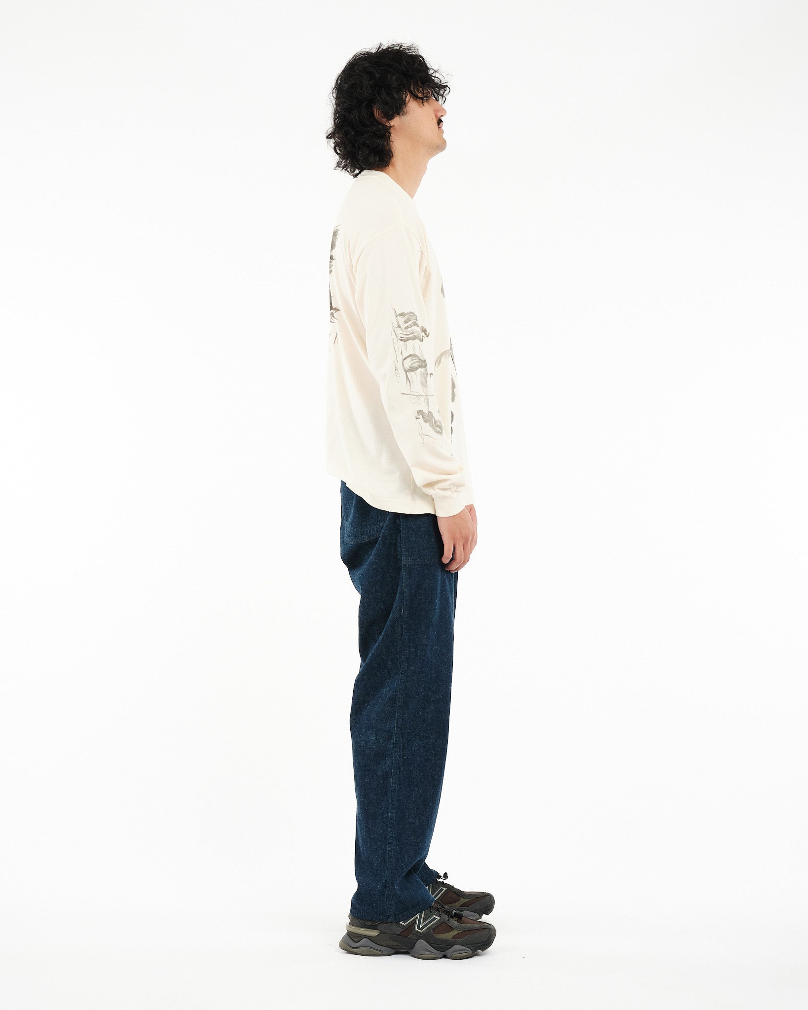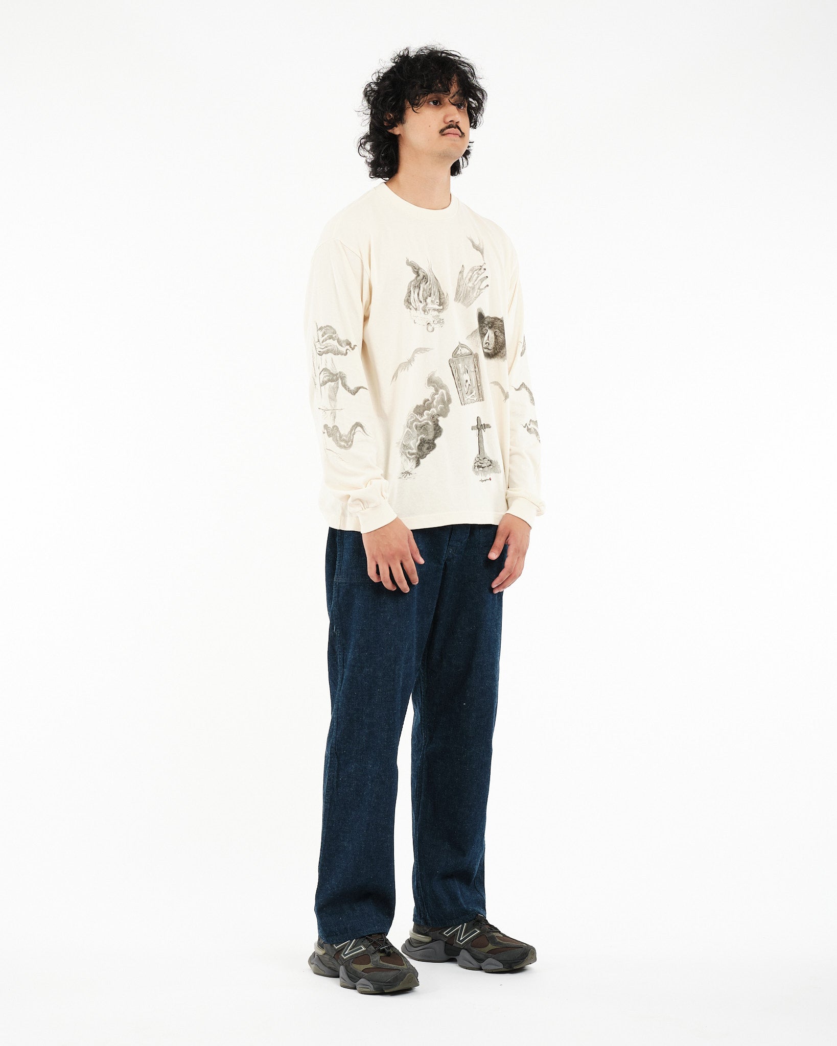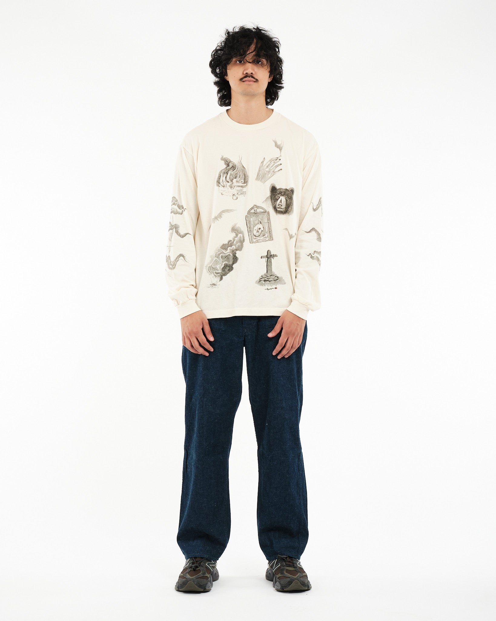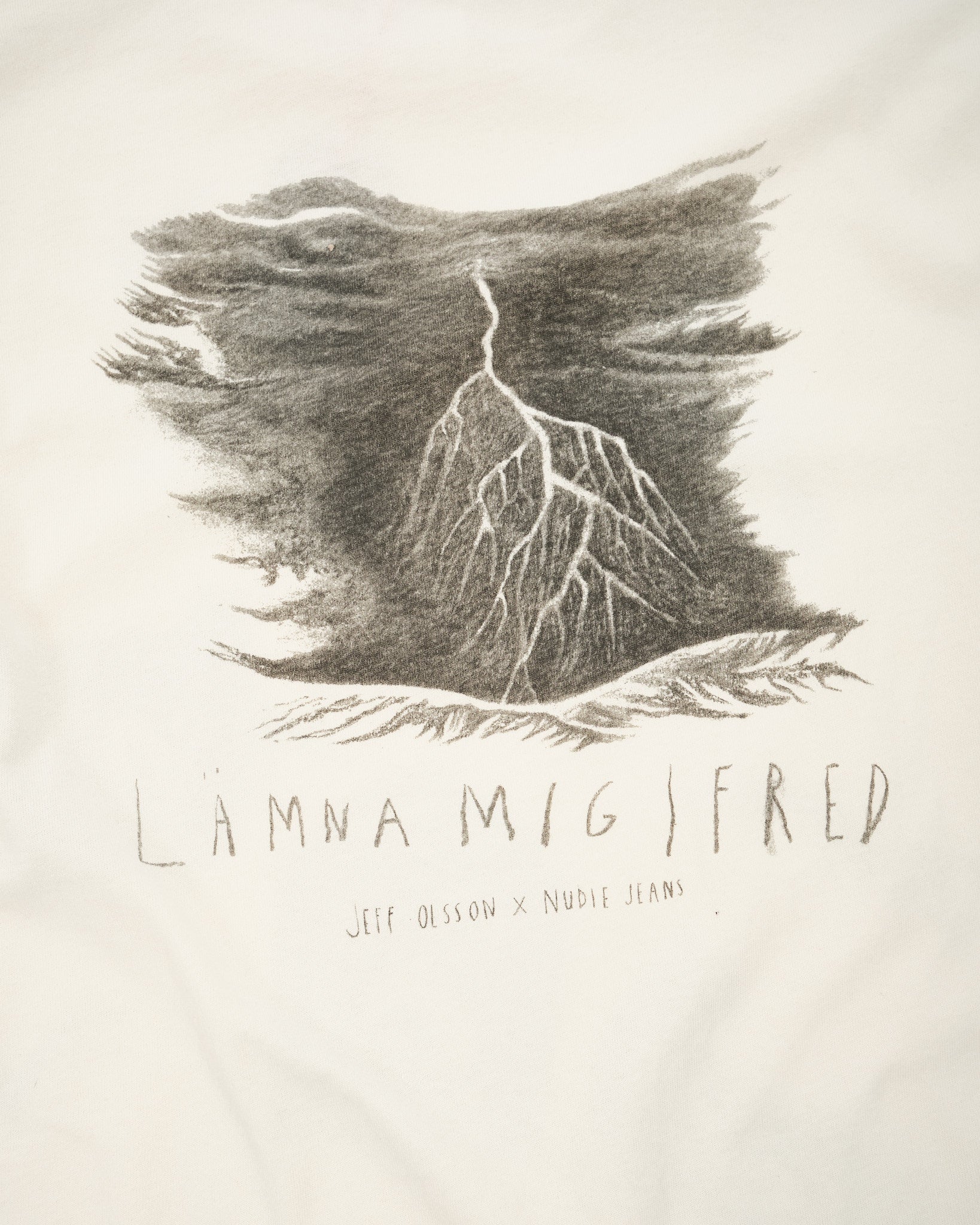 Apprezza la creatività della Nudie Jeans Co. Rudi Doodle Off White T Shirt che mette in mostra i design originali dell'artista Jeff Olsson di Göteborg. Realizzata in cotone biologico, questa maglietta a maniche lunghe con collo a girocollo presenta una collezione affascinante di scarabocchi a matita, ognuno un piccolo pezzo d'arte che riflette il tocco distintivo di Olsson di malinconia e profondità. La frase svedese "Lasciami solo" è elegantemente esposta sul retro, aggiungendo un tocco di stile al design. La texture della maglietta è arricchita dalla maglia e dalla leggera peluria del filato filato ad anello con cuciture superiori grigie a contrasto che ne evidenziano il fascino artistico.