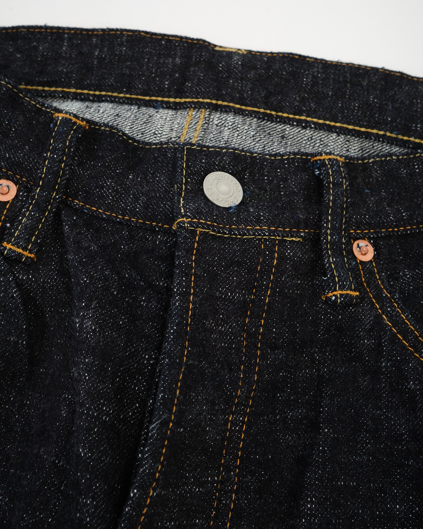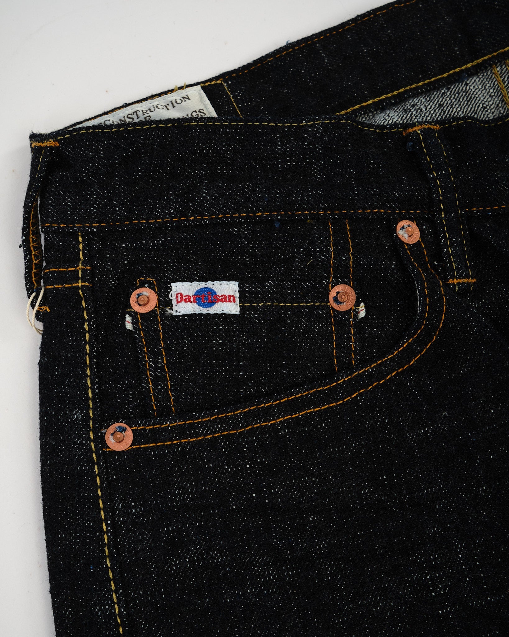 Il taglio dritto regolare offre una silhouette senza tempo, offrendo versatilità per vari stili. Con il suo colore indaco profondo, sviluppato attraverso la tradizionale tintura a corda, questi jeans invecchiano magnificamente, rivelando sfumature uniche nel tempo.
