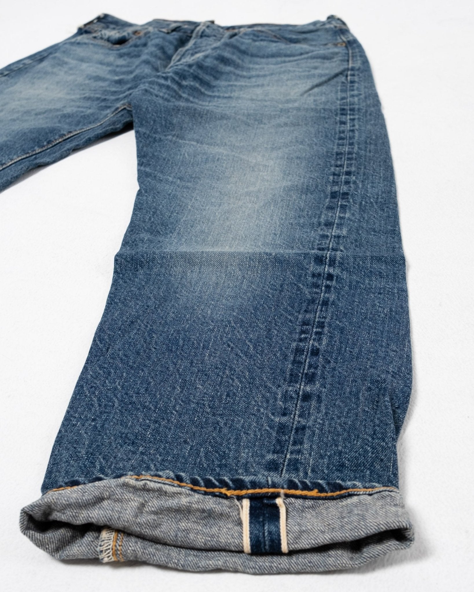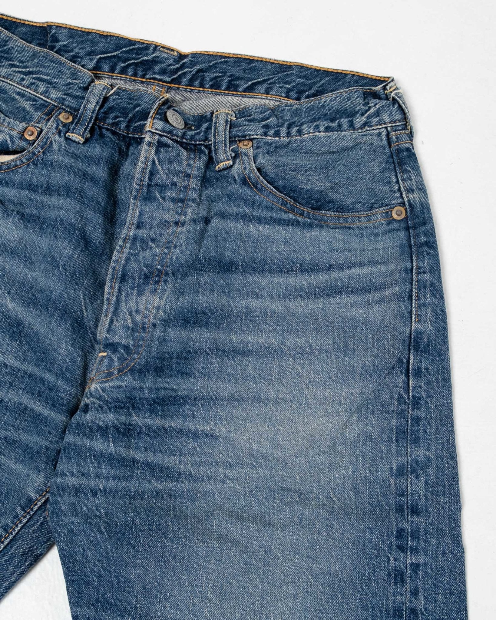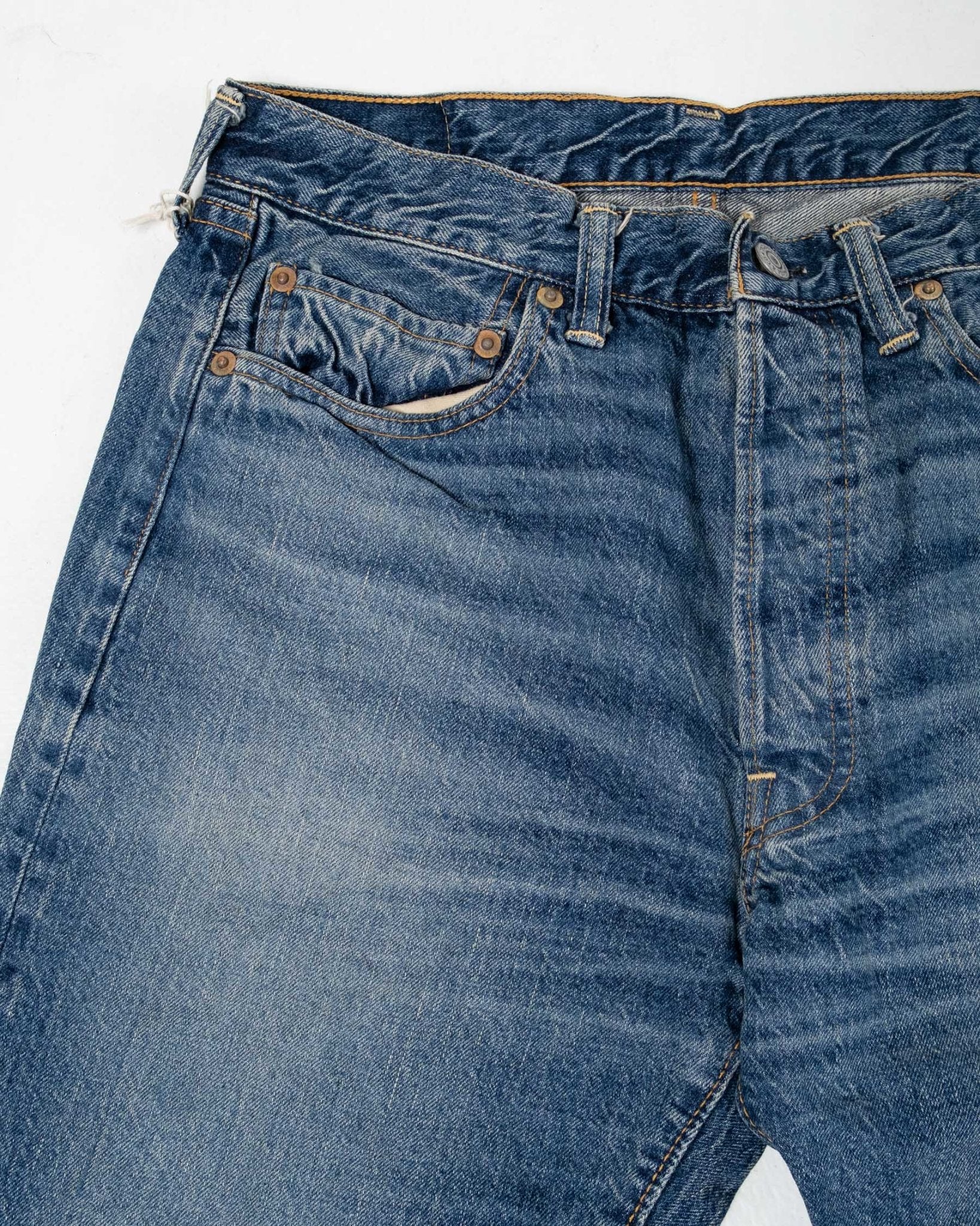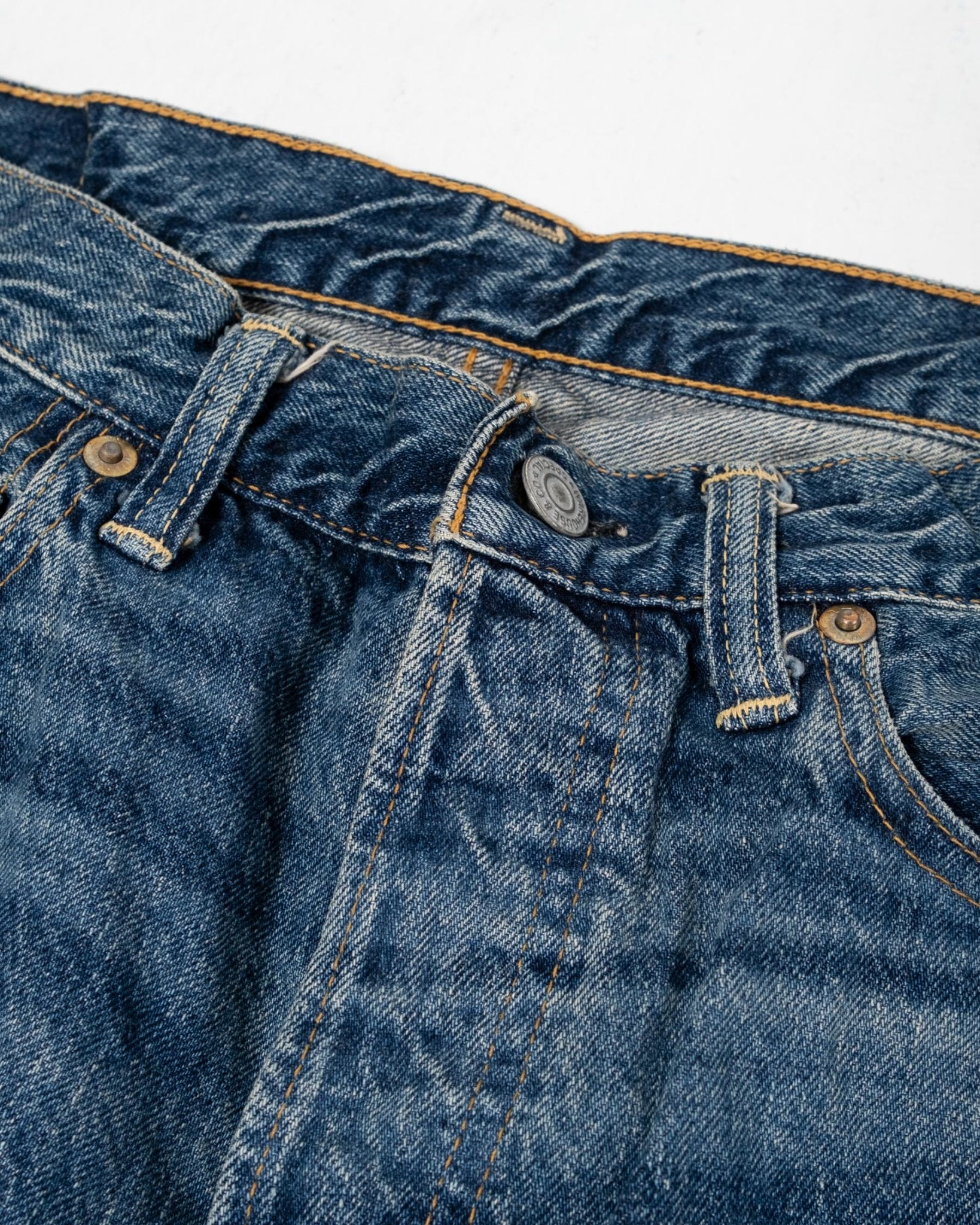 Second Hand 1100 Usato Lavato dal Magazzino & Co. Questo è uno dei fit distintivi di Warehouse. È un denim sanforizzato da 12 oz che è stato lavato per ottenere un bel look vintage usato, oltre al fatto che ti solleva da tutti i problemi di restringimento. Questo paio si basa su un modello degli anni '70 con il marchio di fabbrica Warehouse arancione selvaggio qui in una silhouette moderna e bella. Prodotto in Giappone.