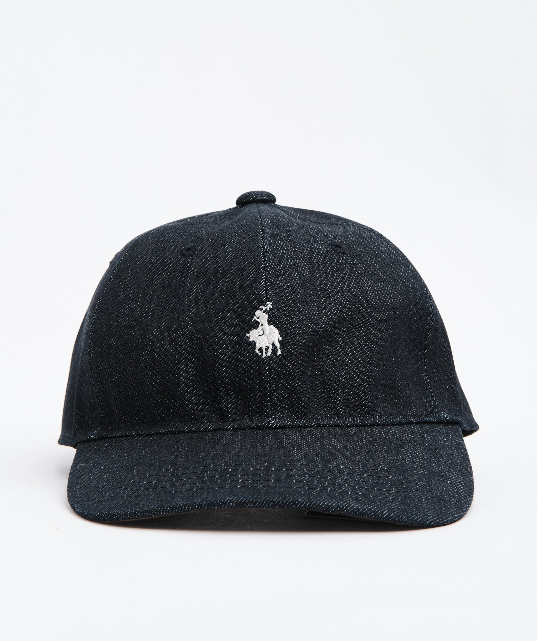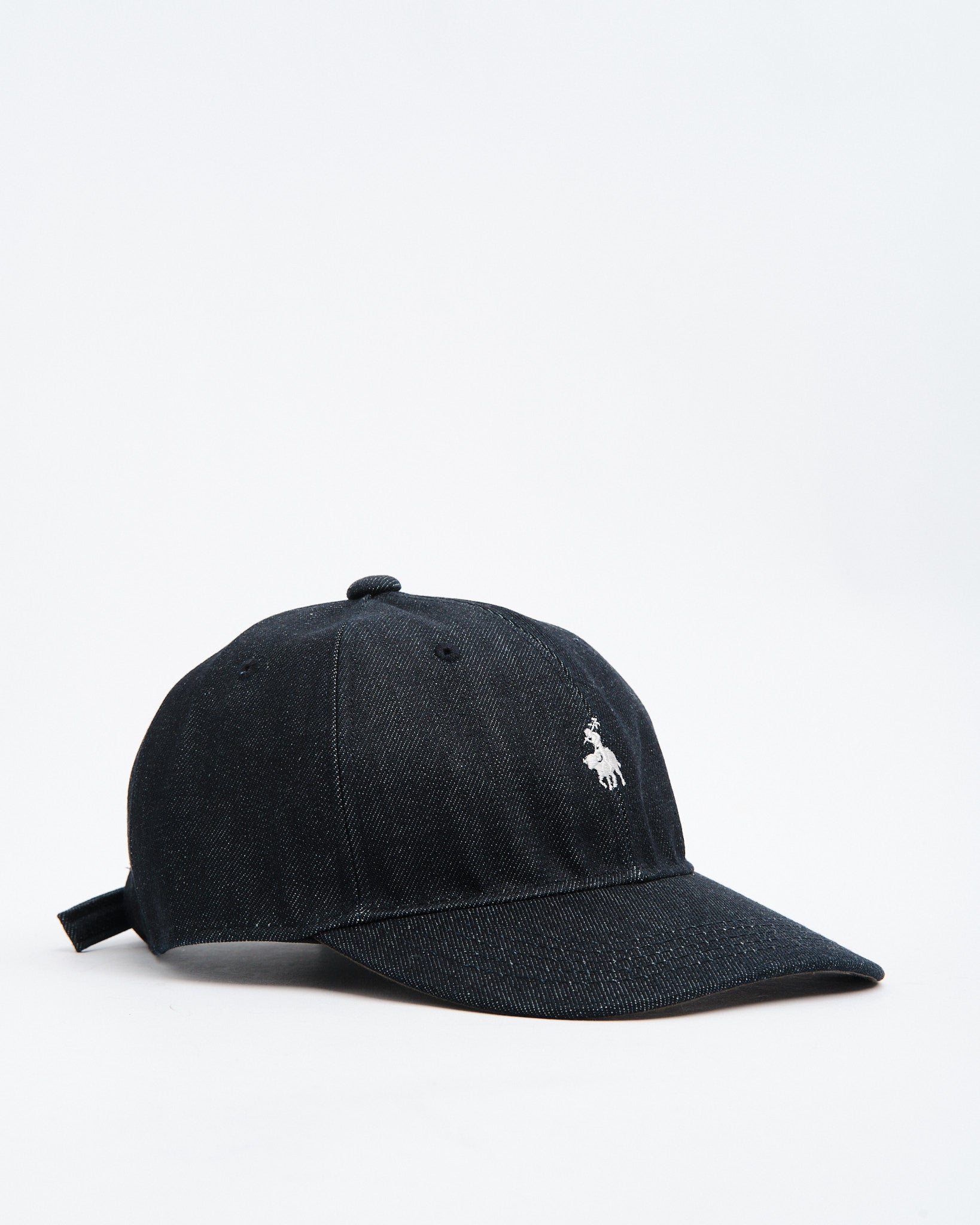 Realizzato in denim di cotone 100%, il cappellino è progettato per resistere all'uso quotidiano offrendo comfort. Il materiale è intenzionalmente lasciato non lavato, permettendogli di sviluppare una patina unica nel tempo, riflettendo lo stile di vita del portatore.