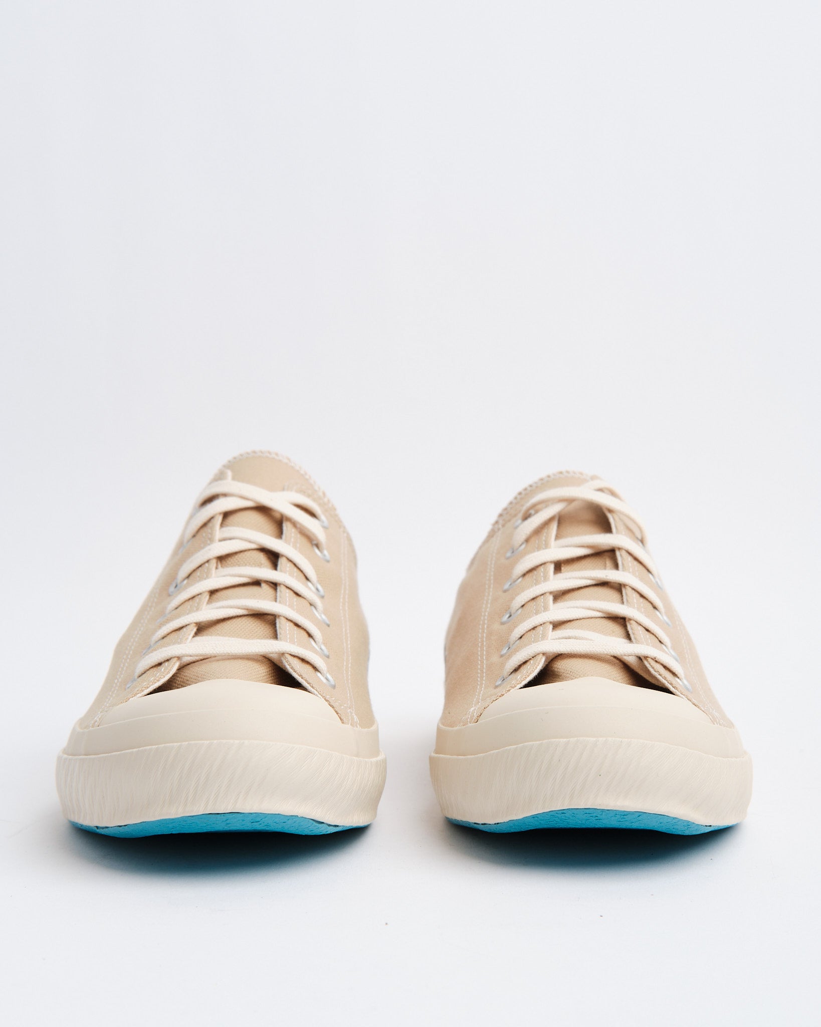 Le SHOES LIKE POTTERY SLP01 JP in Beige incarnano l'artigianato giapponese e la semplicità senza tempo. Ogni paio è realizzato a mano in Giappone e sottoposto all'unico processo di cottura in forno ‘ka-ryu’, garantendo una suola resistente e flessibile che si adatta al tuo piede nel tempo. La tomaia in tela di cotone 100% in una calda tonalità di beige offre un aspetto versatile e sobrio, mentre la suola in gomma blu firma ne evidenzia la qualità artigianale. Con una silhouette bassa e dettagli raffinati, queste sneakers sono progettate per il comfort quotidiano e uno stile senza sforzo.