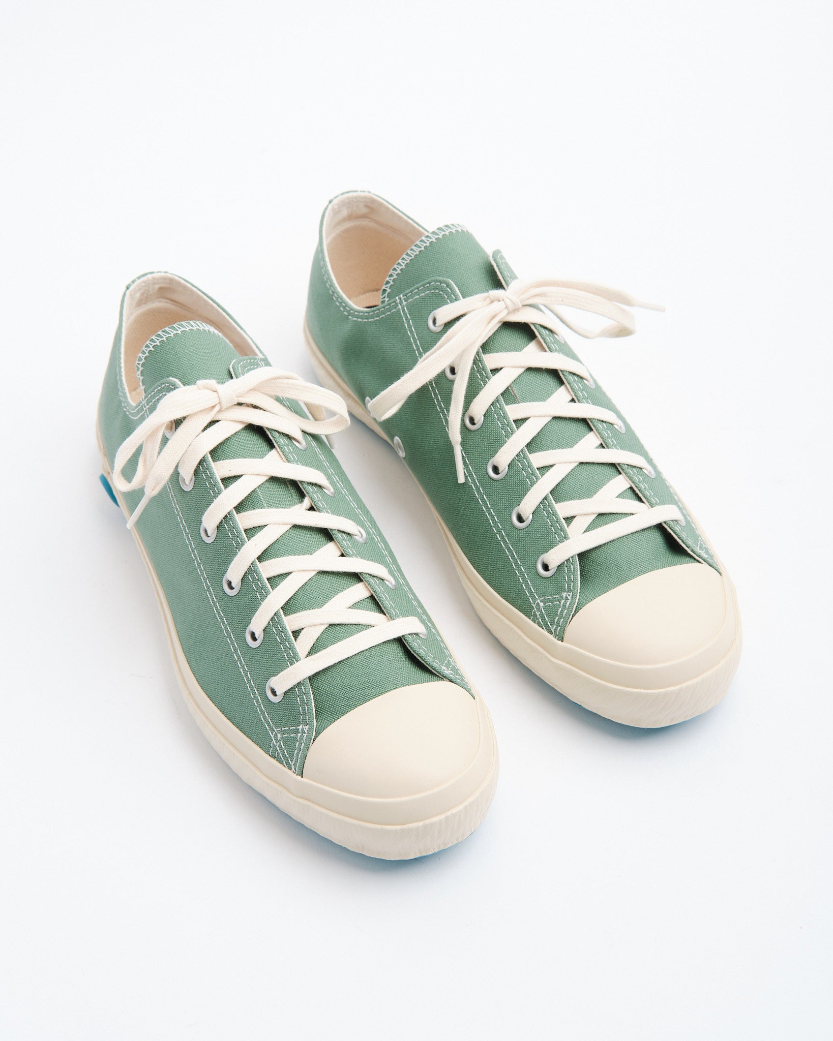 The Shoes Like Pottery SLP01 JP Green is a Japanese-made canvas sneaker crafted using time-honoured vulcanisation techniques in Kurume, Japan — a region known for its long shoemaking tradition. Each pair is slow-fired in a kiln, a rare process that enhances flexibility, durability, and long-term comfort.