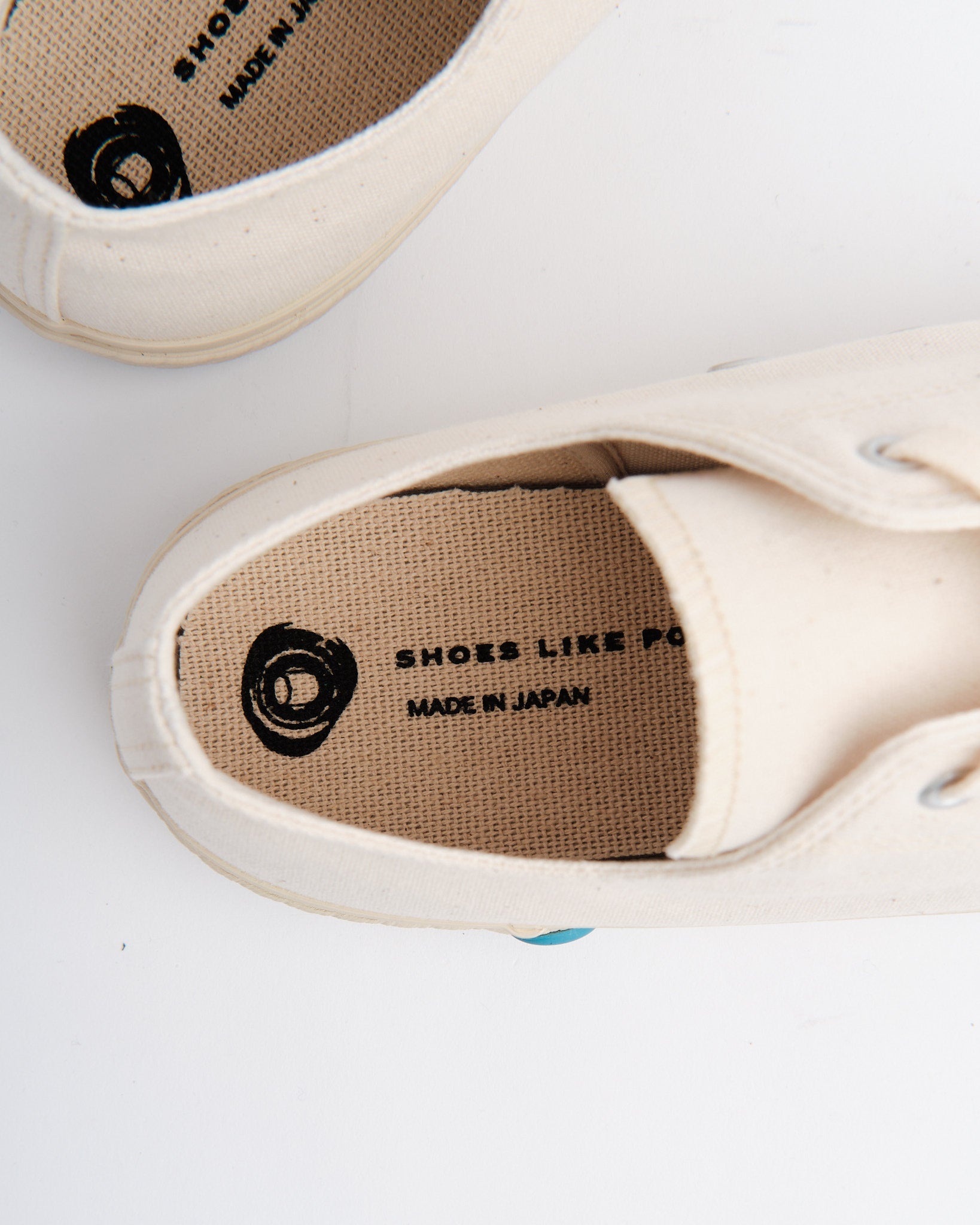 Le SHOES LIKE POTTERY SLP01 JP in Bianco sono un perfetto mix di artigianato giapponese e design minimalista. Realizzate a mano in Giappone, queste sneakers subiscono l'unico processo di cottura in forno ‘ka-ryu’, creando una suola flessibile e duratura che si adatta al tuo movimento. La tomaia in tela di cotone 100% garantisce traspirabilità e comfort, mentre la suola in gomma blu firmata è un segno di eccellenza artigianale. Con una silhouette bassa e un estetica senza tempo, queste sneakers si abbinano senza sforzo a qualsiasi look casual.