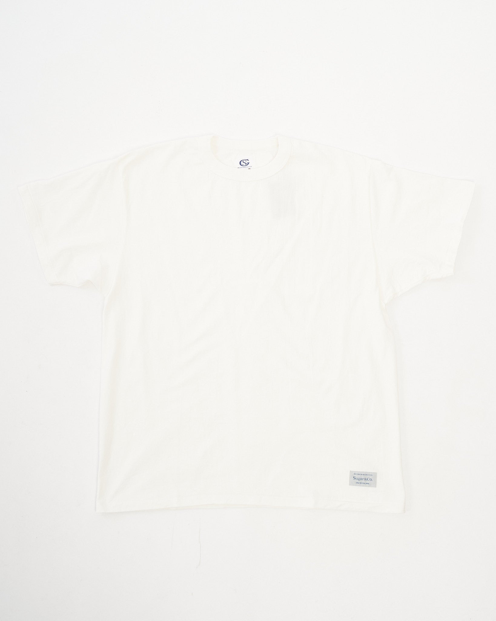 The Sugar & Co. SGR-TEE21 Standard T-Shirt in White brings thoughtful upgrades to the brand’s classic drop tee. Still made with the familiar dry-touch U.S. cotton BD yarn, it now uses an older, slower high-gauge tubular knitting machine — creating a denser, more substantial fabric with a beautifully textured hand feel.