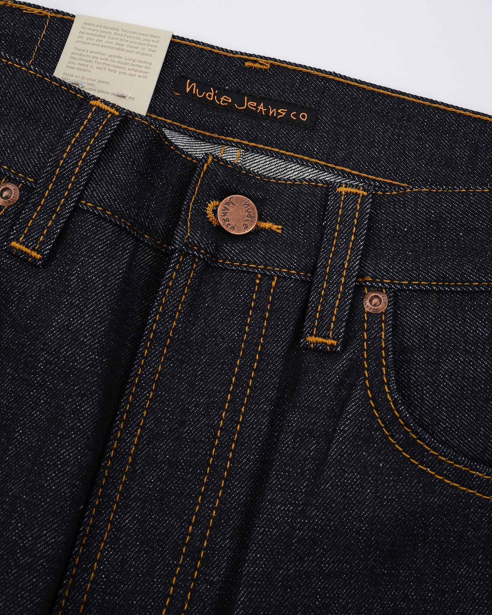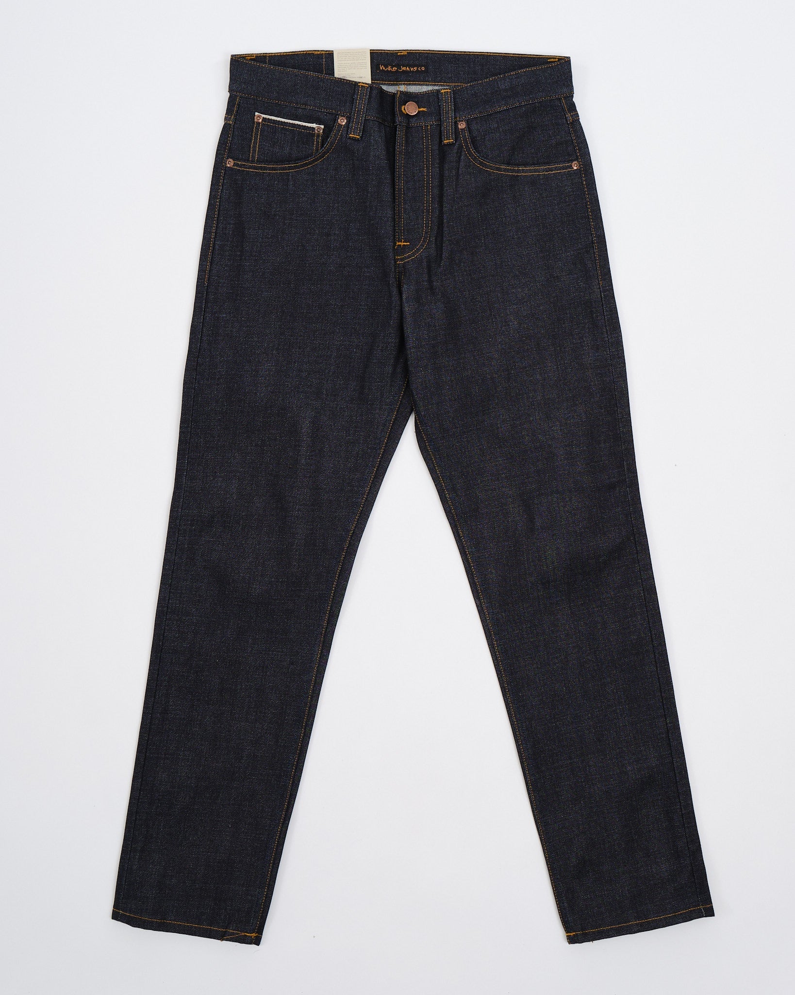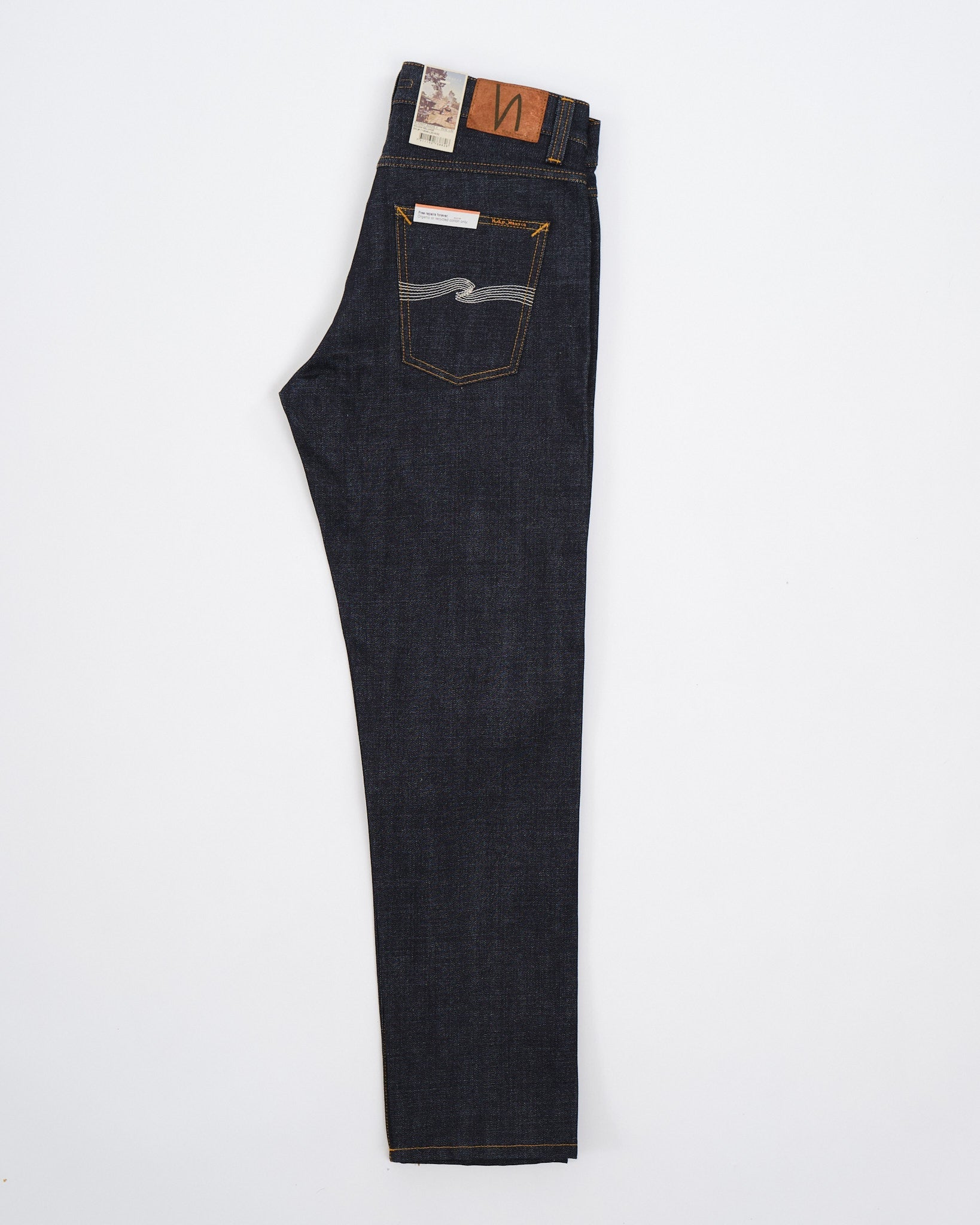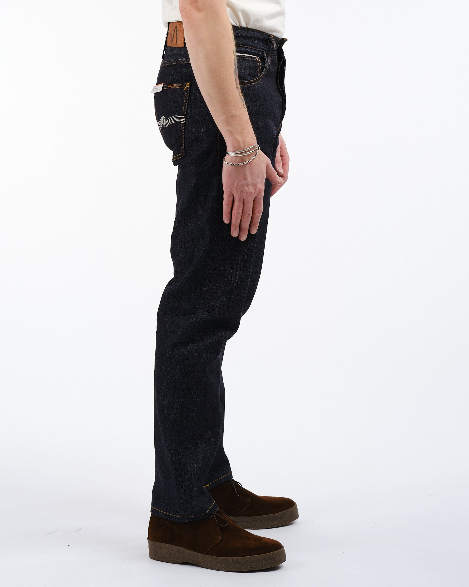 Scopri l'arte esposta nei jeans Steady Eddie II Kojima Selvage di Nudie Jeans Co. Questi jeans sono meticolosamente realizzati in cotone. Caratterizzati da 13 oz. di denim selvaggio rigido proveniente da Shinya, Giappone. Incarnano qualità e stile. Il denim giapponese di alta qualità è adornato con cuciture tabacco e, ricamo bianco sporco sulla tasca posteriore che evidenzia la sua capacità di invecchiare magnificamente nel tempo. La tonalità indaco scuro, con un sottotono rossastro, tessuta su telai shuttle vintage, mostra l'intricata maestria dietro questi jeans. Con un design che vanta una vita media e una gamba affusolata, offrono sia comfort che una silhouette snella con la loro apertura di gamba stretta. Ogni paio è completo di rifiniture in rame, una mosca con bottone e una patch autentica in Jacron che simboleggia durabilità e autenticità.