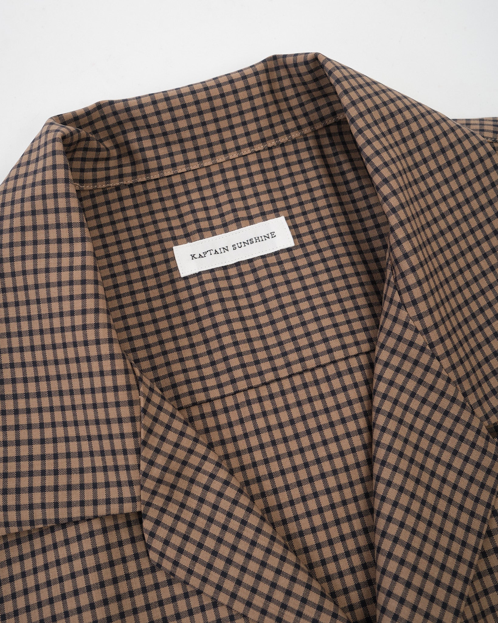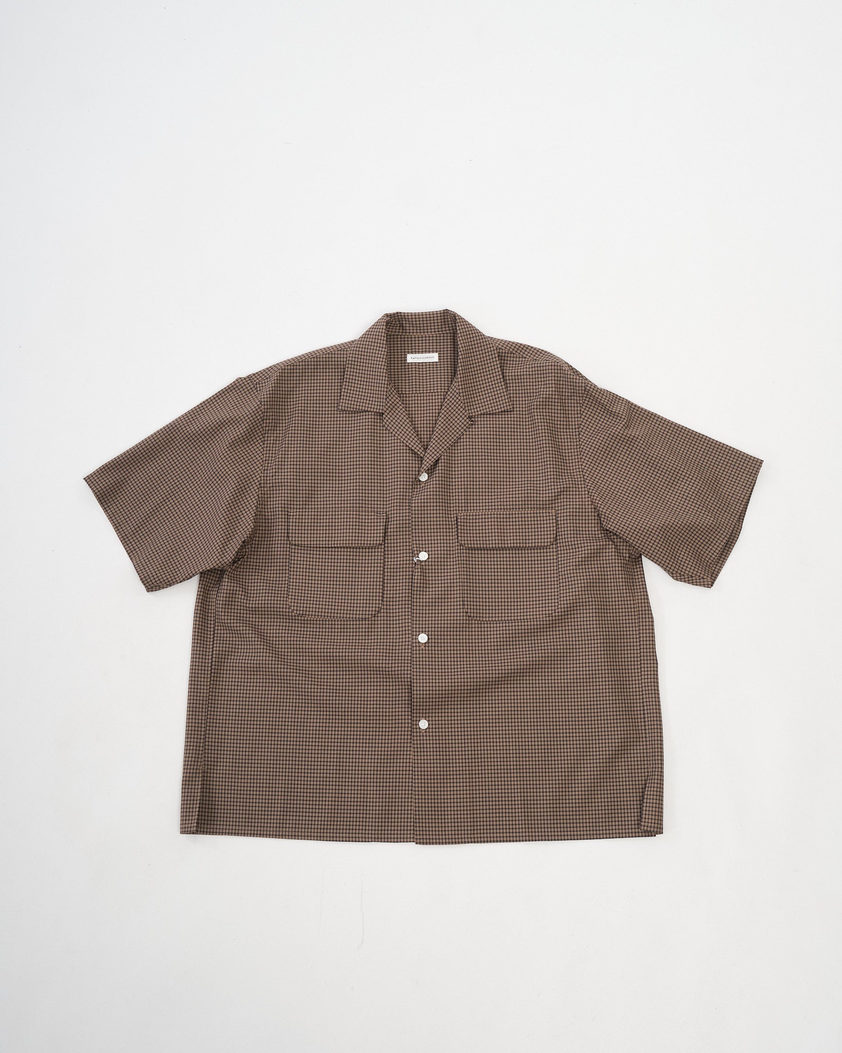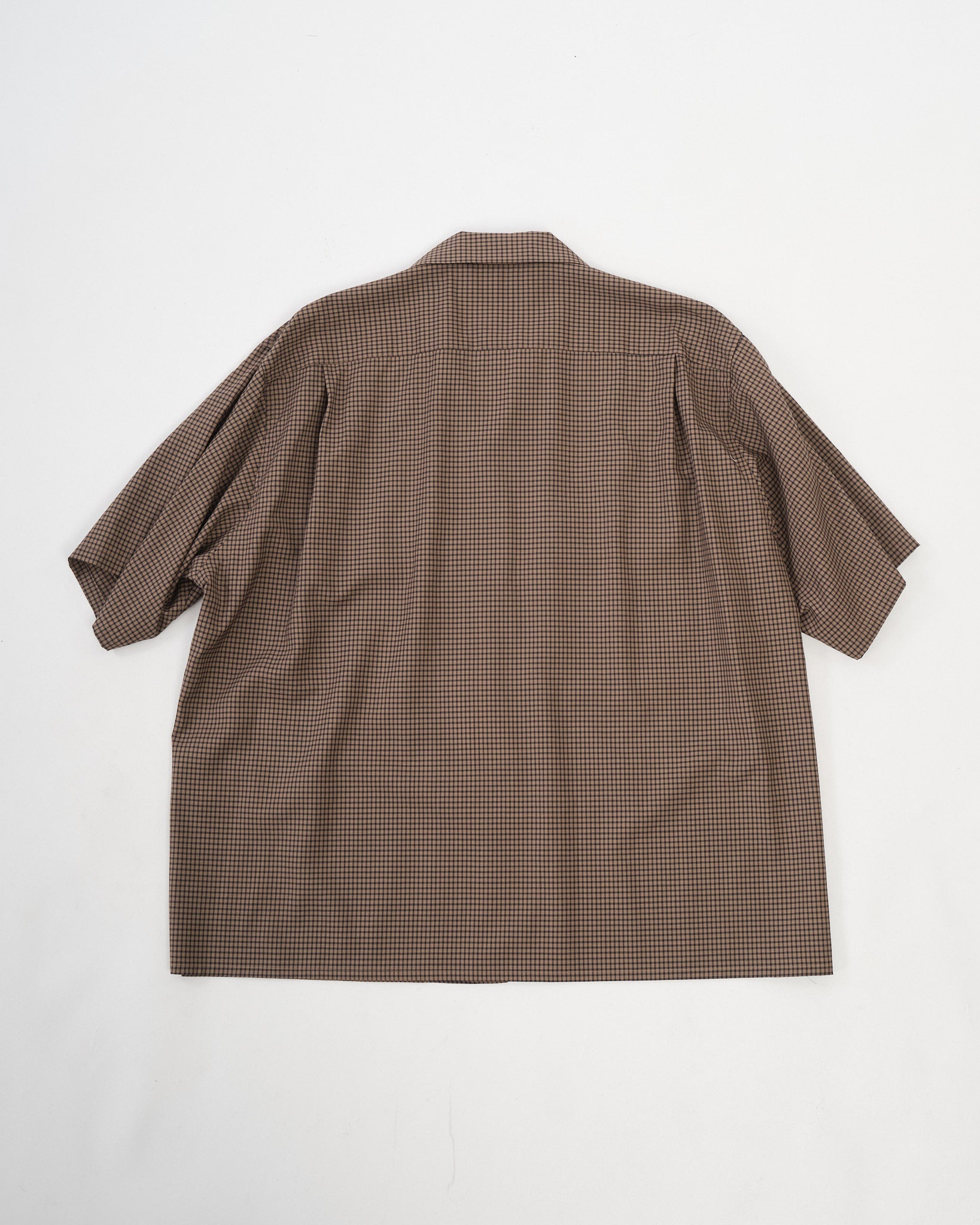 Summer Wool Open Collar SS Shirt KHAKI PLAID