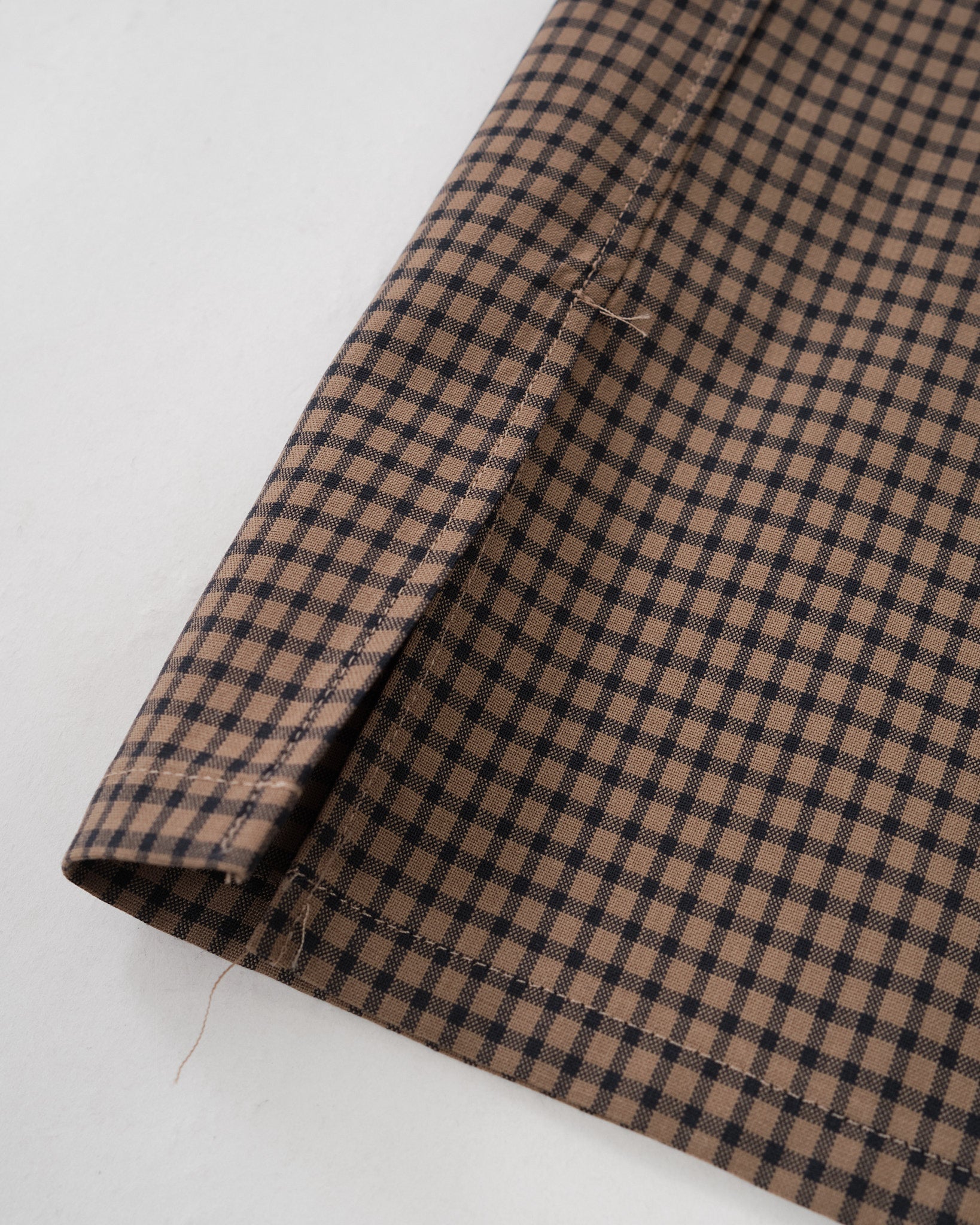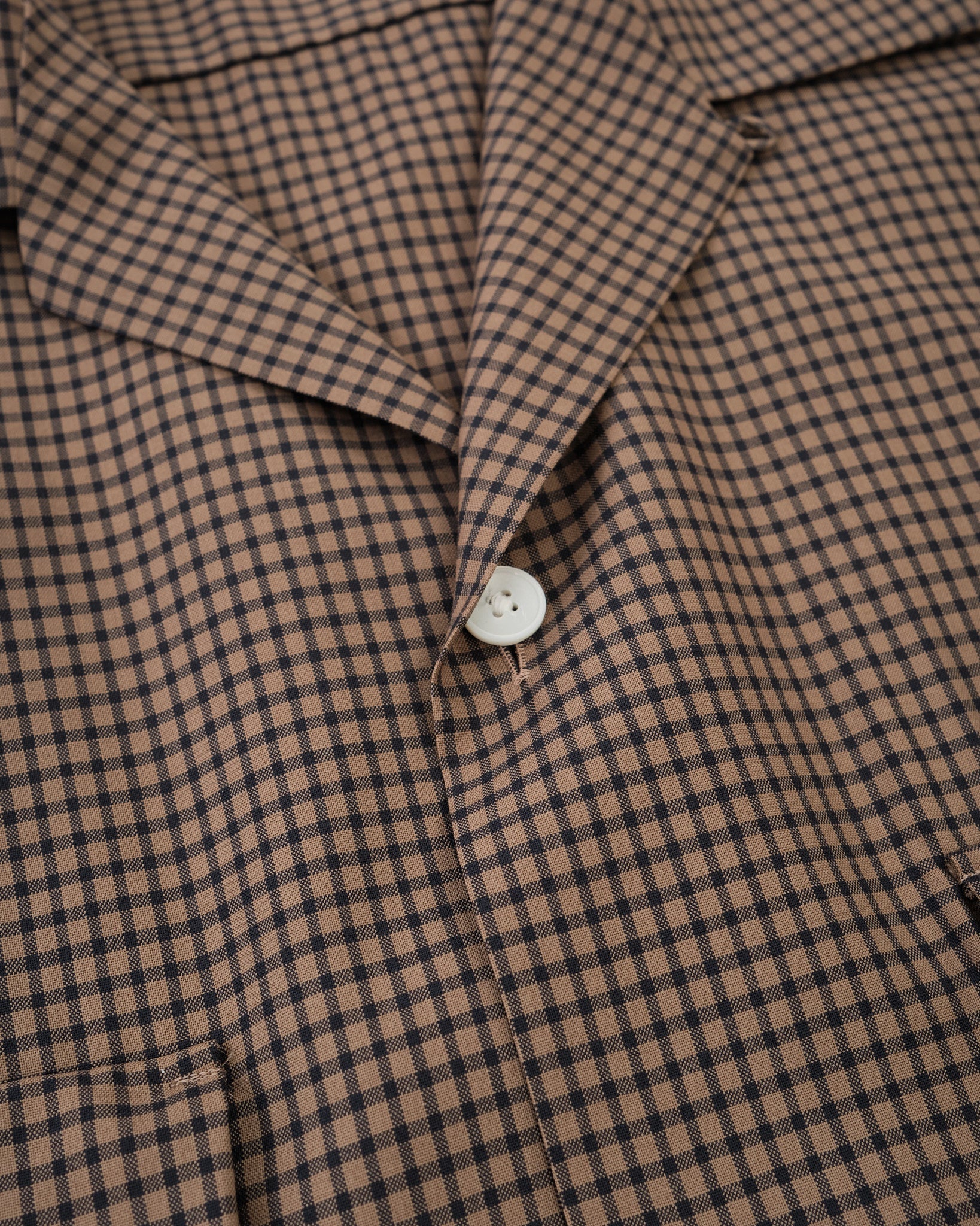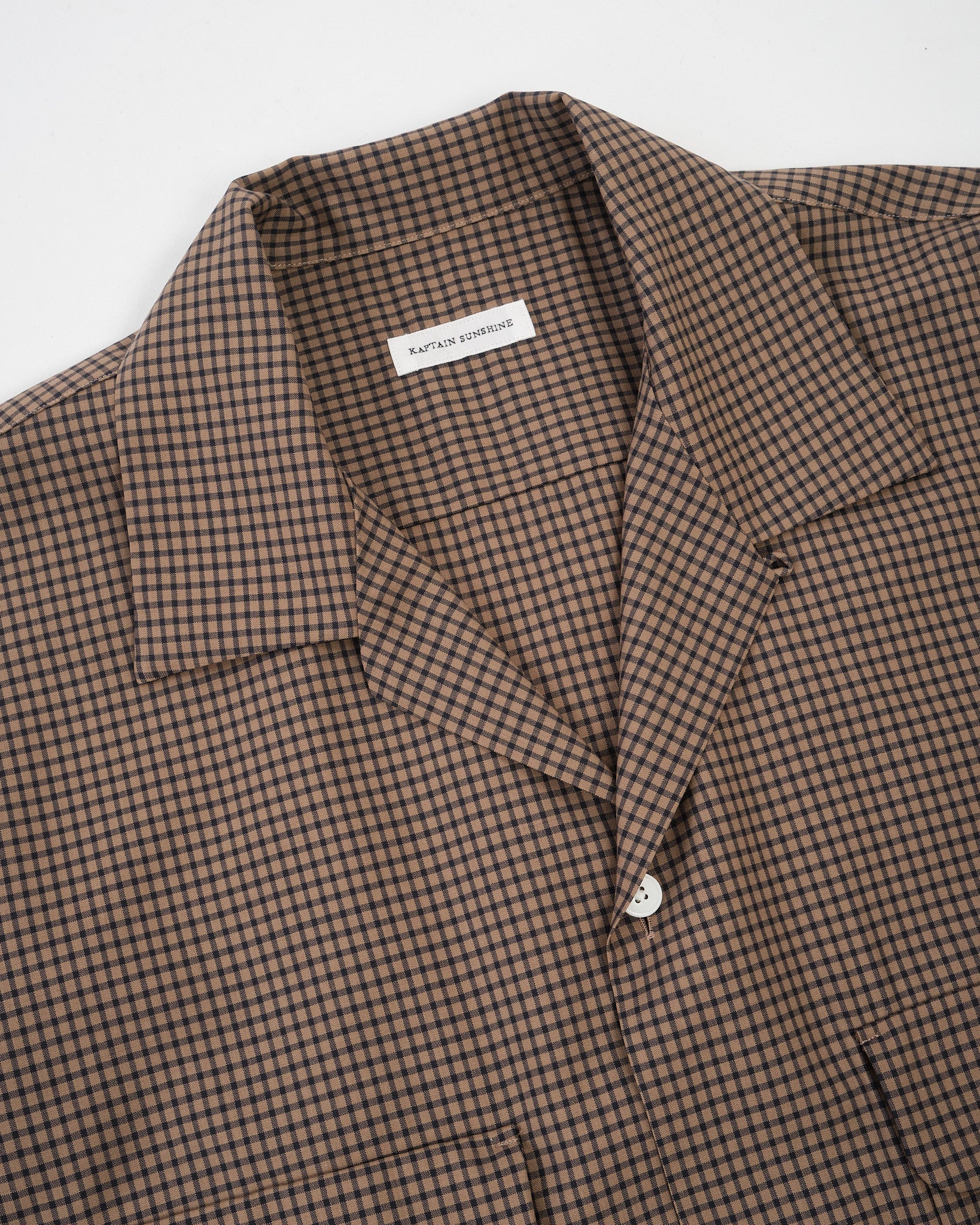 Summer Wool Open Collar SS Shirt KHAKI PLAID