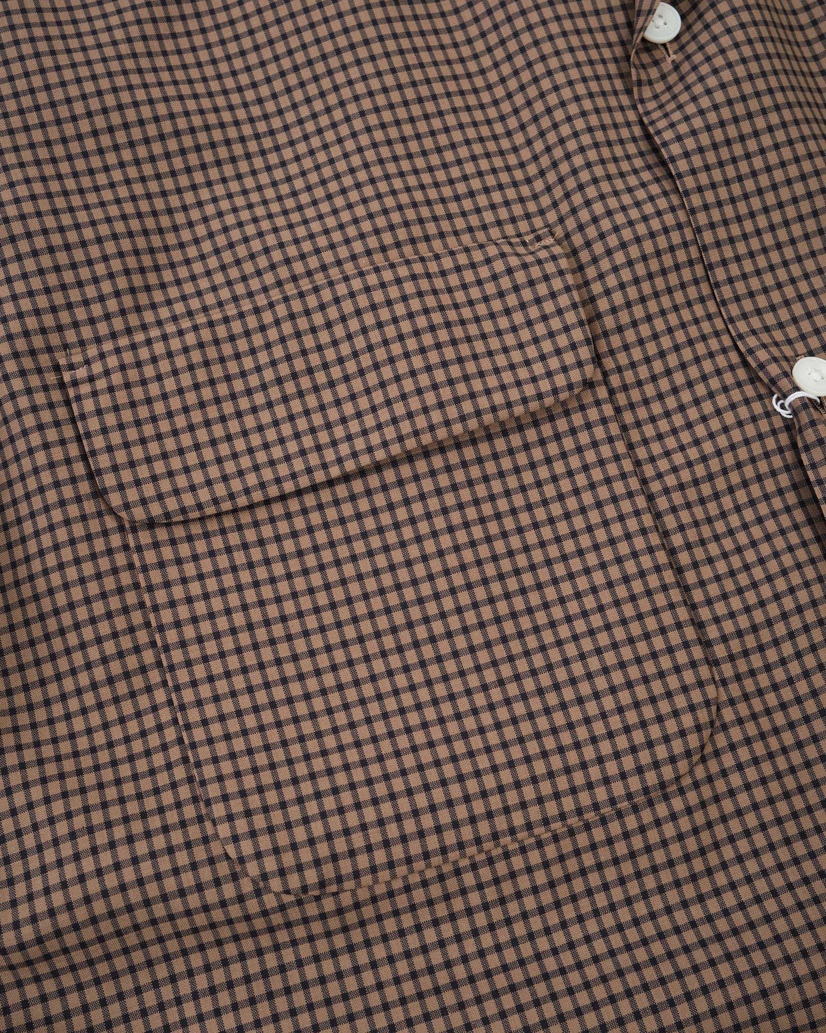 La lana tintata in filo dona alla camicia profondità e chiarezza di colore, mentre la finitura lavabile rende il tessuto pratico per l'uso quotidiano. Questa combinazione di raffinatezza tecnica e prestazione della fibra naturale riflette l'impegno di Kaptain Sunshine verso capi elevati ma indossabili.