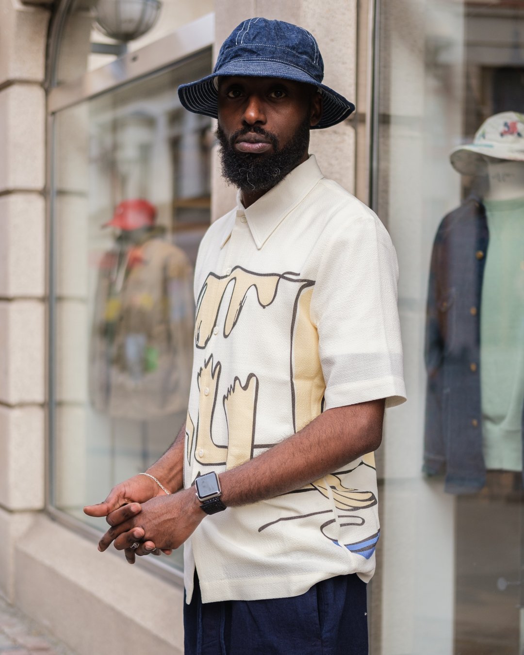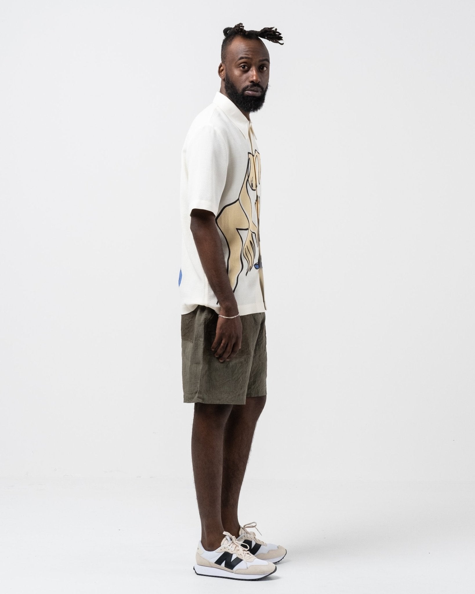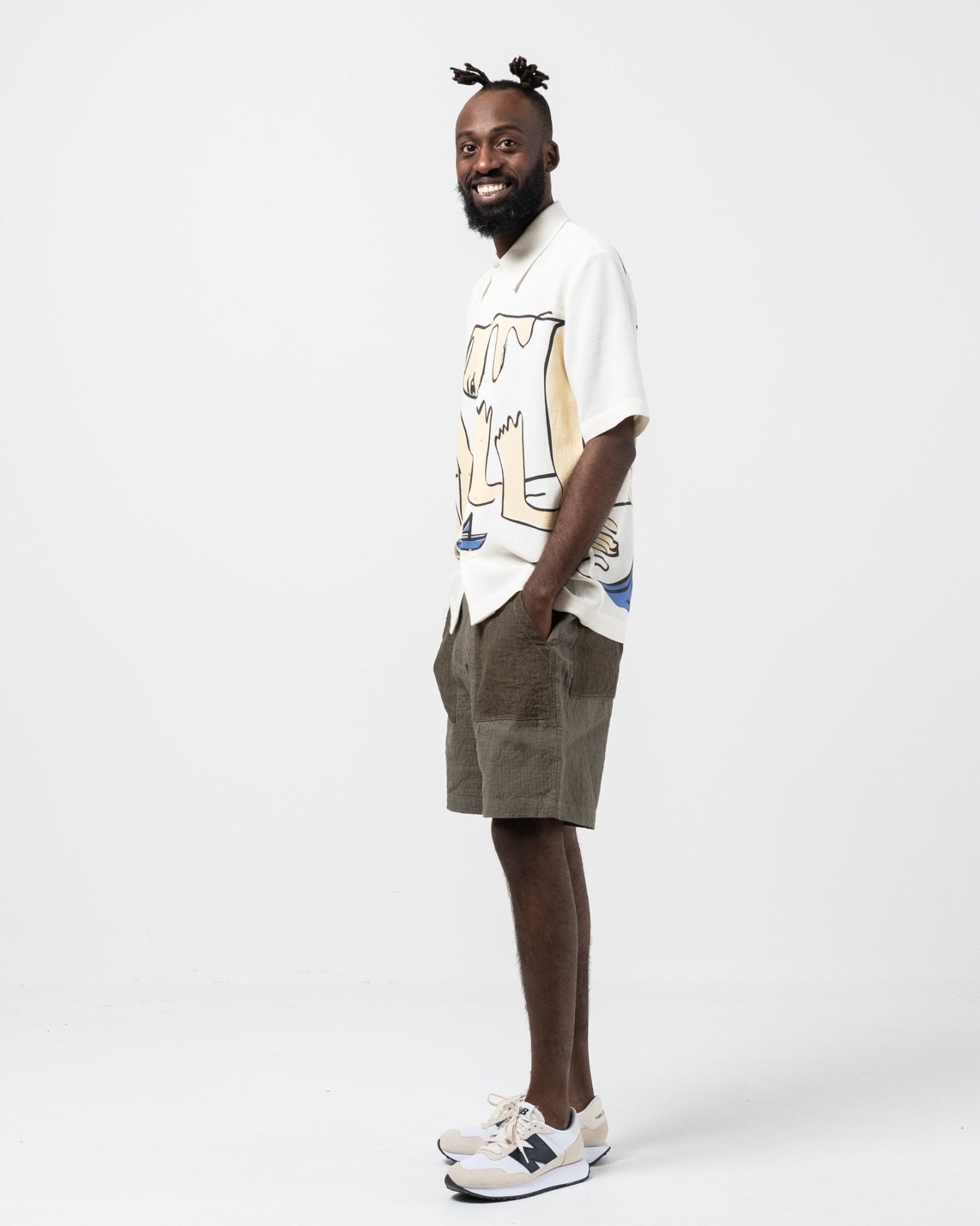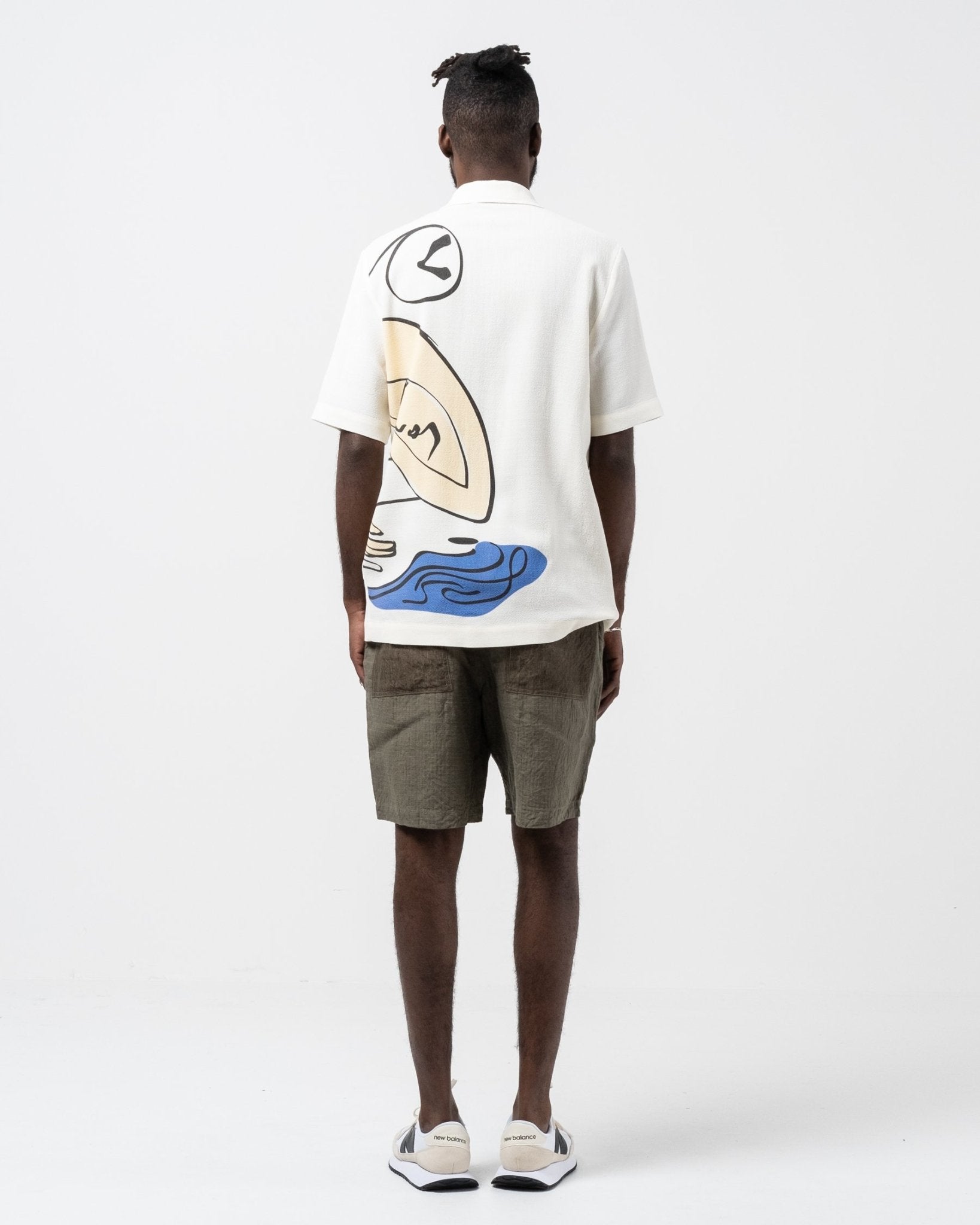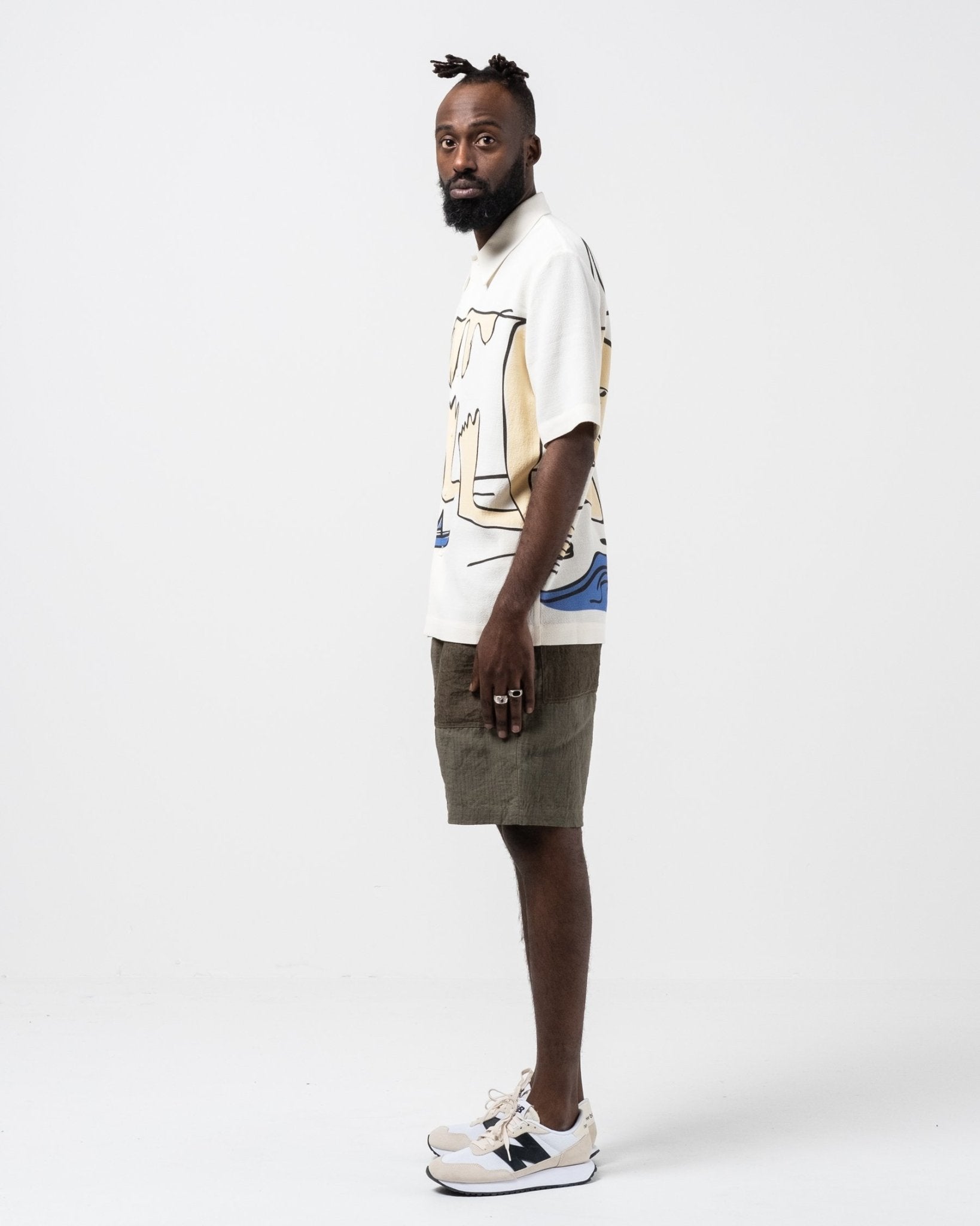 Camicia Suneham Union Print di Séfr. Camicia a maniche corte con vestibilità dritta e colletto ampio. Tessuto bellissimo in tessuto crepe di viscosa-lana e bottoni in madreperla dall'Italia. Stampa Union dell'artista di Malmö Therese Wendt. Prodotto in Lettonia.