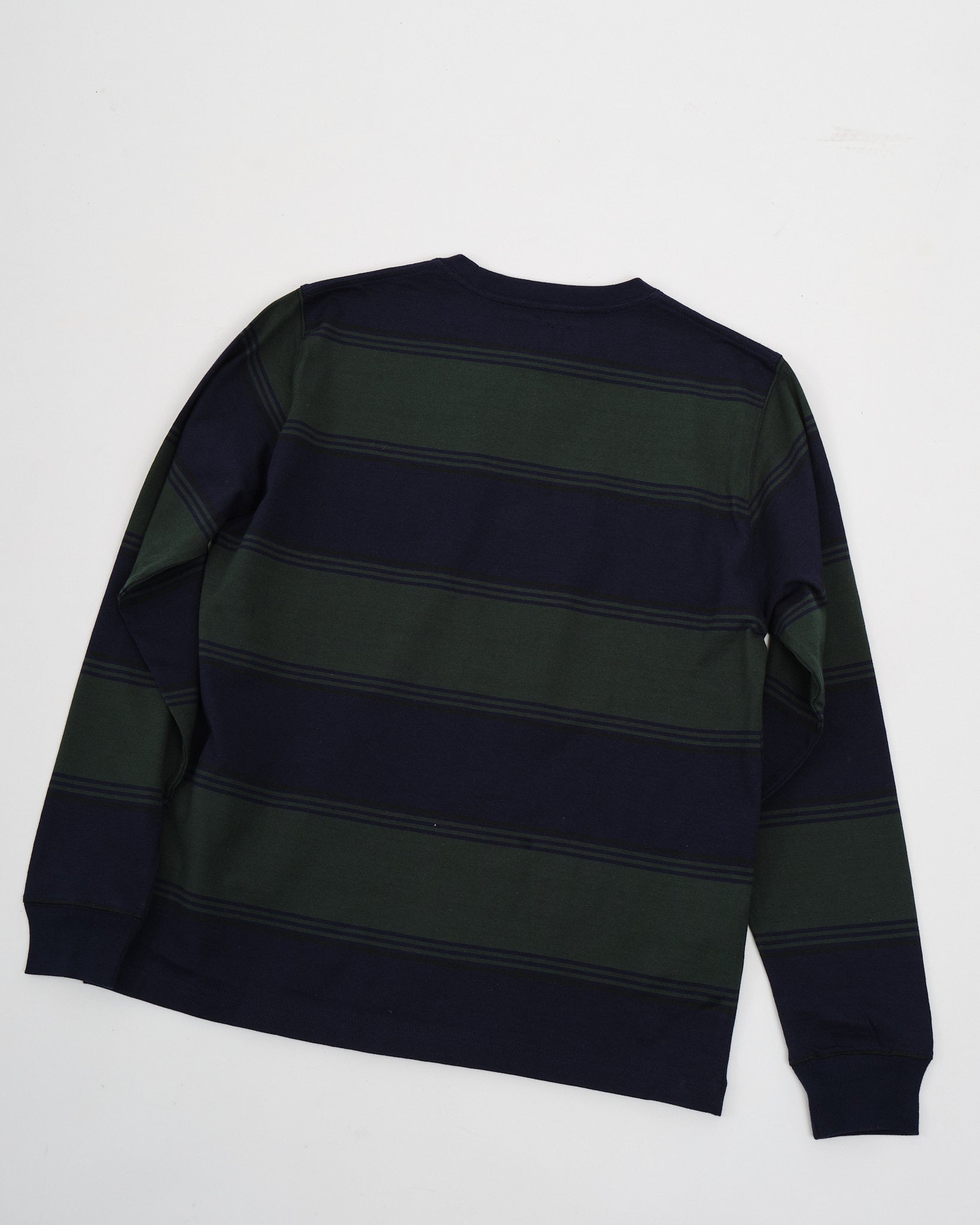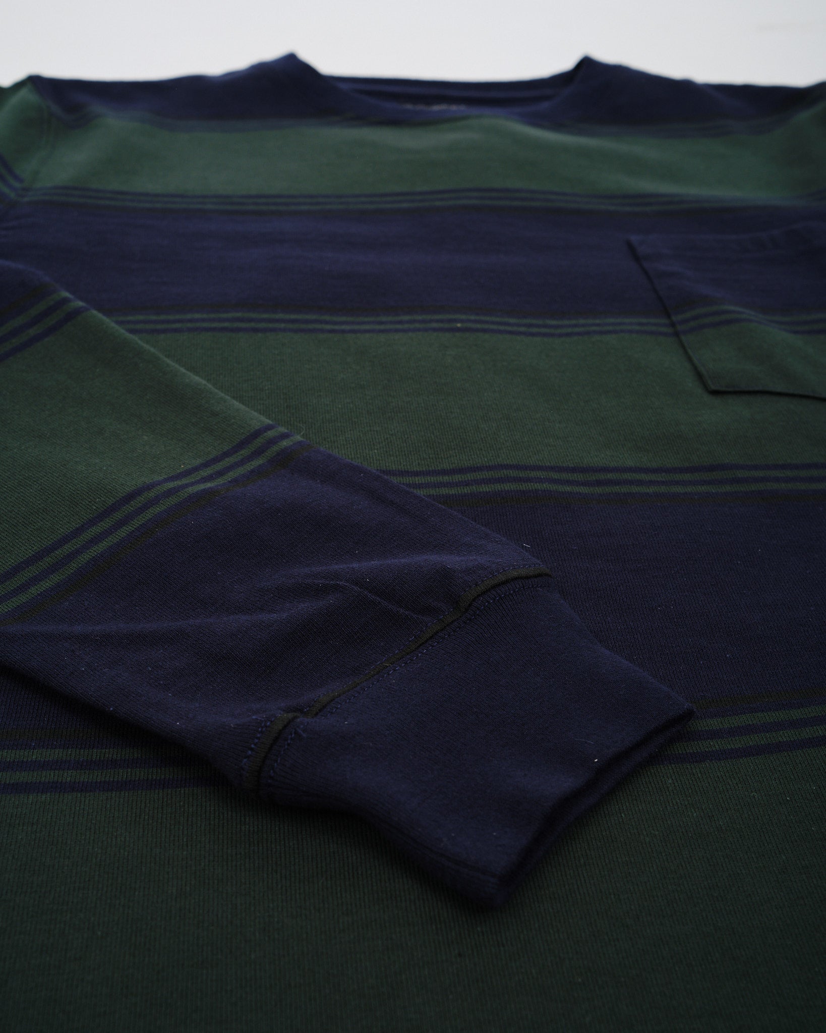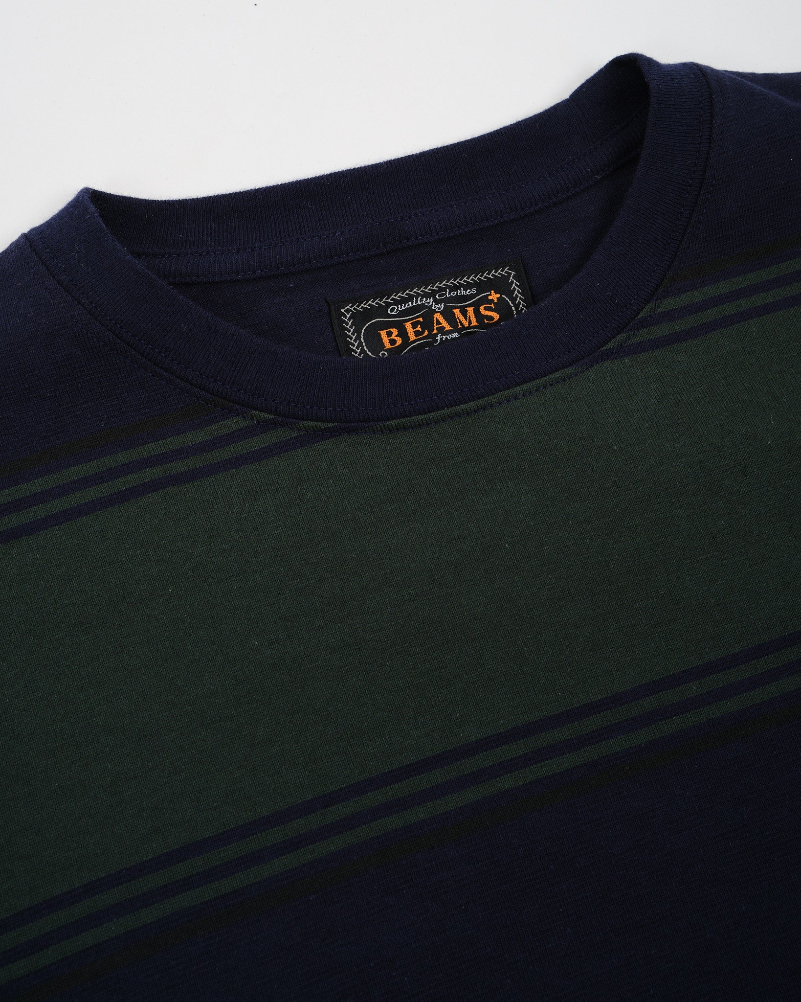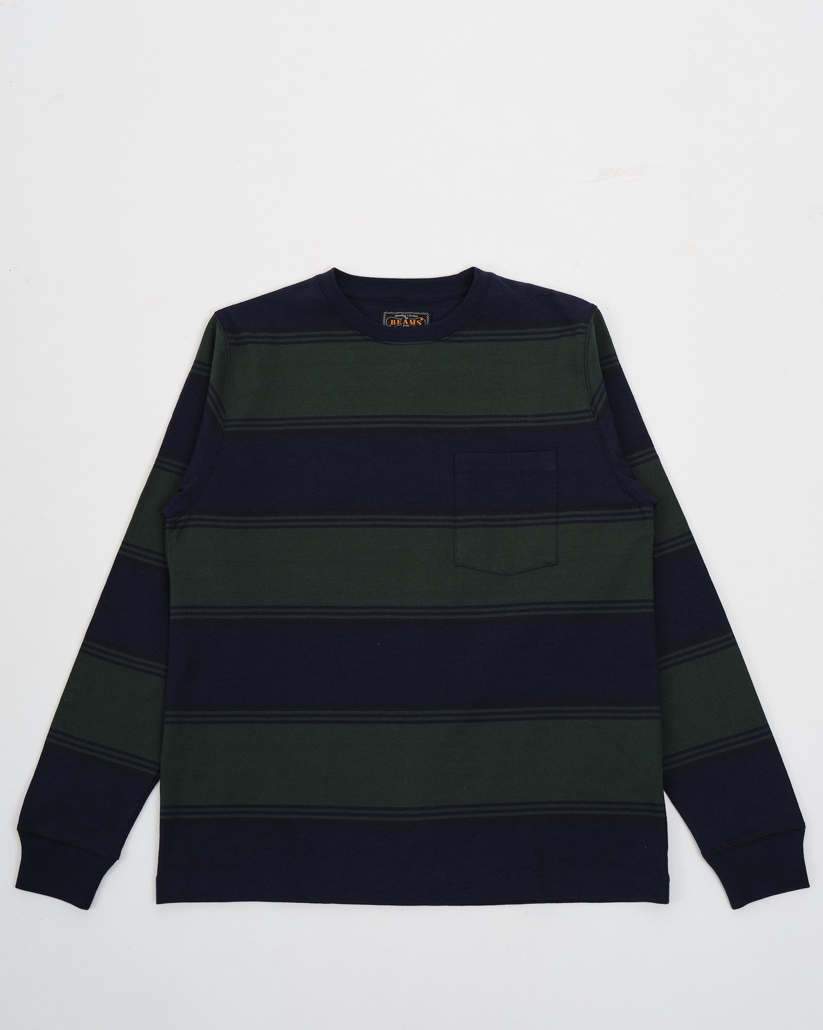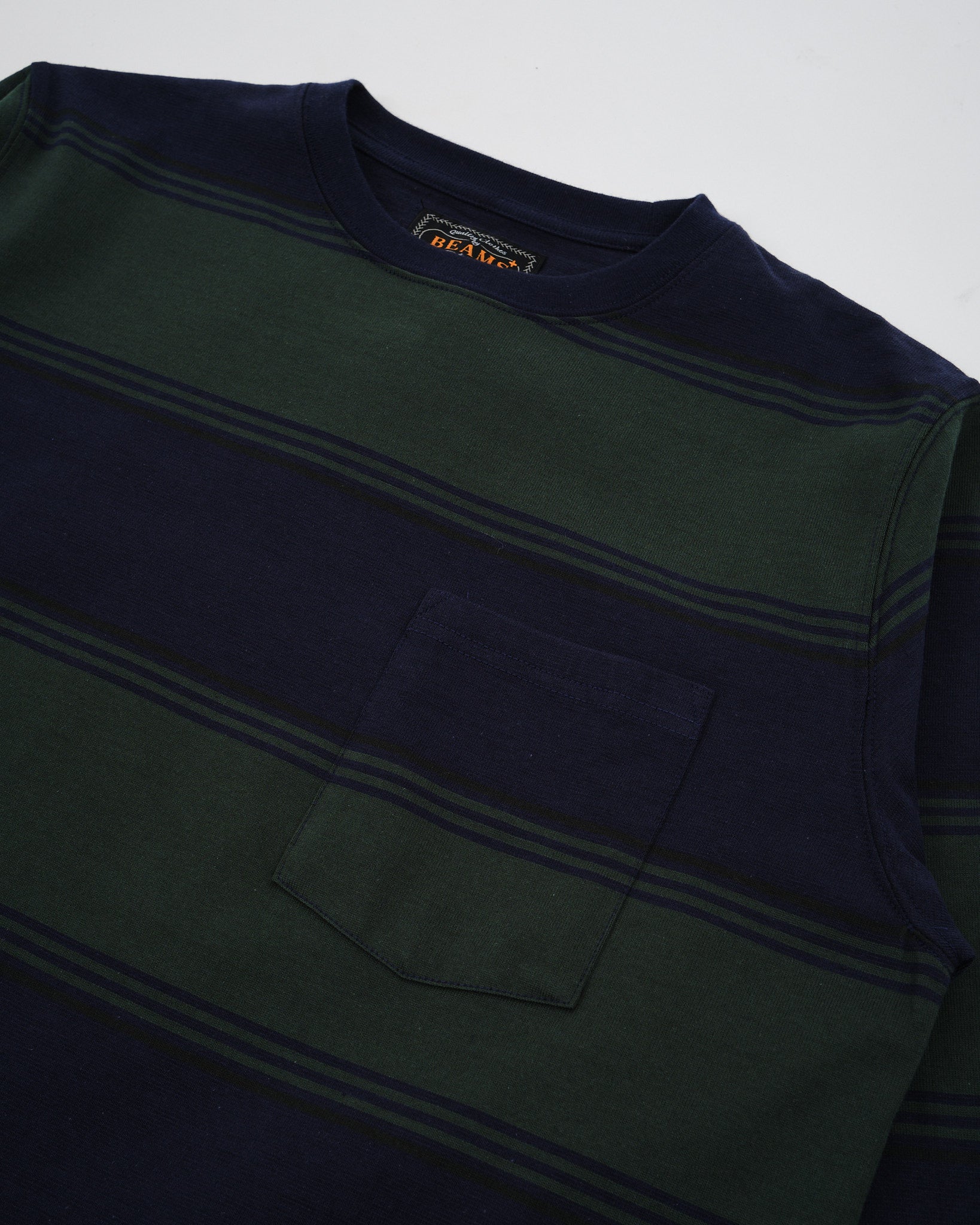 Vivi il fascino senza tempo della moda con la Beams+ Pocket Tee Stripe Navy. Realizzata utilizzando una miscela di filati, questa maglietta esprime una sensazione piacevolmente testurizzata che incarna l'essenza dello stile retrò. Fatta in 100% cotone proveniente dall'India, offre una sensazione di peso medio adatta a tutte le stagioni. Il motivo a righe oliva si abbina perfettamente a caratteristiche come il collo, i polsini e una tasca sul petto posizionata in modo conveniente. Completa di orli, questa maglietta garantisce un look che non passa mai di moda.