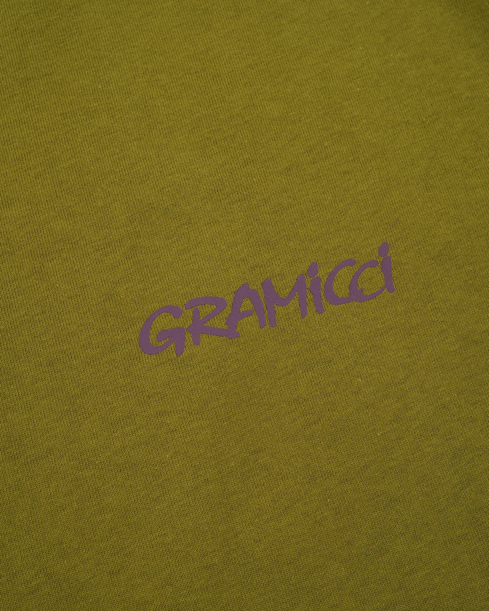 Grafiche Audaci: Presenta il logo Gramicci sul petto sinistro e una grafica divertente e d'impatto sul retro.