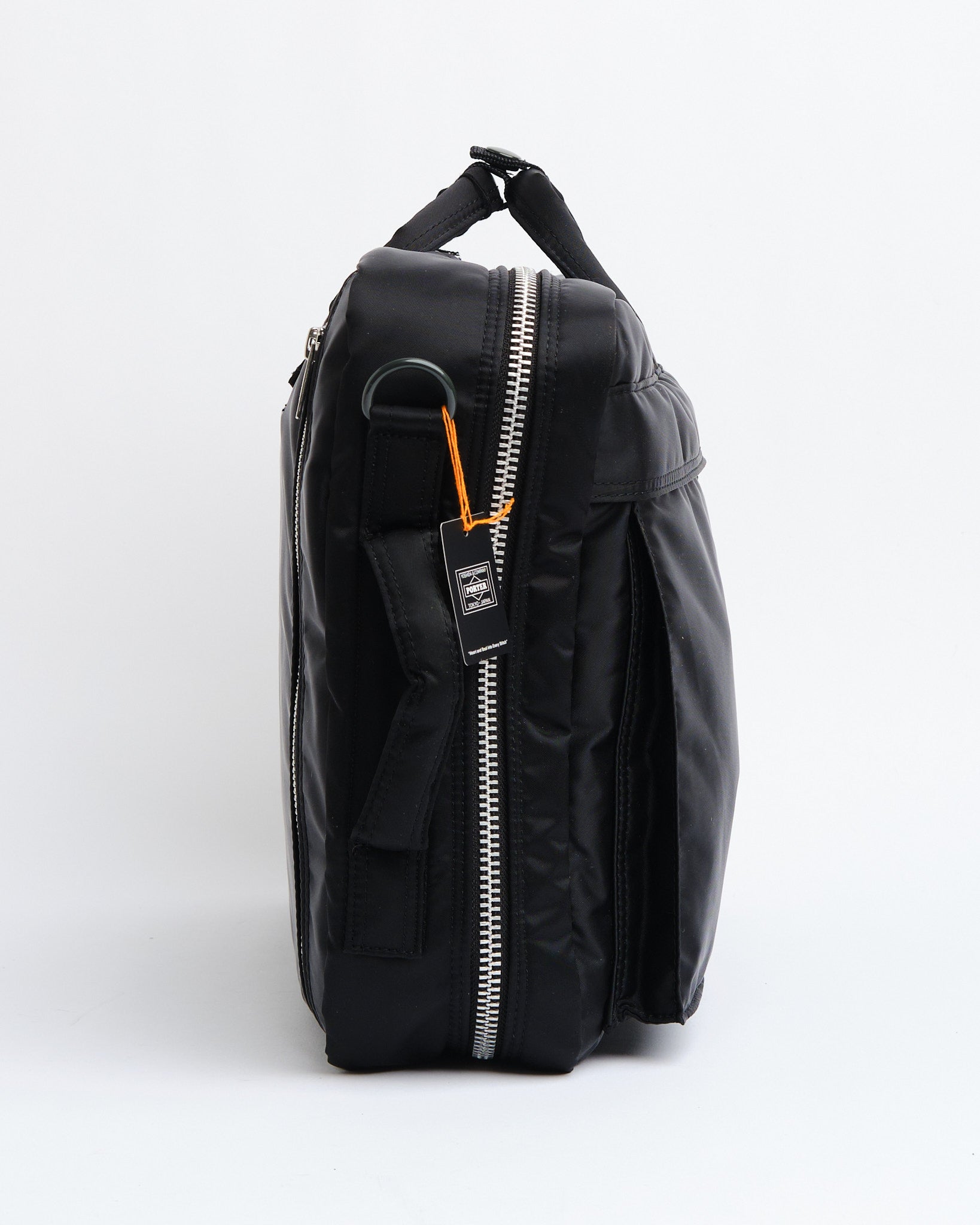 Presentazione della PORTER YOSHIDA TANKER 3WAY BRIEFCASE in Nero, un capolavoro versatile della iconica serie TANKER che ha avuto origine nel 1983. Realizzata con cura utilizzando un tessuto a tre strati ispirato alla giacca da volo MA 1 dell'U.S. Air Force, questa borsa combina twill di nylon, cotone poliestere e taffetà di nylon per creare un accessorio ancora resistente. Con la sua fodera arancione di soccorso dimostra l'eccezionale attenzione ai dettagli da parte dei maestri artigiani di Yoshida&Co. Questa borsa da lavoro di dimensione A4 offre tre opzioni di trasporto; a spalla, sulla schiena e a mano; inoltre include una tasca interna trasparente, per piccoli oggetti. Il scomparto principale presenta una cerniera a U per una migliore accessibilità, specialmente quando viene portata sulla schiena. Orgogliosamente realizzata in Giappone, va oltre la funzionalità e rappresenta un'evoluzione dello stile e della maestria artigianale.