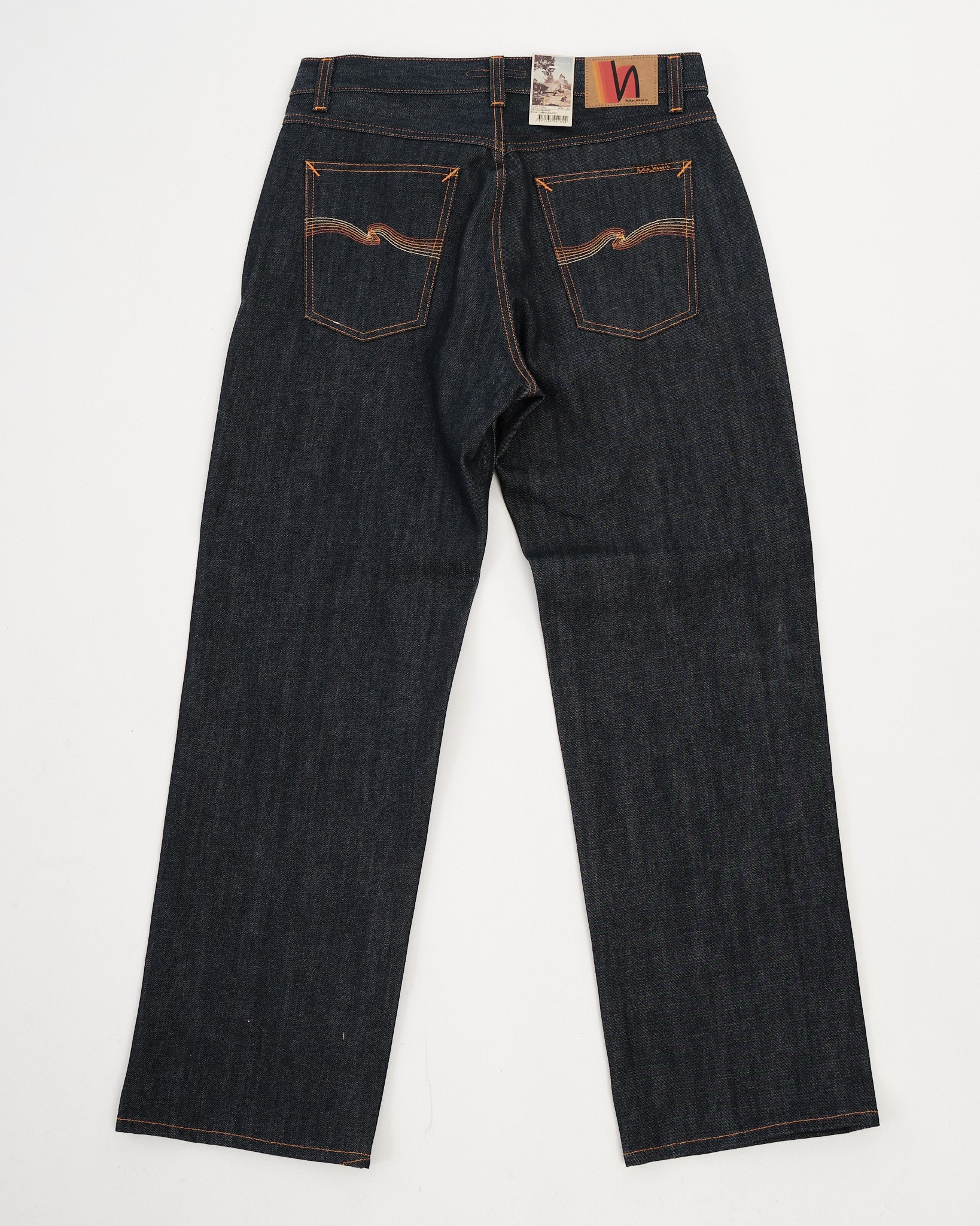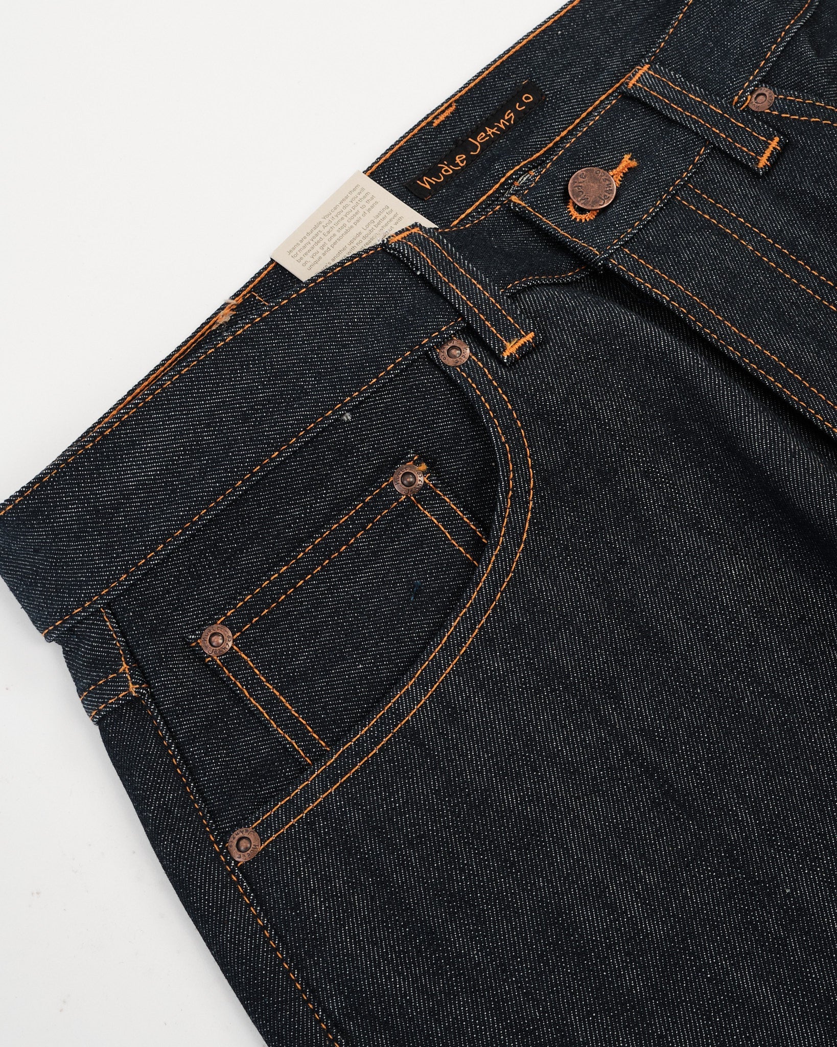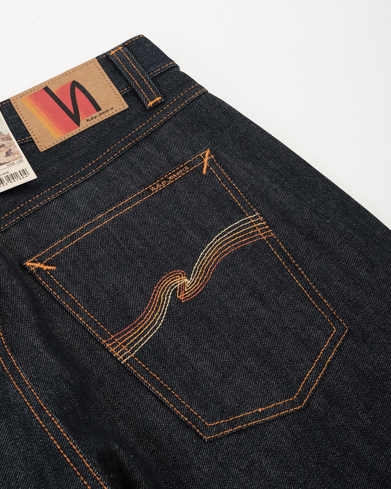 Incontra Tuff Tony in Dry Sunburns — un jeans dichiarazione che fonde l'amore di Nudie per il denim rigido con un tocco accattivante. Realizzato in cotone organico rigenerativo da 14,2 oz, questo denim unisce durabilità e responsabilità. La caratteristica di spicco? Un ricamo a gradiente "sunburns" sulle tasche posteriori, che aggiunge un tocco giocoso ma raffinato. Con una vestibilità ampia, vita alta e gamba larga, è pensato per chi ama i jeans con personalità e scopo. Rifinito con filo arancione, rifiniture in rame e la tipica toppa jacron di Nudie, questo paio è pronto a far girare le teste.