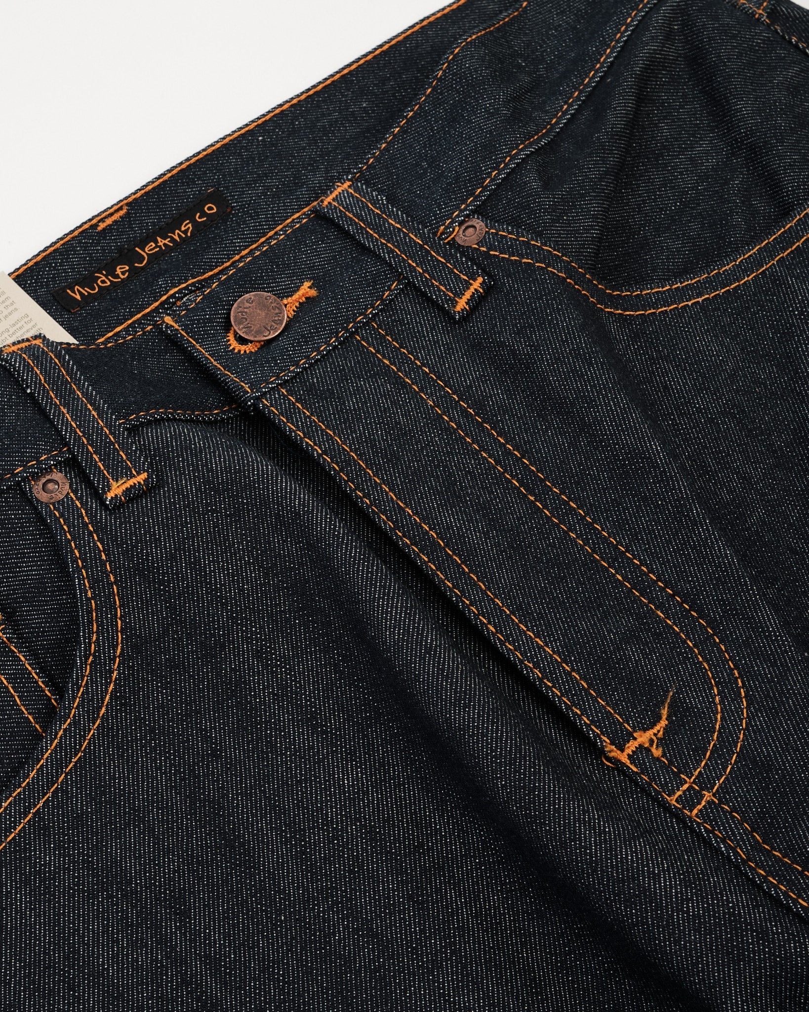 • Denim rigido da 14,2 oz realizzato in cotone organico rigenerativo