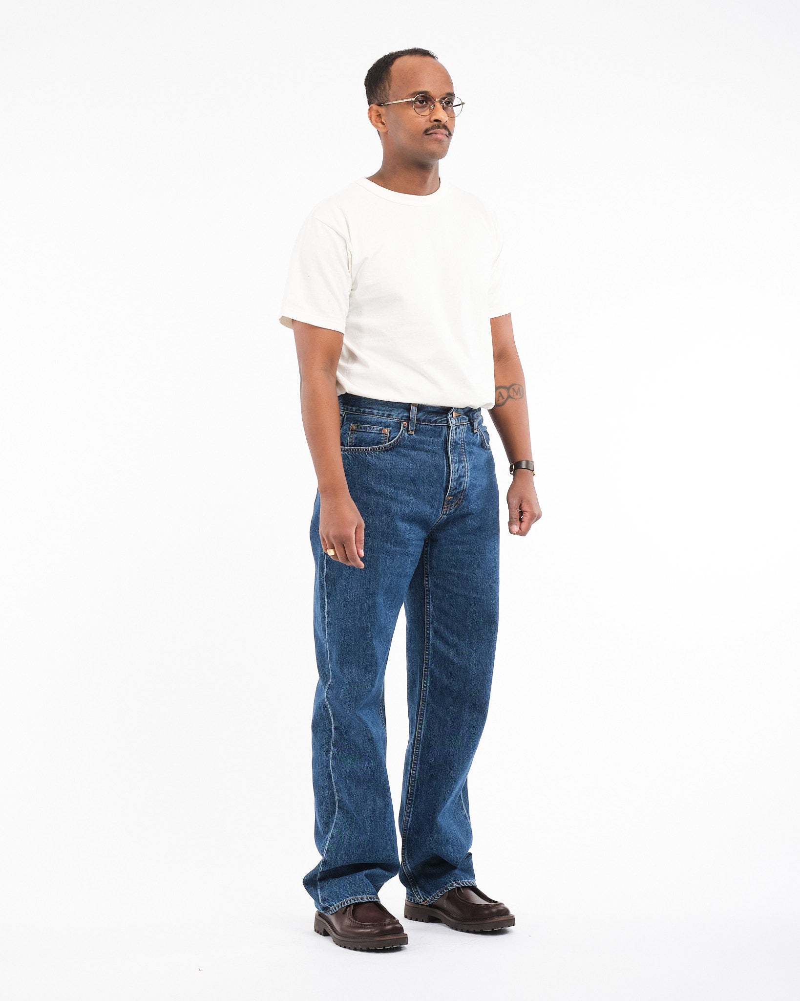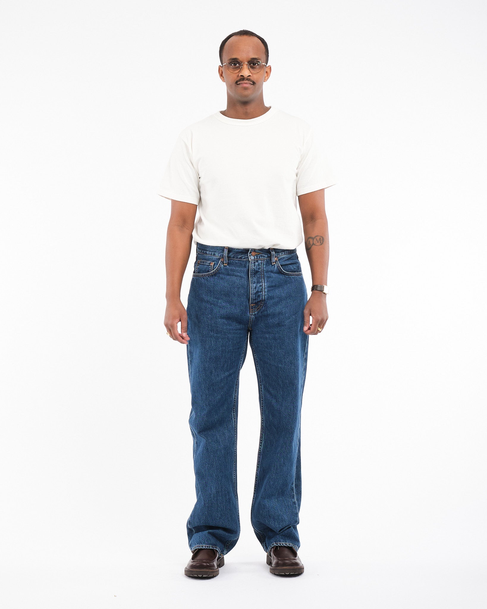 Il Nudie Jeans Co Tuff Tony in Evening Jazz è un denim a vestibilità rilassata realizzato con la dedizione di Nudie alla sostenibilità e alla qualità. Realizzati in 100% cotone biologico, questi jeans presentano una silhouette ampia con un design a gamba dritta, offrendo comfort senza sforzo e un'estetica senza tempo. Il lavaggio Evening Jazz aggiunge un aspetto sottile e consumato con sbiadimenti morbidi e baffature, creando uno stile versatile che si adatta sia agli outfit casual che a quelli più ricercati. Progettato con il classico stile a cinque tasche e cuciture rinforzate, il Tuff Tony è perfetto per coloro che apprezzano il comfort, la durabilità e l'artigianato eco-consapevole.
