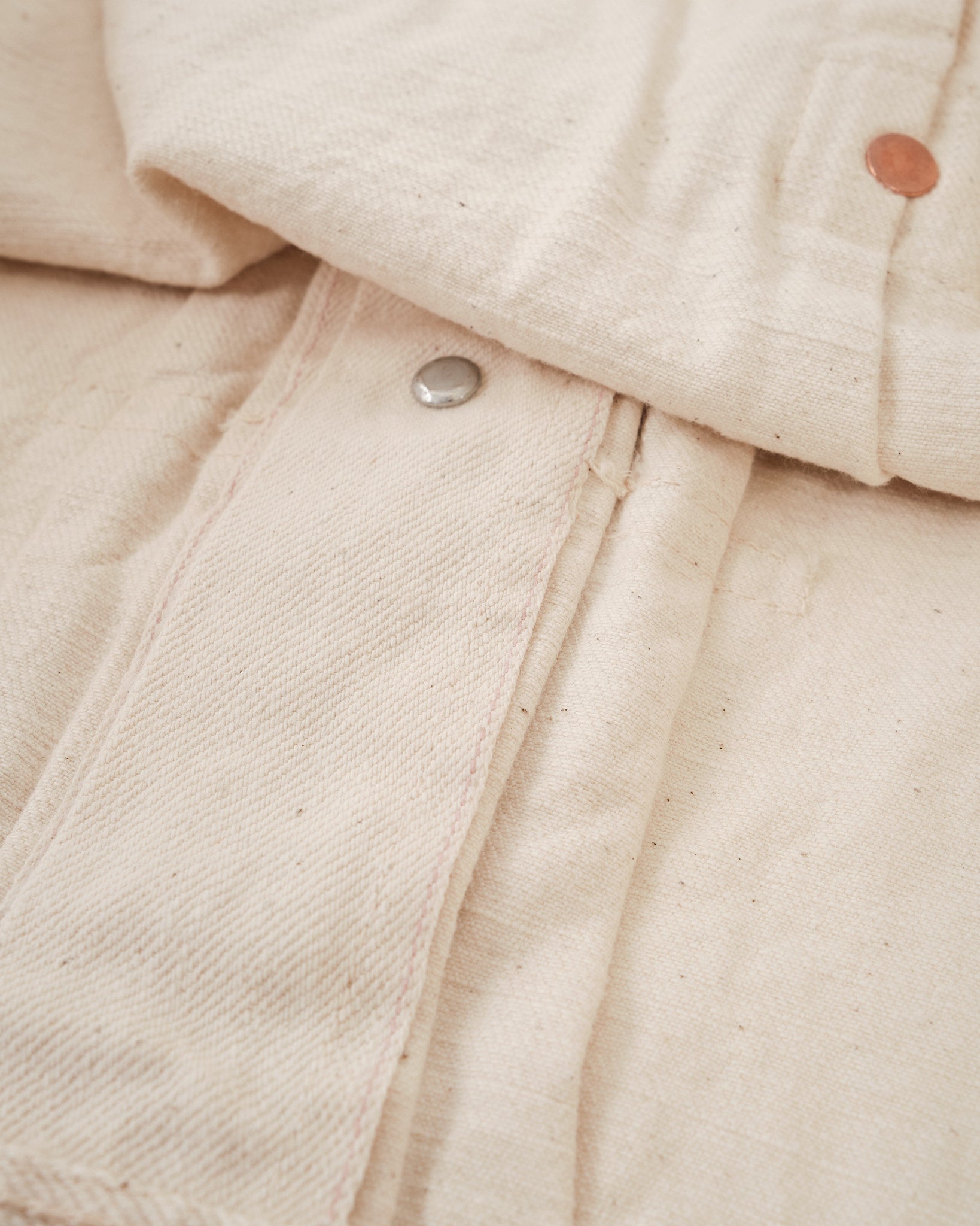 La 2107EC GIACCA DI DENIM ECRU TIPO 1 FULL COUNT (2107EC) unisce l'artigianato ereditario e uno stile senza tempo. Ispirata alle classiche giacche di denim dei primi del XX secolo, questo pezzo è realizzato in denim ecru di prima qualità, offrendo un aspetto pulito e naturale con una sensazione vintage autentica. La singola tasca frontale, i dettagli pieghettati e l'aggiustatore con cinghia sul retro rimangono fedeli alla iconica silhouette Tipo 1, mentre il tessuto di alta qualità garantisce durabilità e comfort. Perfetta per essere indossata in ogni stagione, questa giacca invecchia magnificamente, sviluppando una patina unica nel tempo.