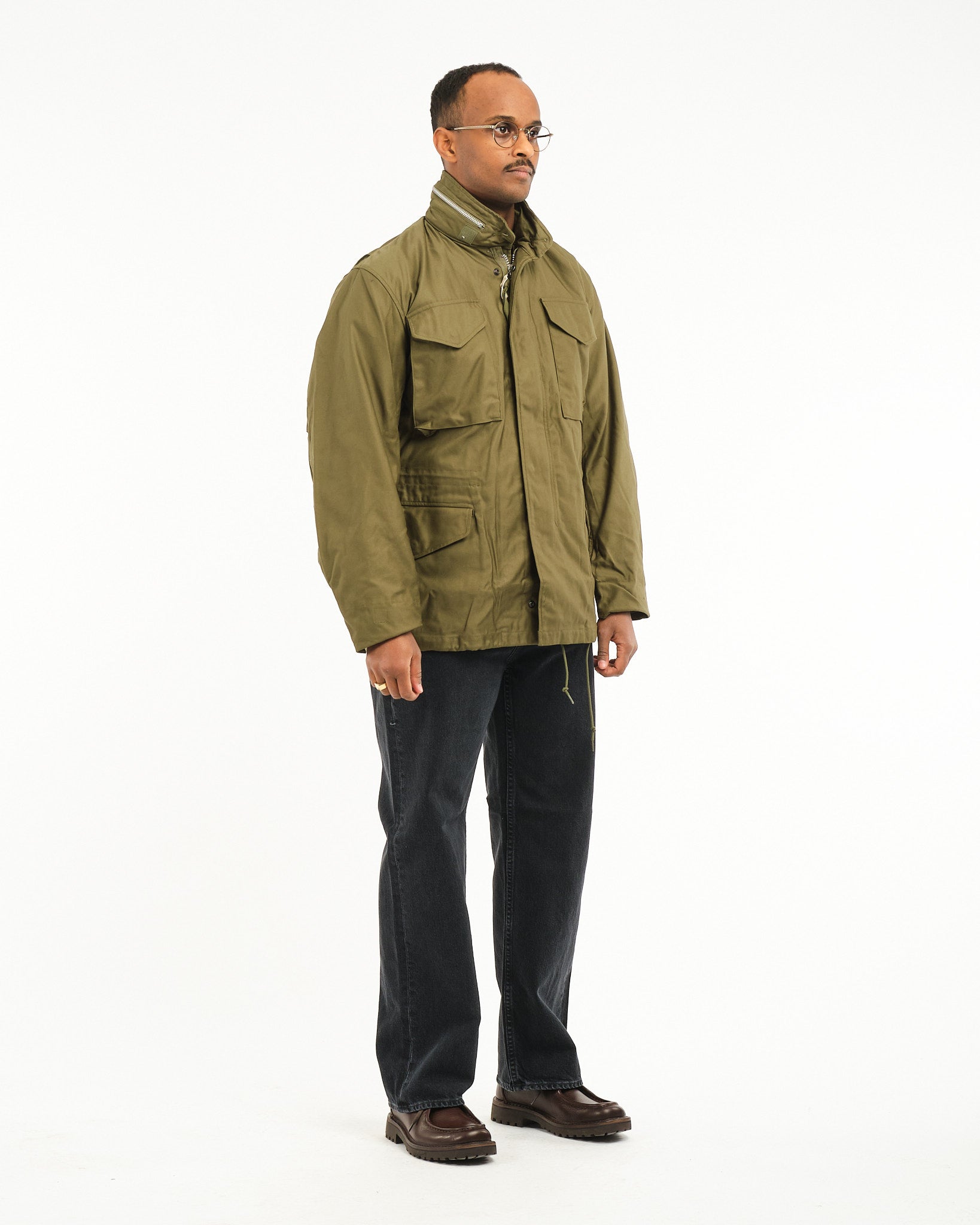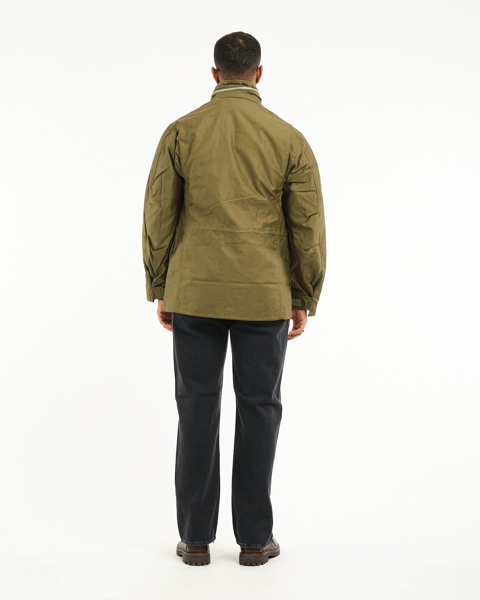 La giacca da campo M-65 dell'esercito americano orSlow in Verde Militare (Codice Stile:  01-6065-76) è una rielaborazione della classica giacca militare che incorpora funzionalità  con alta qualità artigianale. Realizzata in raso di cotone, questa giacca è costruita per essere sia confortevole  che duratura. Alcune delle caratteristiche includono un colletto in stile camicia che ha un cappuccio nascosto  e una zip frontale che è assicurata da uno snap nella zona del colletto così come una patta  assicurata con snap in vita. Ci sono tasche utili sulla giacca; due tasche con patta sul petto e due tasche inferiori  per le mani con chiusure a scatto. Per assicurare che la giacca sia ben aderente sul corpo ci sono  cordini di serraggio in vita e intorno all'orlo mentre i polsini sono regolabili e si abbassano. Questa giacca è  ben costruita con un interno completamente foderato e offre sia calore che può essere indossata in qualsiasi stagione, il che la rende  un pezzo classico.