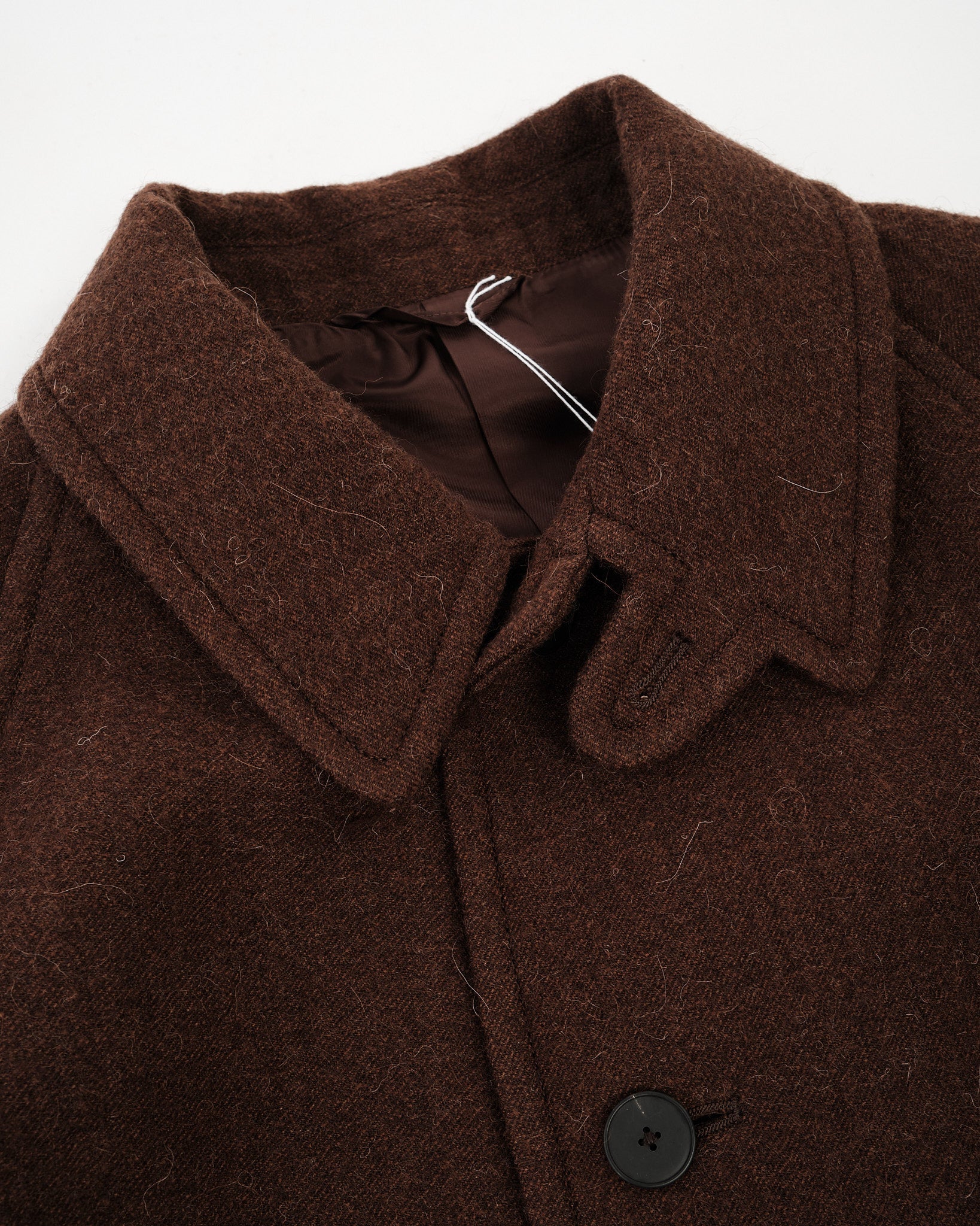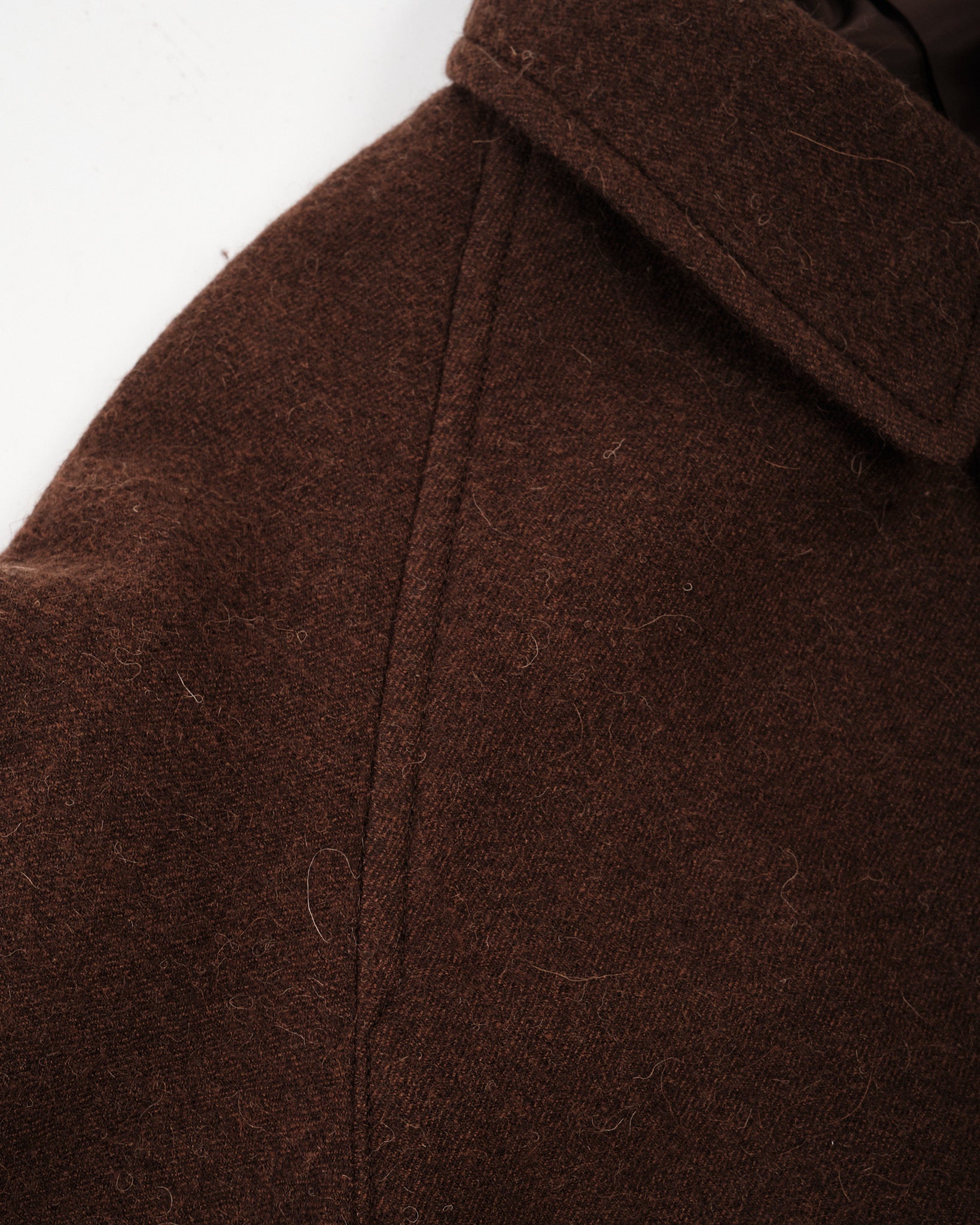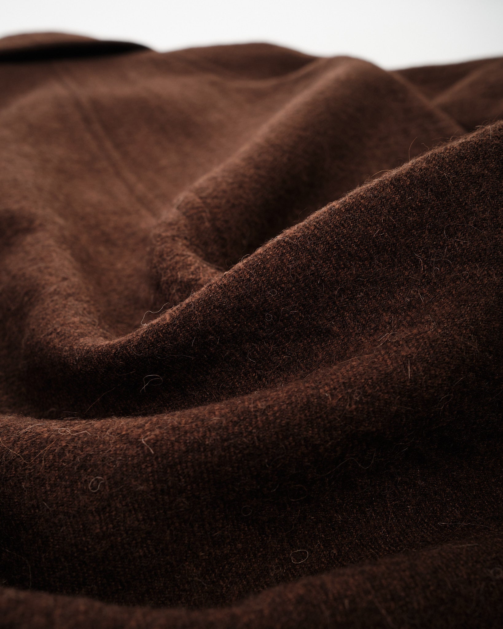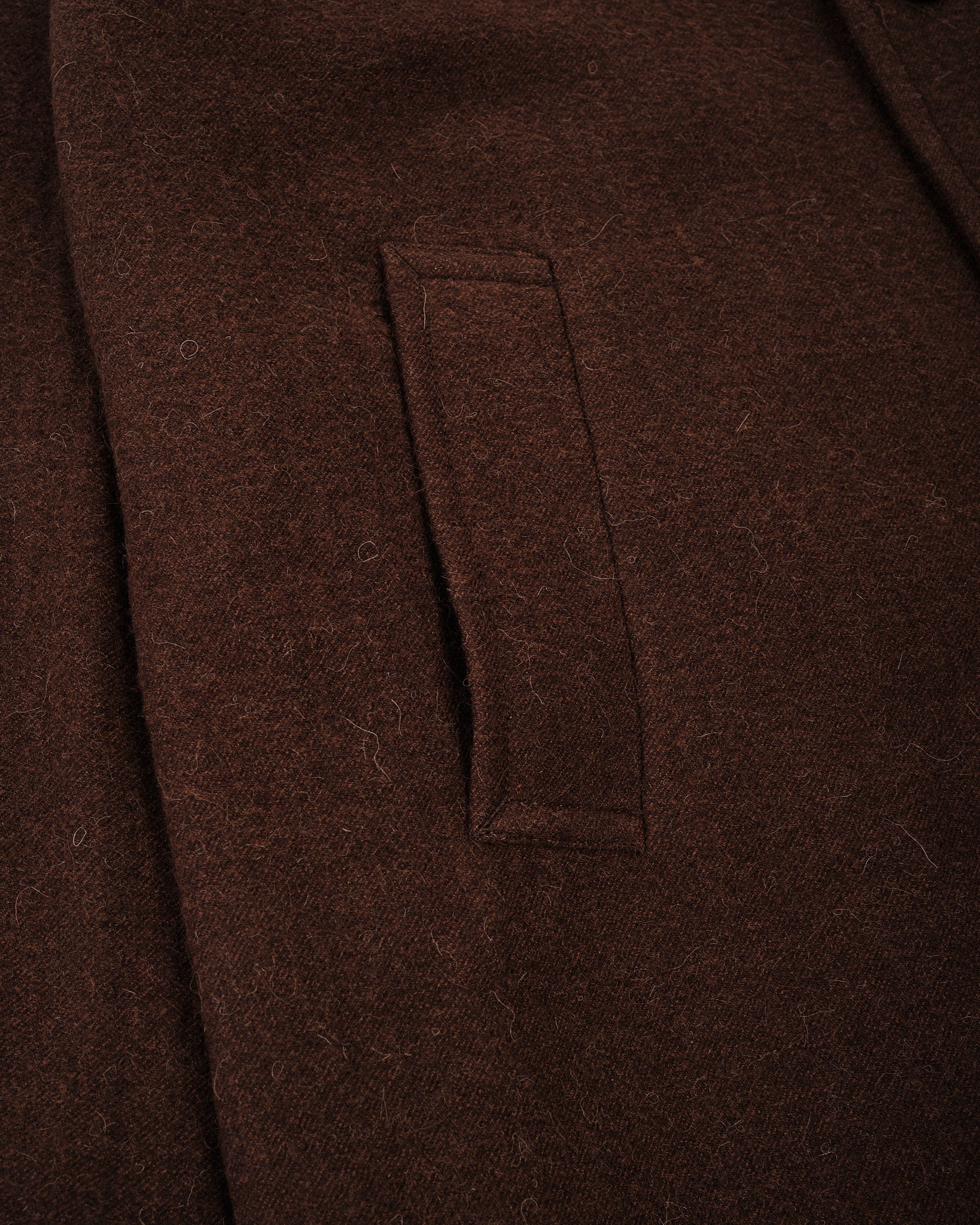 Il Cappotto Ombrello KAPTAIN SUNSHINE (KS25FCO04) in Marrone è un mix unico di lusso e calore. Realizzato con un doppio tessuto tessuto lentamente ad alta densità, il tessuto combina calda lana di alpaca di llama e lana Merino, offrendo una sensazione eccezionalmente accogliente e sofisticata. Il tessuto è accuratamente infeltrito per creare il perfetto equilibrio di volume e texture, risultando in un cappotto che è sia isolante che elegante.