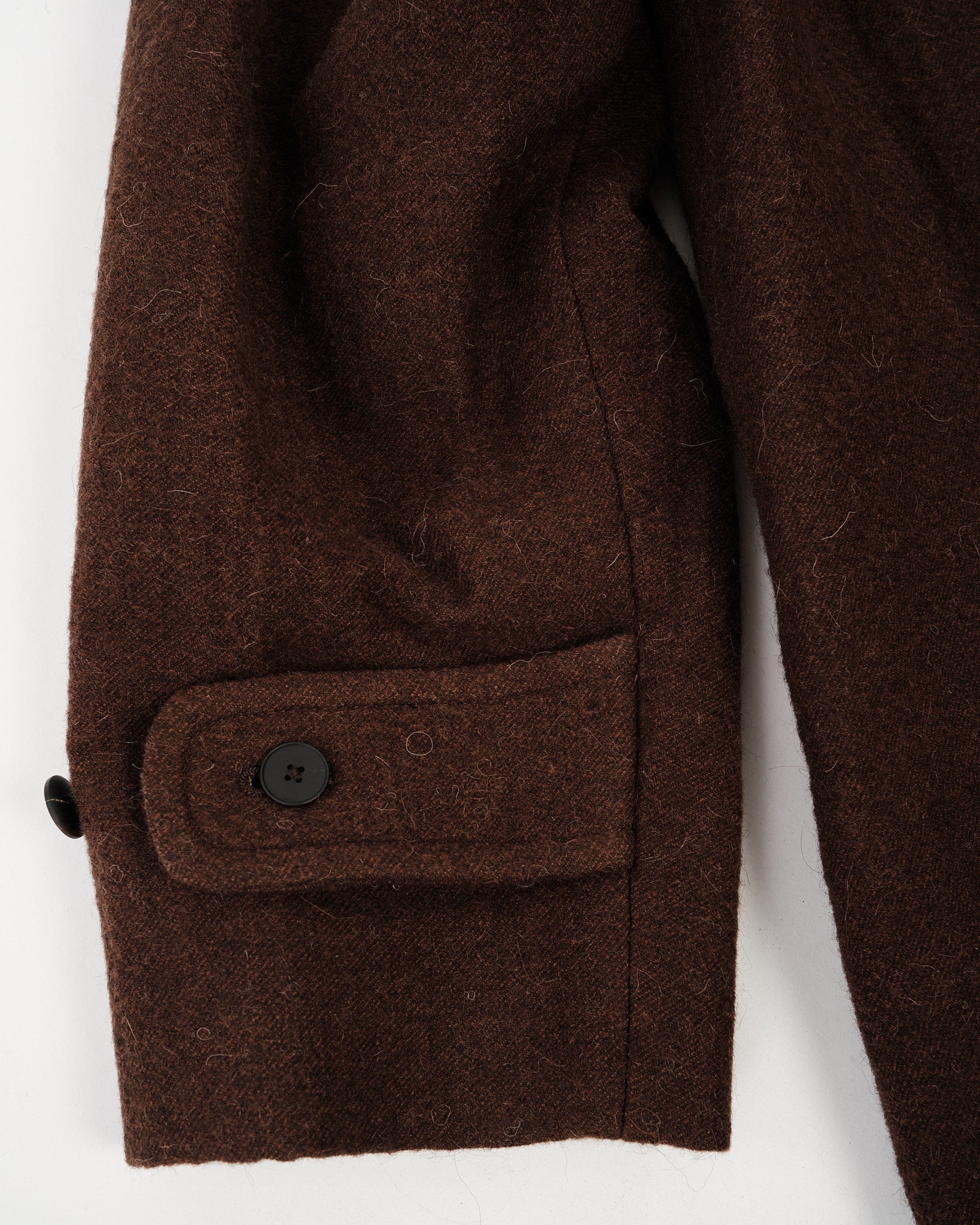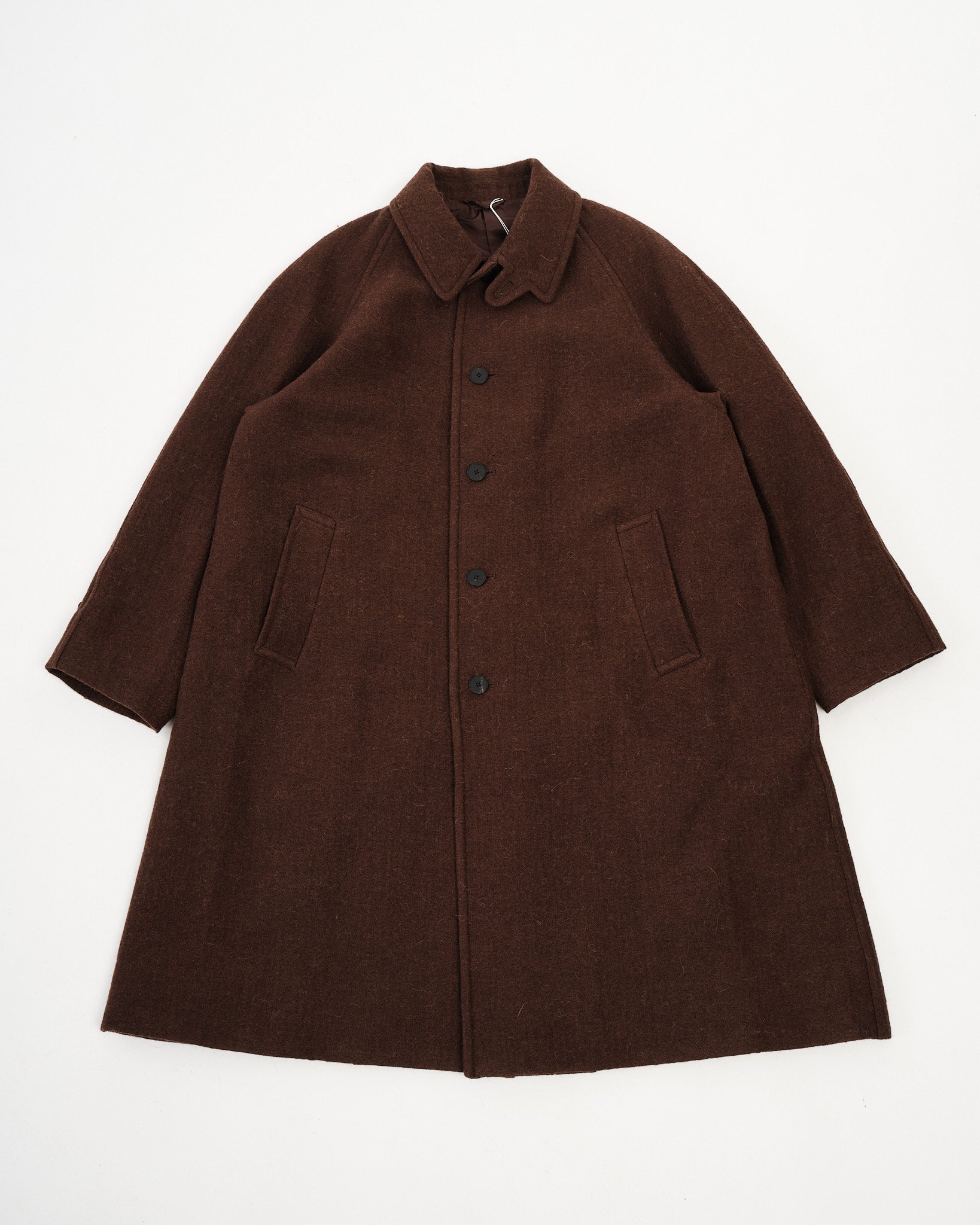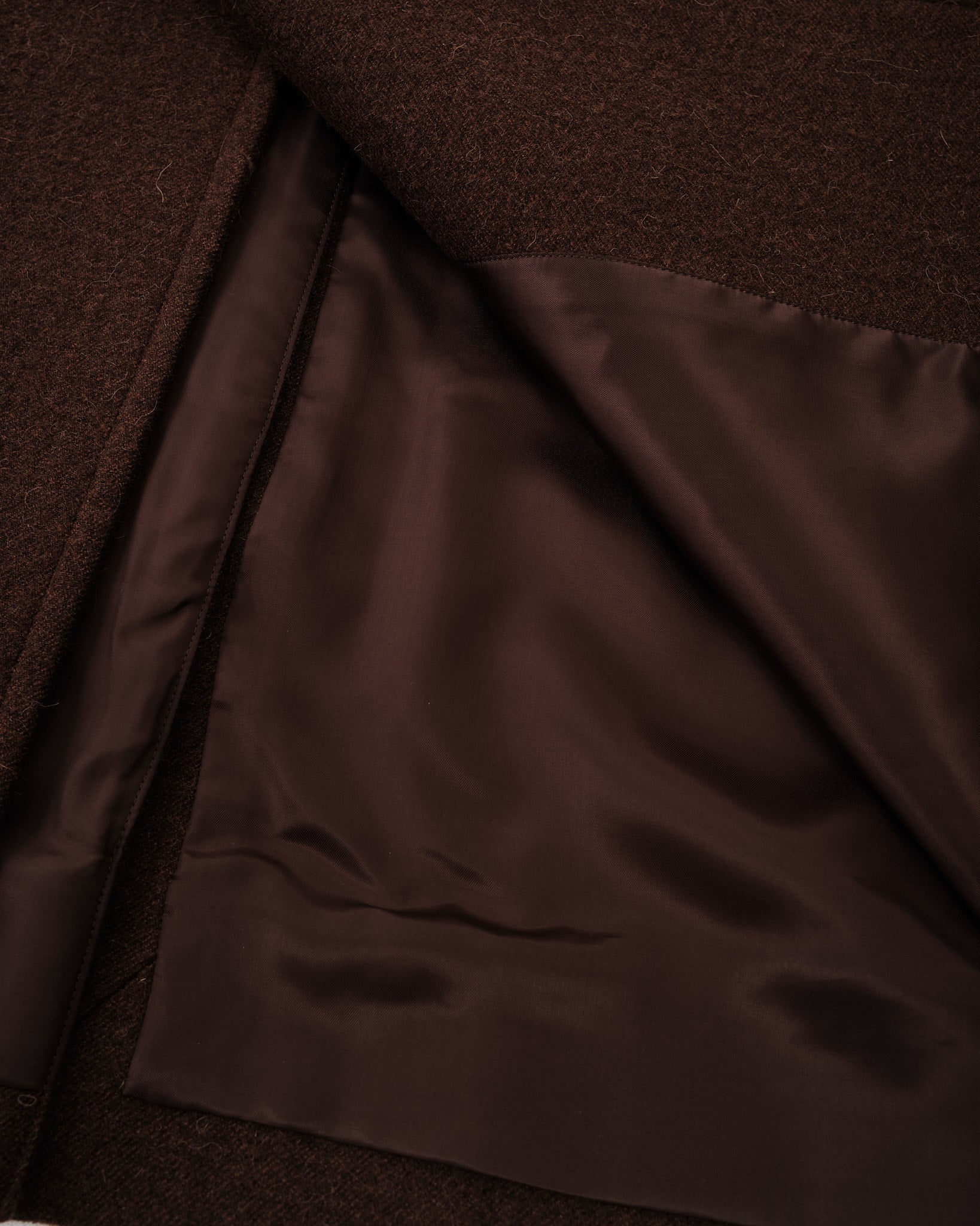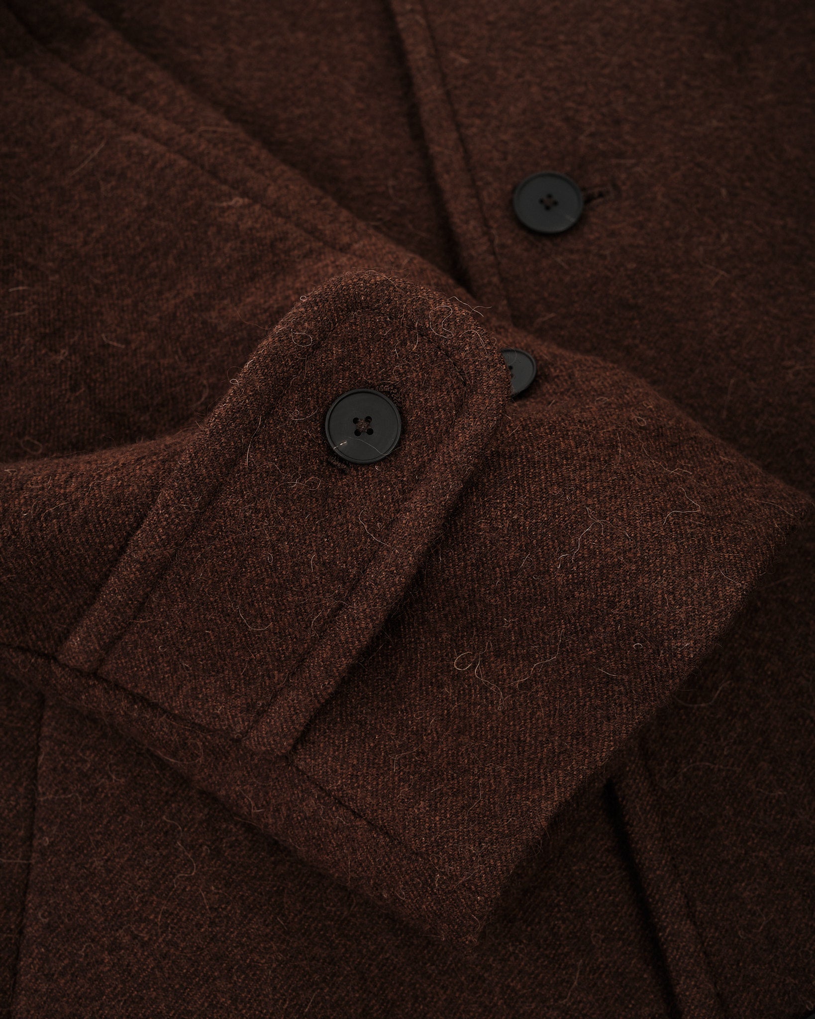 Il Cappotto Ombrello KAPTAIN SUNSHINE (KS25FCO04) in Marrone è un mix unico di lusso e calore. Realizzato con un doppio tessuto tessuto lentamente ad alta densità, il tessuto combina calda lana di alpaca di llama e lana Merino, offrendo una sensazione eccezionalmente accogliente e sofisticata. Il tessuto è accuratamente infeltrito per creare il perfetto equilibrio di volume e texture, risultando in un cappotto che è sia isolante che elegante.